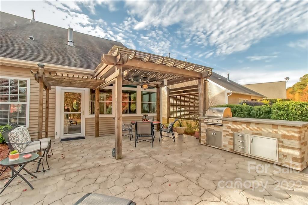 Nature's colorful beauty surrounds this Carolina home! Entertain on the extended patio, backed up by a beautiful tree line. Cook in the outdoor kitchen, eat under the Pergola. Open floor plan with Carolina Room, primary and guest rooms on main, hardwoods on main, kitchen island with granite counter tops. Added features, window in great room, recent interior paint, trey ceiling in master, all bedrooms have attached bath. Upstairs bonus room and 3rd bedroom. Extensive landscaping with stone around flower beds. Perfection and ready for you to move! Carolina Lakes includes lawn care with the monthly HOA Dues. Noting to do but enjoy the beautiful Carolina weather! Sellers are offering $5000 to use anyway Buyer wants. Come see Come Buy!