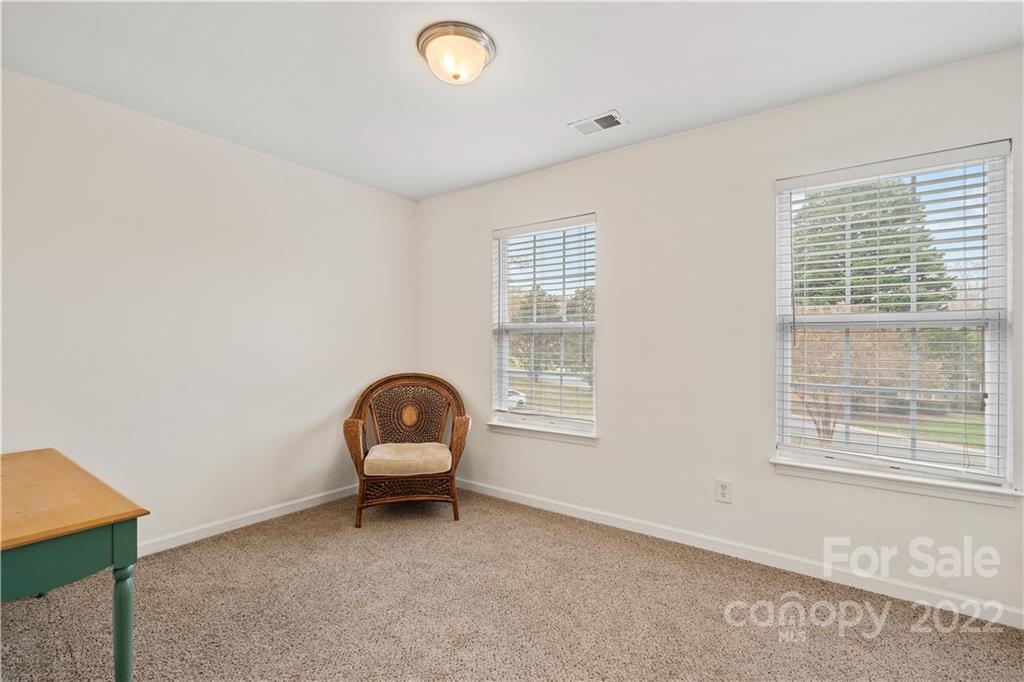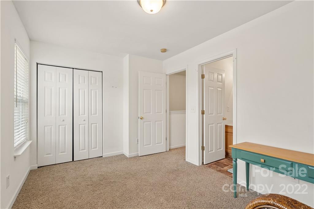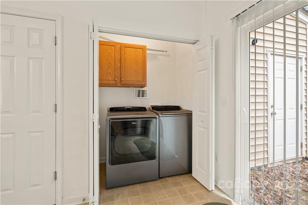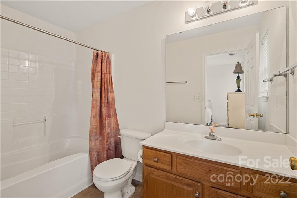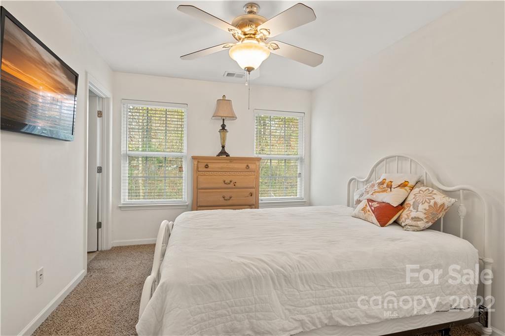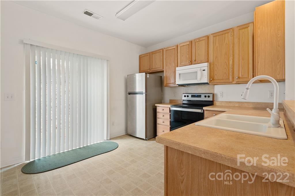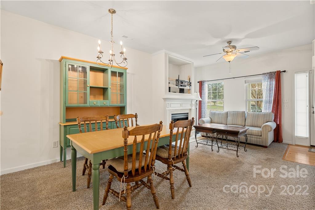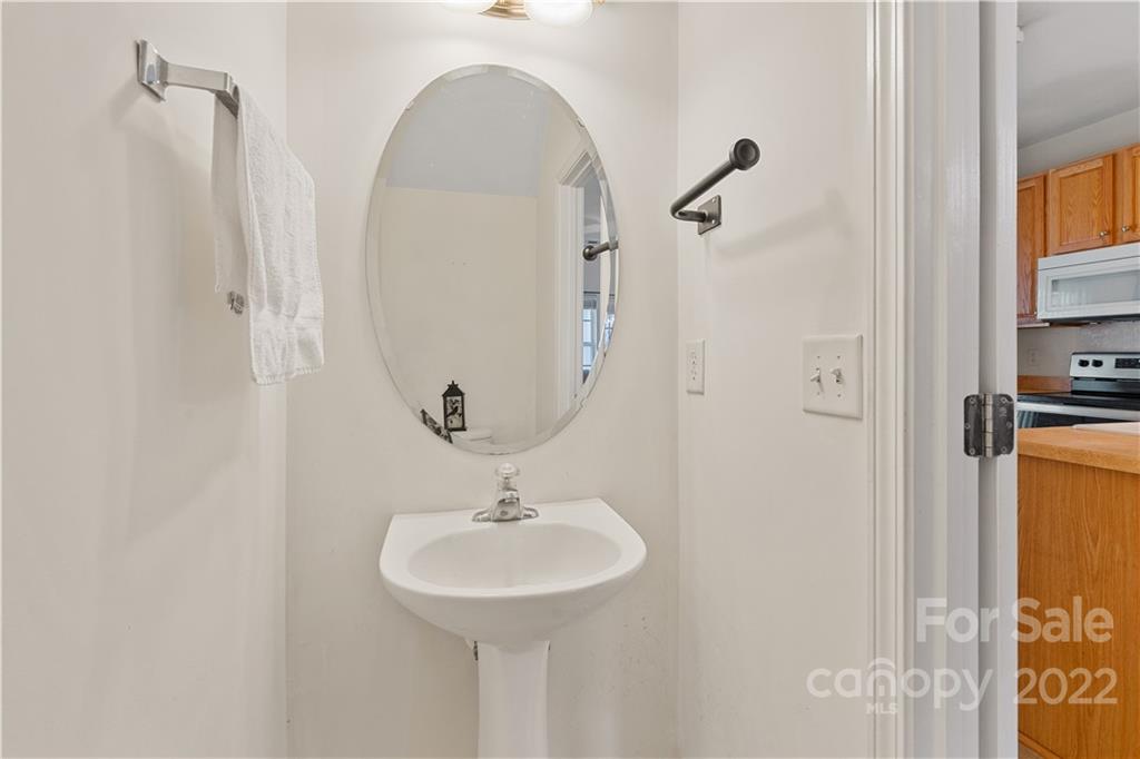 Absolutely charming two bedroom two and a half bath townhome nestled between Matthews and Mint Hill. Living room is warmed by a cozy fireplace and is also equipped with an above fireplace TV mount. Dining area has breakfast bar and hanging chandelier. Kitchen is loaded with all appliances, refrigerator, dishwasher, microwave, stove, and newer washer and dryer set. Upstairs are two bedrooms with their own private bathrooms. The back patio has a storage closet and private wooded view. Quiet neighborhood with lots of visitor parking.