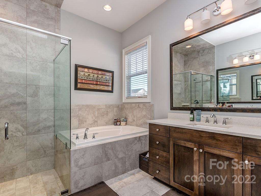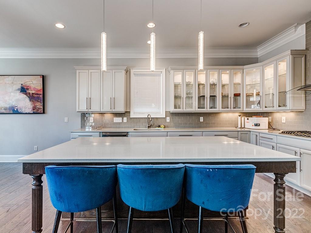 beverage center. The lighted upper glass cabinets and tile backsplash are simply spectacular. 1st Floor Primary Bedroom with a 2nd floor secondary Primary suite. Garage includes a side exterior door. Tankless Water Heater included. Window blinds included. Covered Porch on the rear.