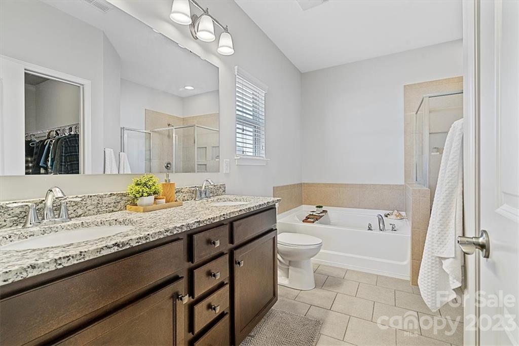 ONLY COUNTY TAXES! Upgraded Hardiplank exterior! Open plan with Owner's Suite on main level. Beautiful Kitchen with huge island & seating for 4, plus large casual dining area. Family room with access to patio and large rear yard for those great BBQ gatherings! Large private Owner's suite and bath on MAIN, dual sink vanity, granite, garden tub, separate shower, private water closet and large walk-in closet, too! Conveniently located main level laundry. Second level features two additional bedrooms one with walk-in closet, open loft/bonus room that builder had an option for another bedroom-just add closet! Large secondary bath with dual sink vanity. PLUS-approx. additional 300sf of unfinished walk-in space for future expansion. Maybe another bonus room or bedroom-you decide! Great location, convenient to Villages of Wesley Chapel, Mineral Springs, Historic downtown Waxhaw, MORE! Community pool, social committee with many year-round events.