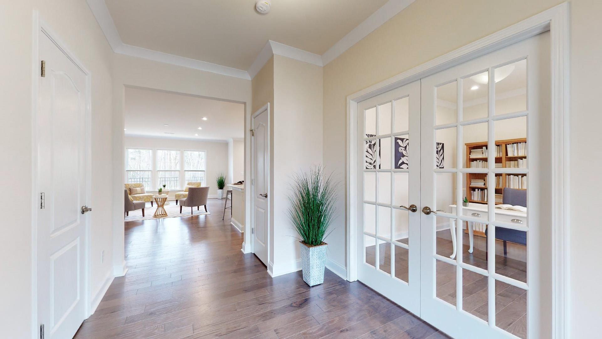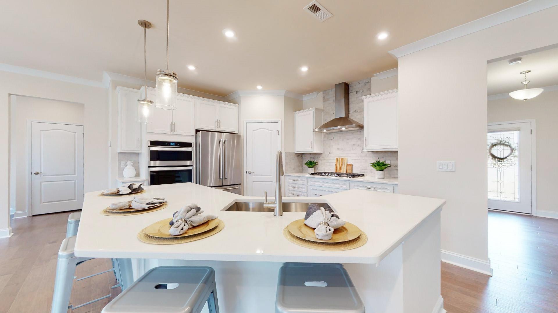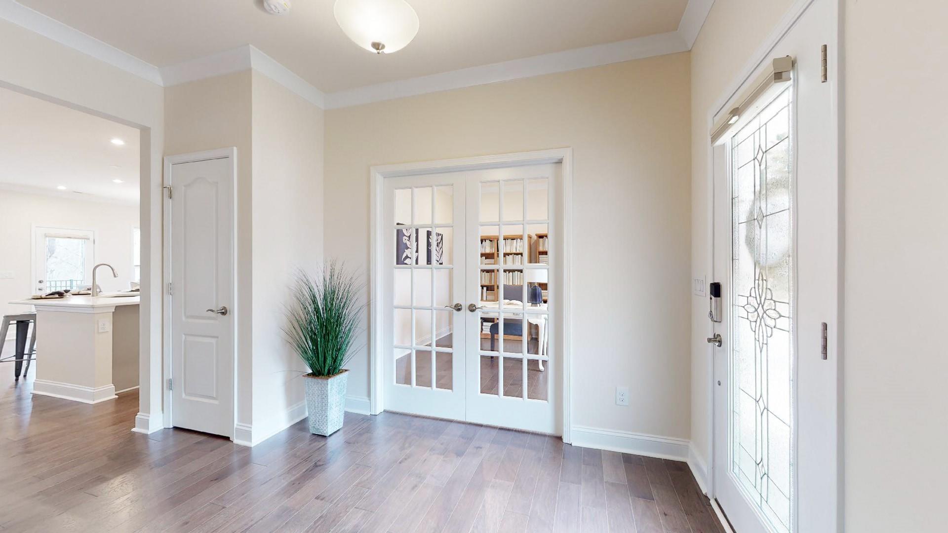 Gorgeous home in highly desirable Castleford Reserve. Walk to your favorite shops and restaurants in Waverly. This is one of the best lots in the neighborhood as it is situated on a cul-de-sac with a private backyard surrounded by trees. Enjoy your morning coffee on your front porch and soak up the morning sun or sit on your back patio and listen to the birds singing. The open concept kitchen features stainless steel appliances and quartz countertops. The study with french doors downstairs as well as an office nook off of the kitchen makes it perfect for two home offices. Sellers have added a fenced in backyard, in ground irrigation, a stunning glass insert for the front door, and Hunter Douglas top-down/bottom up honeycomb shades to allow for lots of natural light. The community includes an outdoor pool, cabana, playground, and sidewalks. Hardwoods cover the entire downstairs of the home. Lots of storage space throughout the home. Home shows like new. Welcome home!