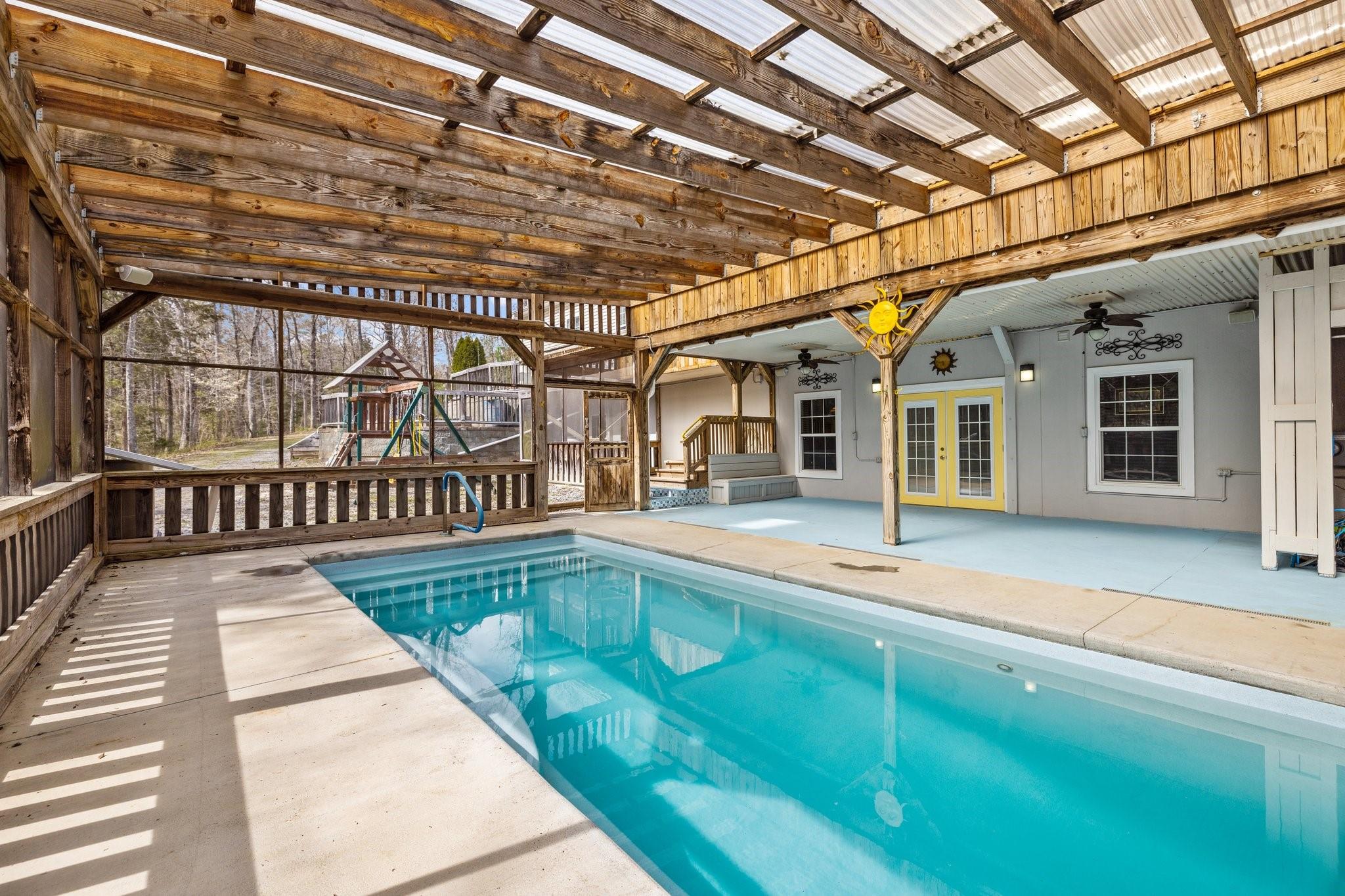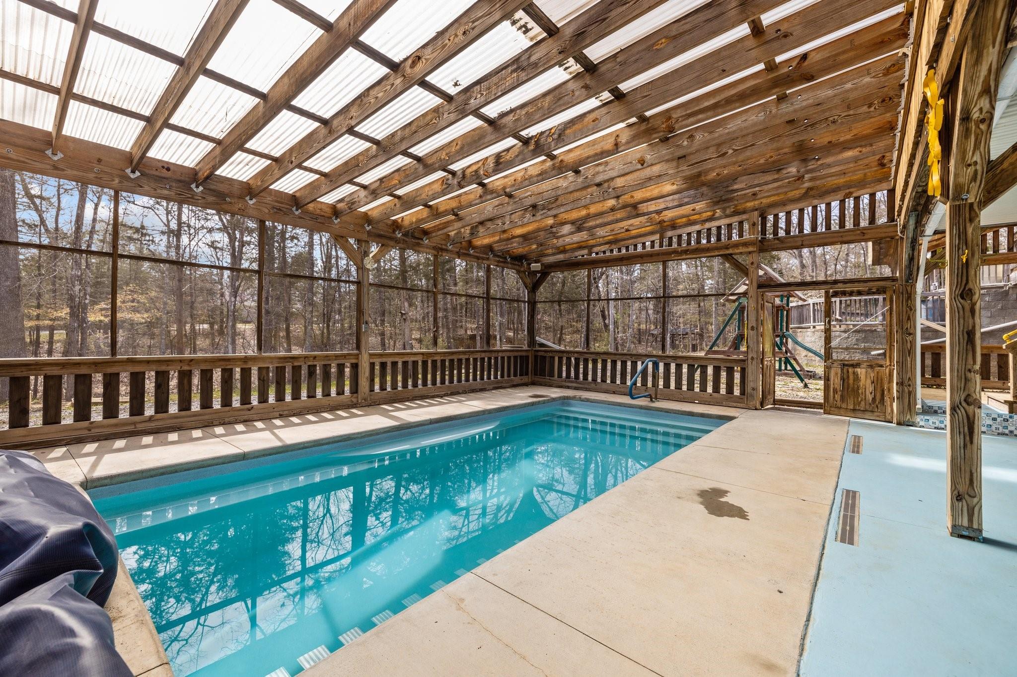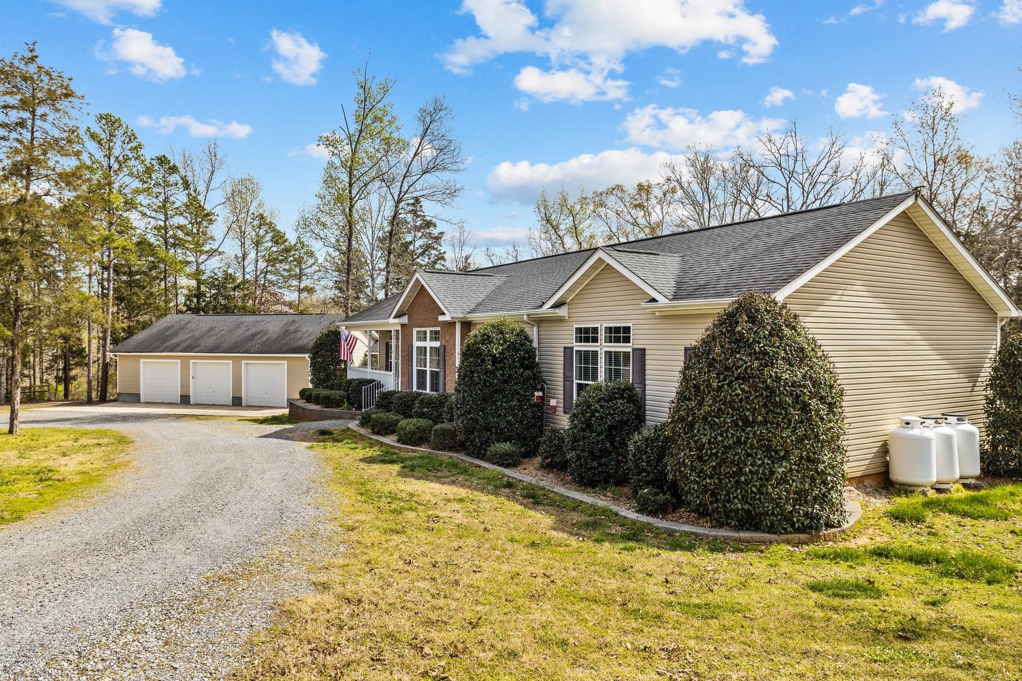 This terrific home is for you! 3+ acres, NO HOA, & lots of room to roam! This 3-bedroom 3 bath, 4 Car garage ranch home is a recreation haven inside & out! The main level has an open floor plan, with a beautiful entertaining kitchen, dining area, & family room, & a sunroom with a nearly new sauna & hot tub. Inground salt water pool covered & screened in. The basement boasts of a walkout family room w/ fireplace, Theater Rm, Speakers in Theater & pool area. Full Wet bar, Game rm w/dart board & 8 ft Billiard Table, Office/flex rm w/built-in desk & shelving. A storm shelter room/ Root Cellar Pantry. Cannon Gun Safe, Work Shop, full Bath, storage, whole house Generator, Water Purifier/Softener. A Covered walkway between the house & Garage, has Ramp access. Work Shop, w/Air Compressor- 60amp w/Overhead retractable hoses, 2nd level storage, Wood stove, Overhead Winch-1100 lb. RV parking with electric/septic hookups. Raised garden beds, fruit trees, fire pit, & Horseshoe pit. and much more!