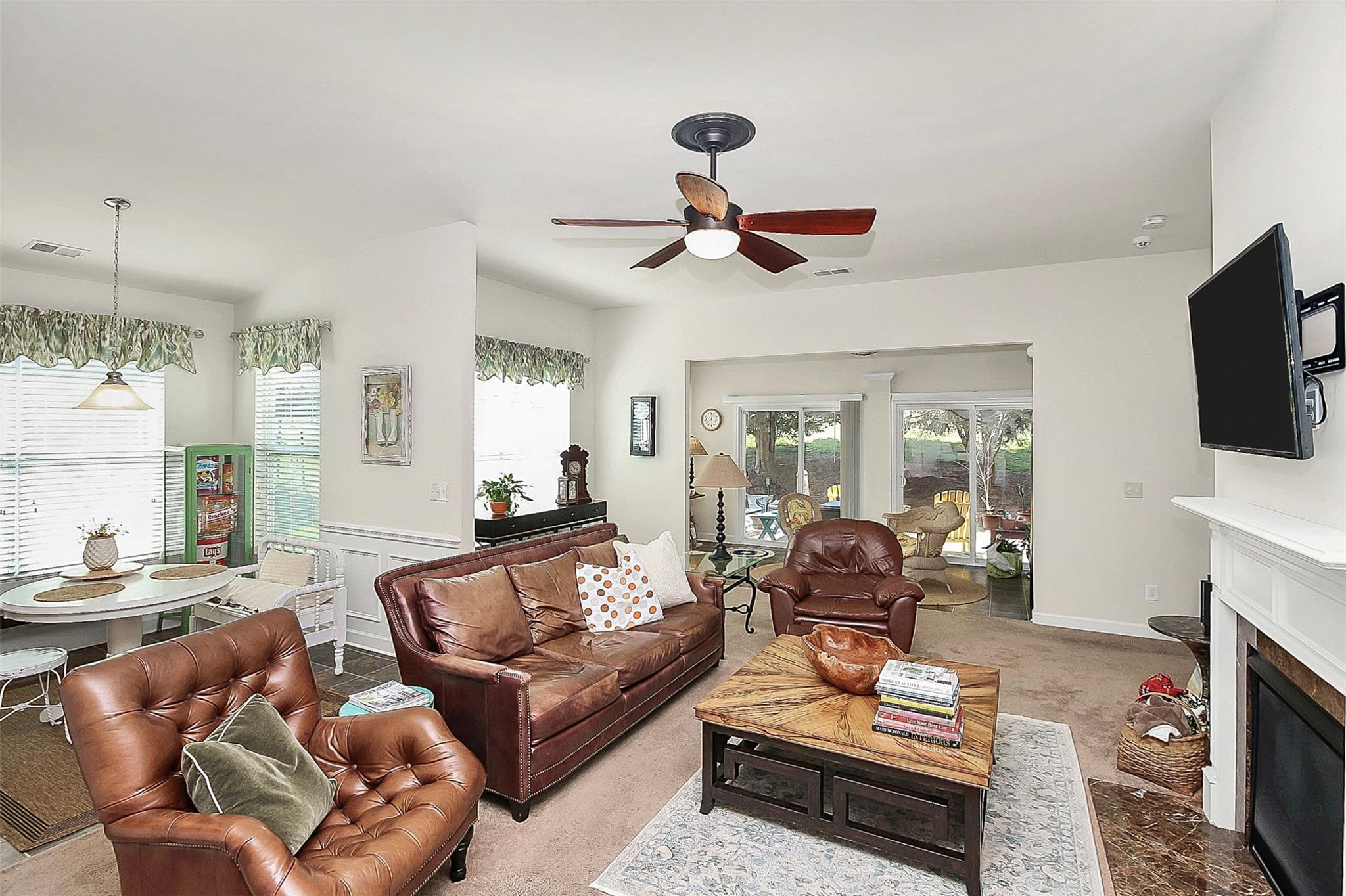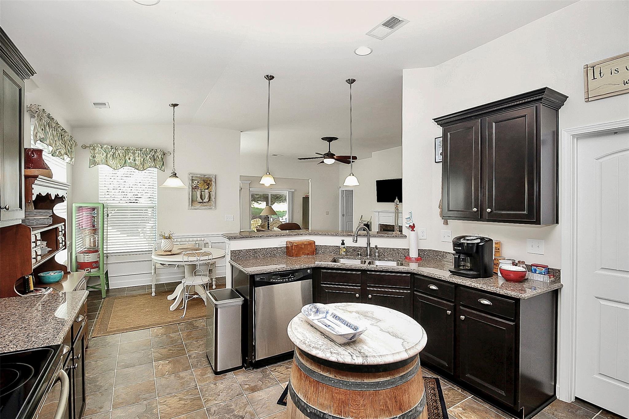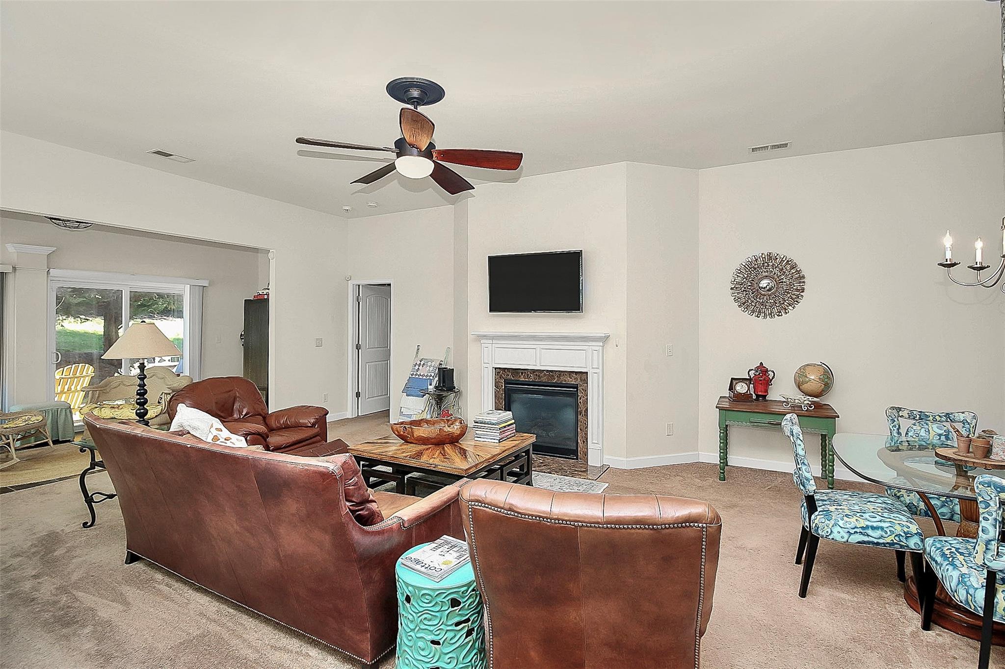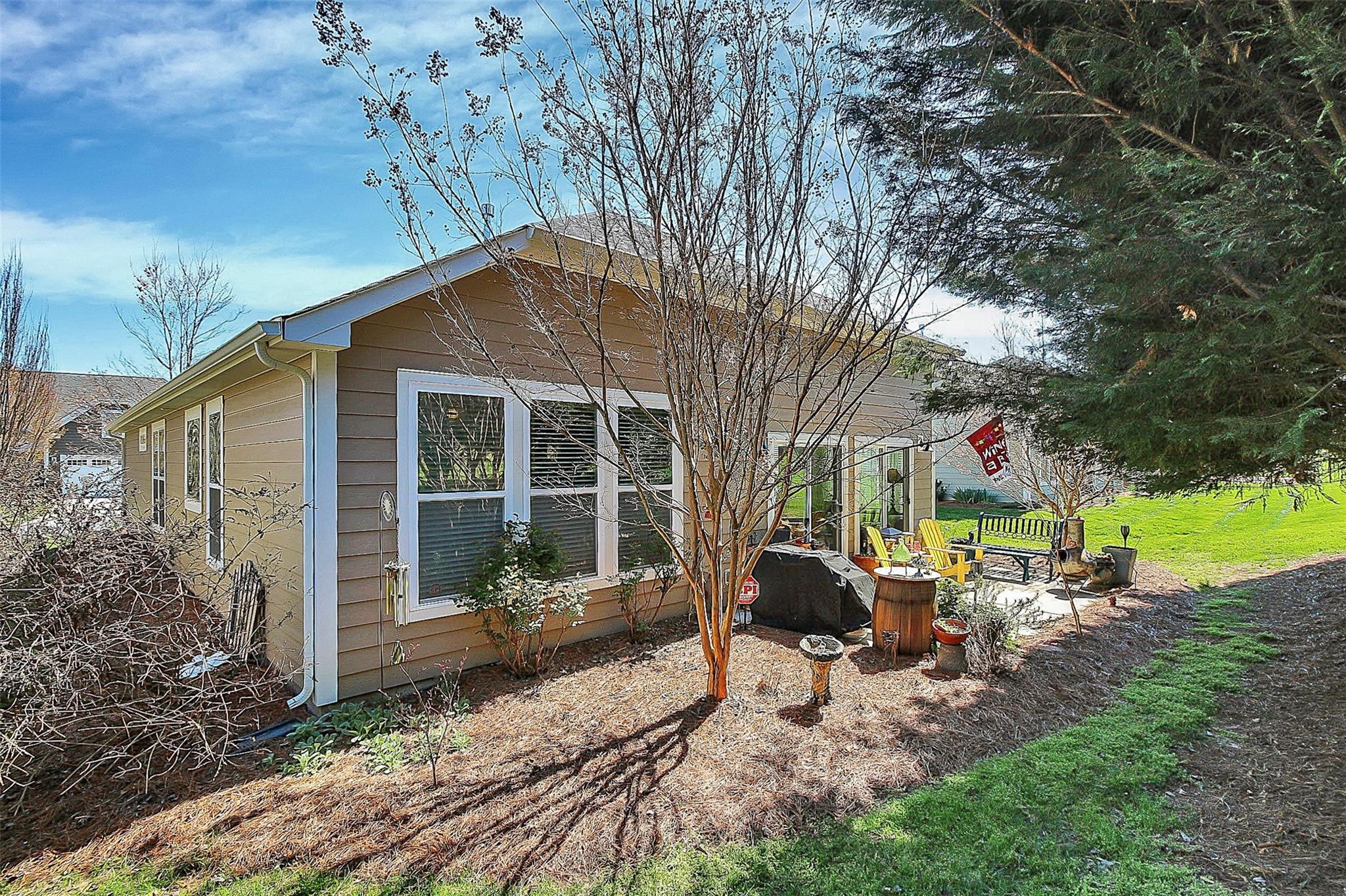 Stunning Ranch Style Home Located in The Vineyards On Lake Wylie. With a spacious open floor plan, featuring an open kitchen that includes tons of cabinet space, a roomy pantry, a breakfast bar, and SS appliances. The cozy and inviting great room features a gas log fireplace, is full of natural light, and leads into the bright and relaxing sunroom. Two sizable guest bedrooms are located at the front of the house. The private primary bedroom suite is in the back and features a spacious walk-in closet, an attached private bathroom with dual vanities, a Soaking tub, and a large standing shower. This is genuinely one-level living at its best! HOA fees include lawn maintenance, Spectrum cable/internet, trash collection & recycling! Amenities galore: lake access, boat ramp, clubhouse, fitness center, playground, 2 pools 1 with water slide & a junior Olympic pool, recreation area, lakeside picnic area, tennis courts, walking trails & dog park!
