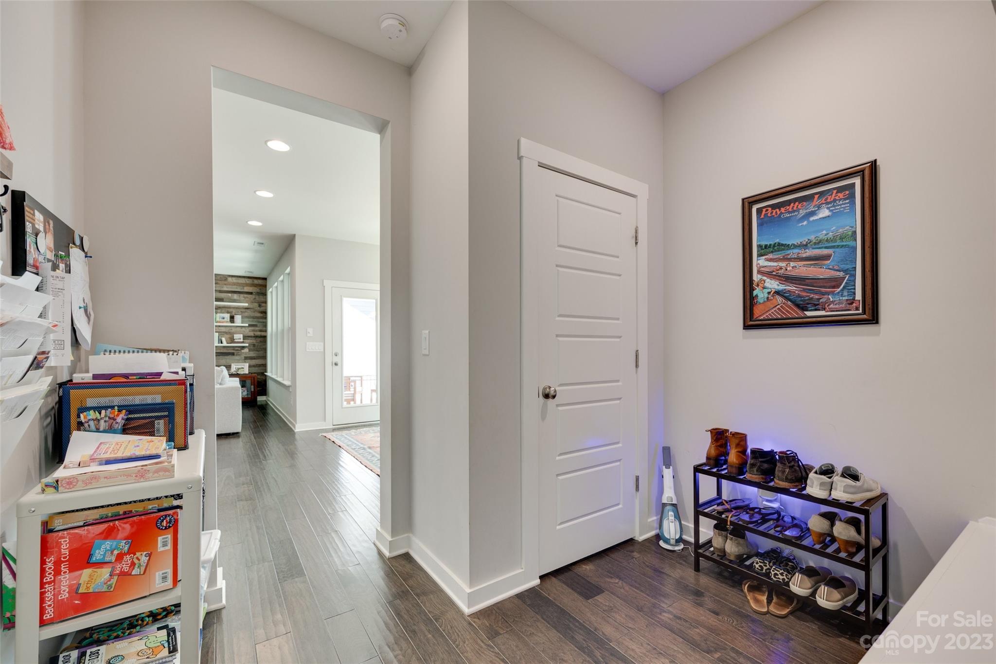Spectacular home in sought-after Paddler's Cove. Why wait to build? Superior Fielding Construction. Very well maintained. Beautiful engineered hardwood floors throughout the main living area. Gourmet kitchen with large quartz island. Inlaw suite on the main level with ensuite bathroom. Huge owner's suite with dual vanities, seamless shower, and garden tub. Two more large bedrooms upstairs. The upstairs secondary bath is equipped with dual vanities. Drop zone off of oversized garage. Private porch area equipped with surround sound overlooking one of the best lots in Paddlers Cove. Beautifully landscaped and fenced overlooking the treed buffer area. Paddlers Cove offers all the amenities you can ask for- Walking trails, access to two pools, a clubhouse, playgrounds, kayak launch area, and the local sports complex is inside the neighborhood and a short walk away.