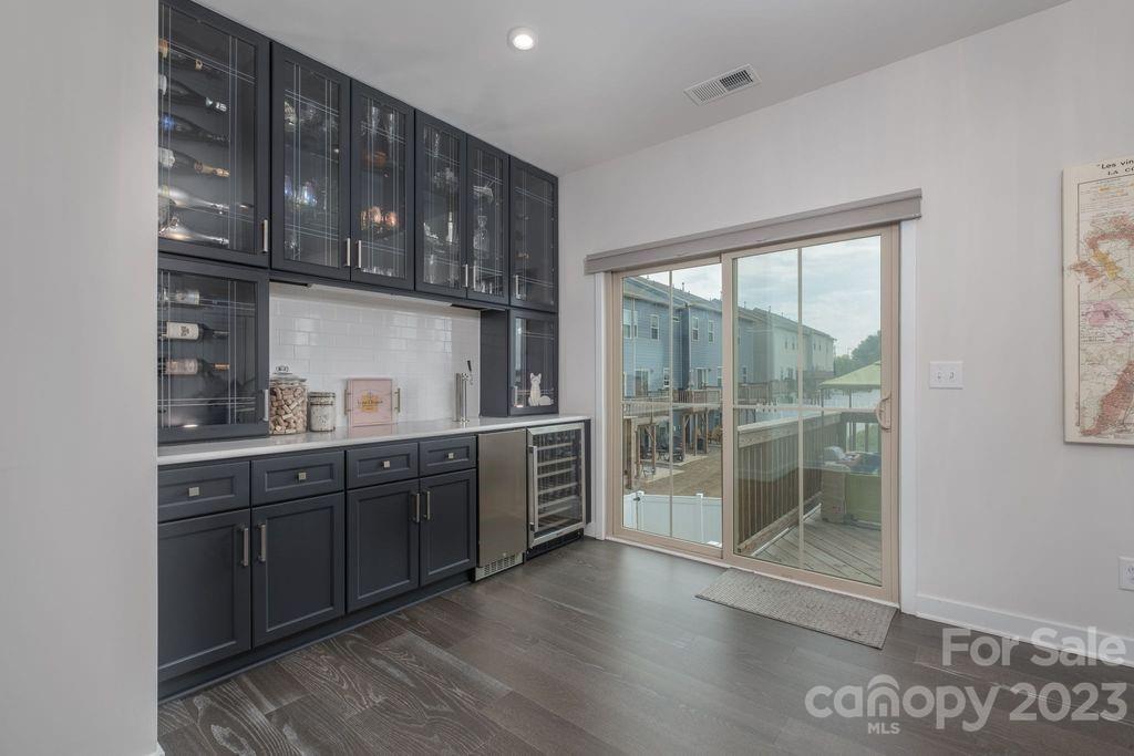Waterfront At Langtree presents an end-unit townhome with tons of natural light and upgrades! The gourmet kitchen includes a double wall oven, separate microwave, gas cooktop, upgraded cabinets, quartz countertops, stainless steel appliances and spacious pantry. The custom bar features a beer tap, wine refrigerator and glass wine showcase closet. Upgraded hardware, light fixtures and window treatments throughout.The primary bedroom features an oversized walk-in closet, tray ceilings and ensuite with dual-sink vanity. Enjoy the fenced backyard and lakefront access with kayak launch, grills and community fire-pit area overlooking the lake. Walk across the street to fine dining, shopping, restaurants, walking trails, and live music. Showings begin Wednesday the 12th.