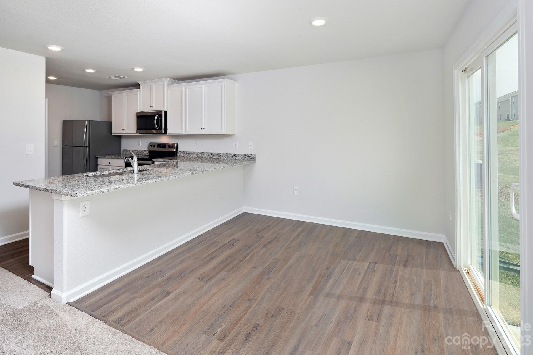 This three-bedroom home has space for your entire family! A gorgeous kitchen with tons of counter space and a breakfast bar overlook the dining area. The chef-ready kitchen boasts stainless steel appliances, granite countertops, 36” upper wood cabinets with crown molding and more. The master suite is a highlight of this home. A large window allows for plenty of natural light to brighten up the space. The master bathroom includes a spacious vanity and a shower.