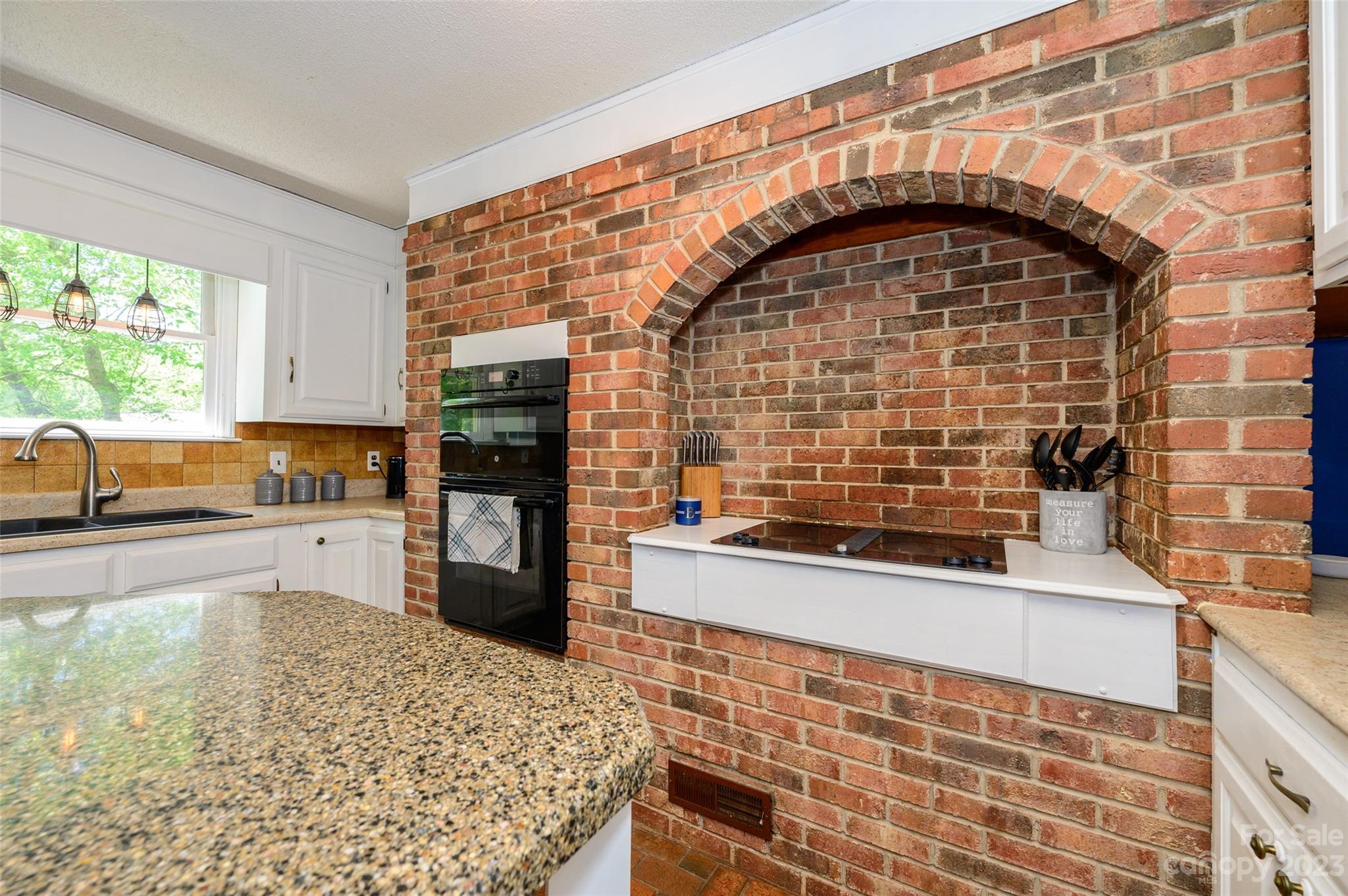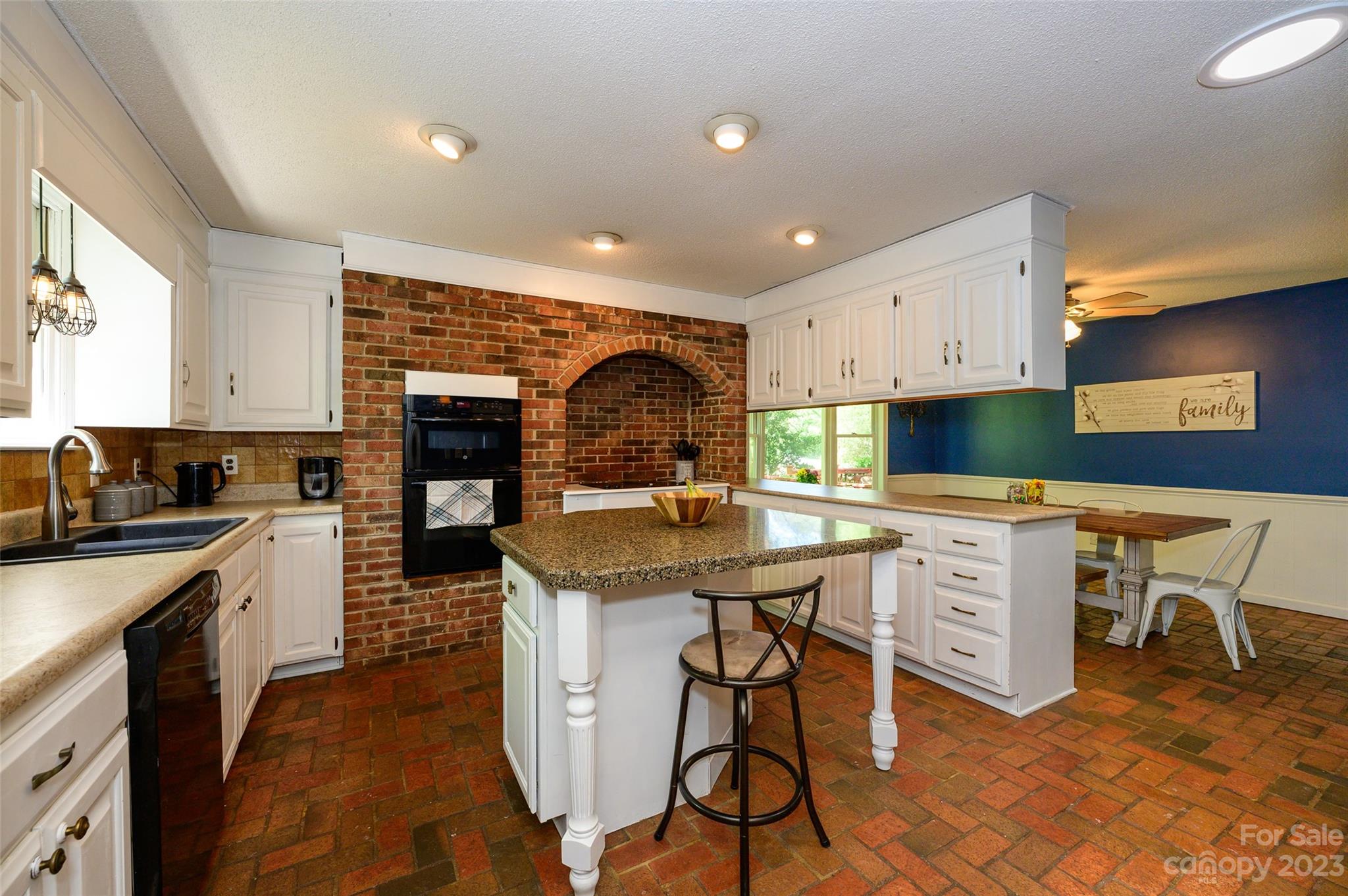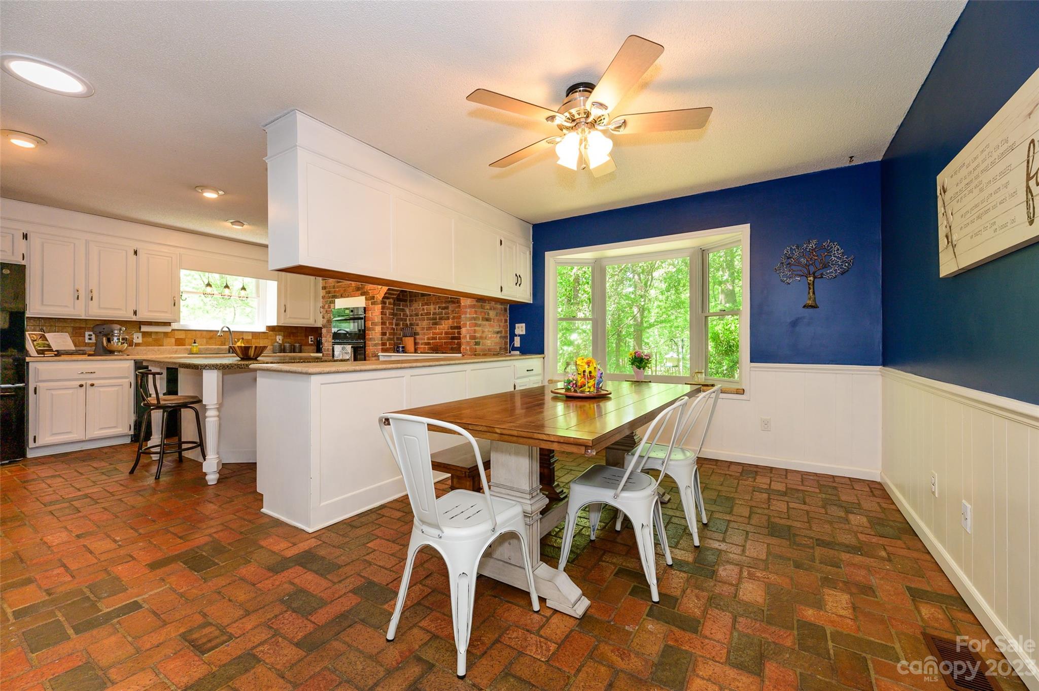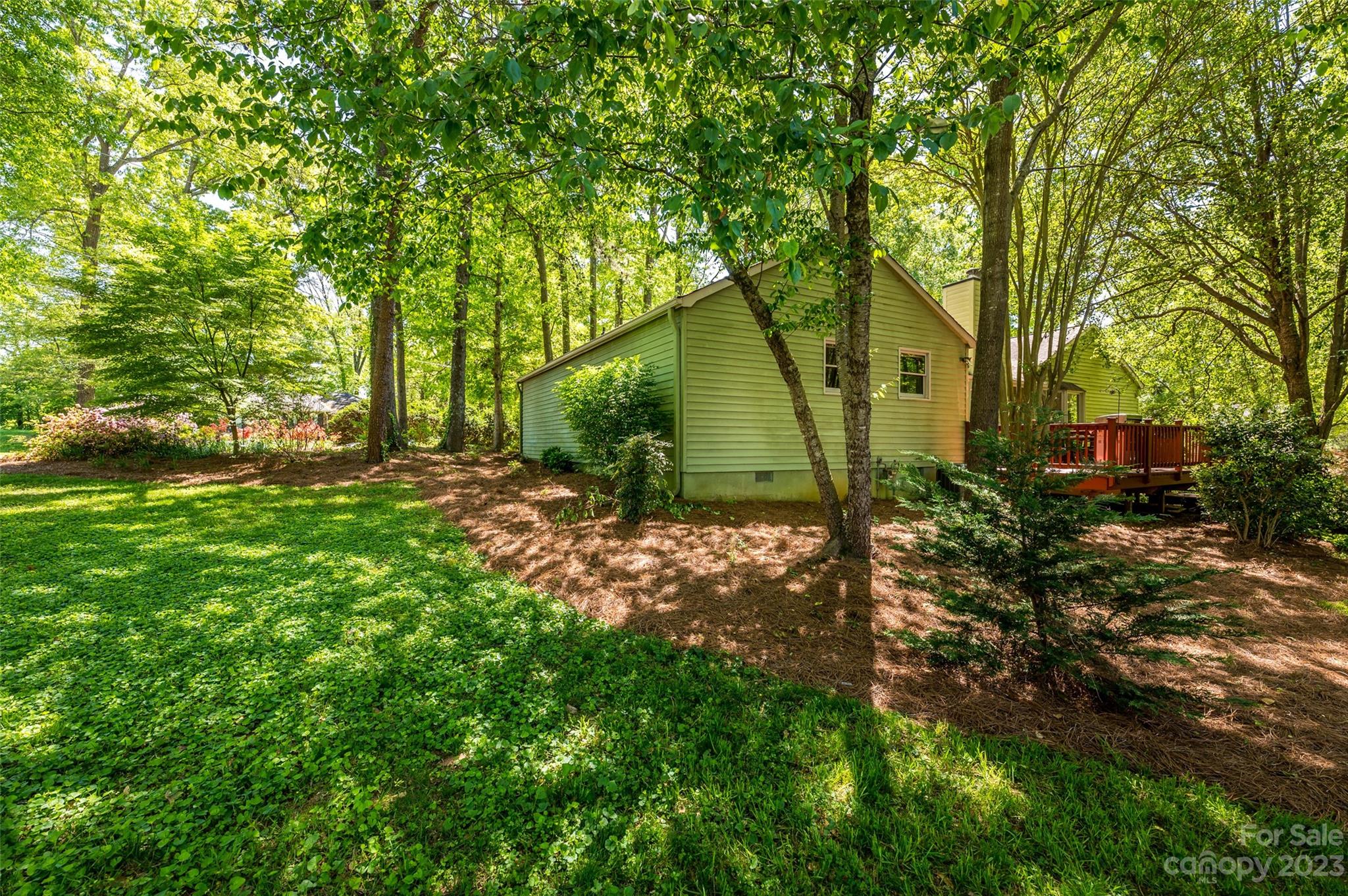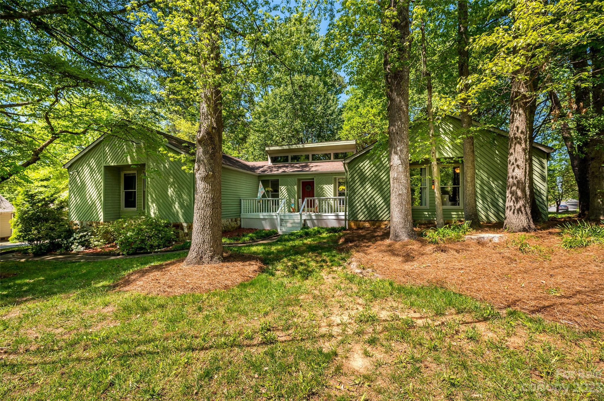 Amazing rustic contemporary home with tons of character throughout! Charming front porch leads to brick floored foyer and kitchen. Spacious kitchen features white cabinets, island, decorative brick accent wall with built in cooktop and microwave/wall oven. Adjacent dining area with bay window and built in cabinets with glass doors. Sunken living room with vaulted wood slat ceiling and stone wood burning fireplace. Plus two sliding glass doors that lead to large deck overlooking wooded lot with mature landscaping and trees. Large owners suite with walk in closet, en-suite bath and tiled glass shower. Plus two additional bedrooms and full bath with tiled floor and shower. Great location with easy access to Uptown, Charlotte-Douglas Intenational airport and US Whitewater Center. Great neighborhood with no HOA. Plus optional membership to Pine Island Country Club. Visit https://pineislandcc.com/ for more details.