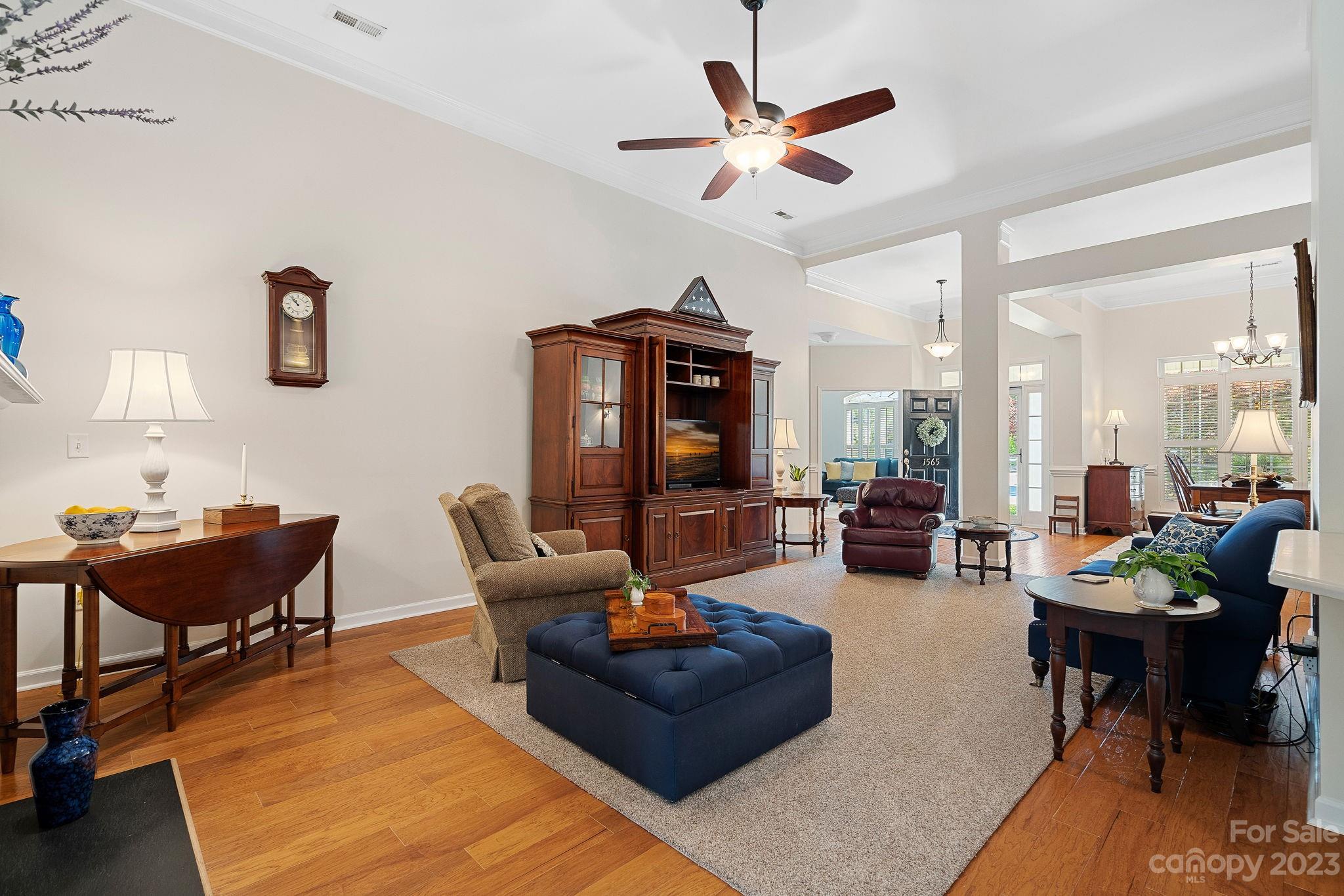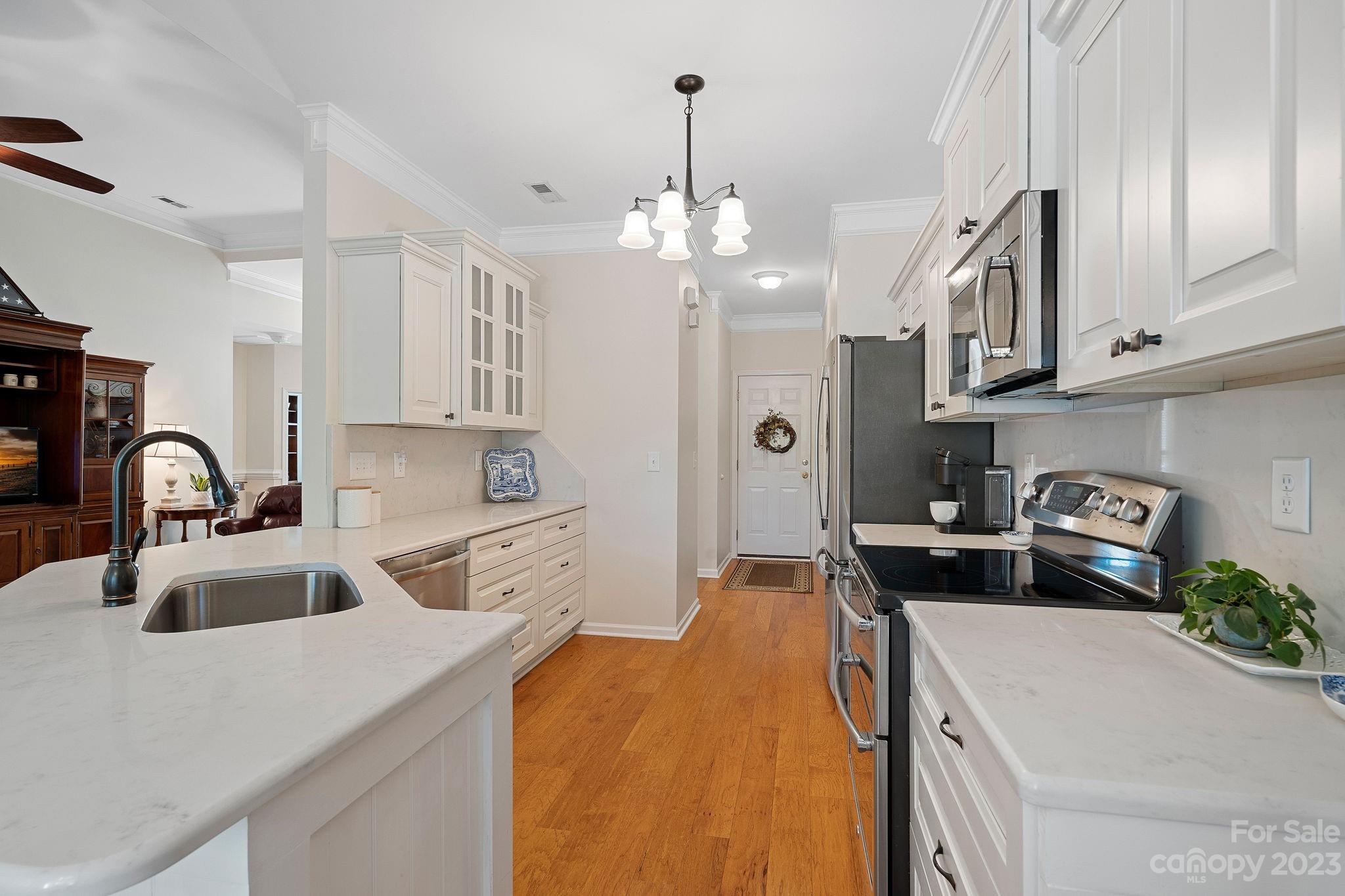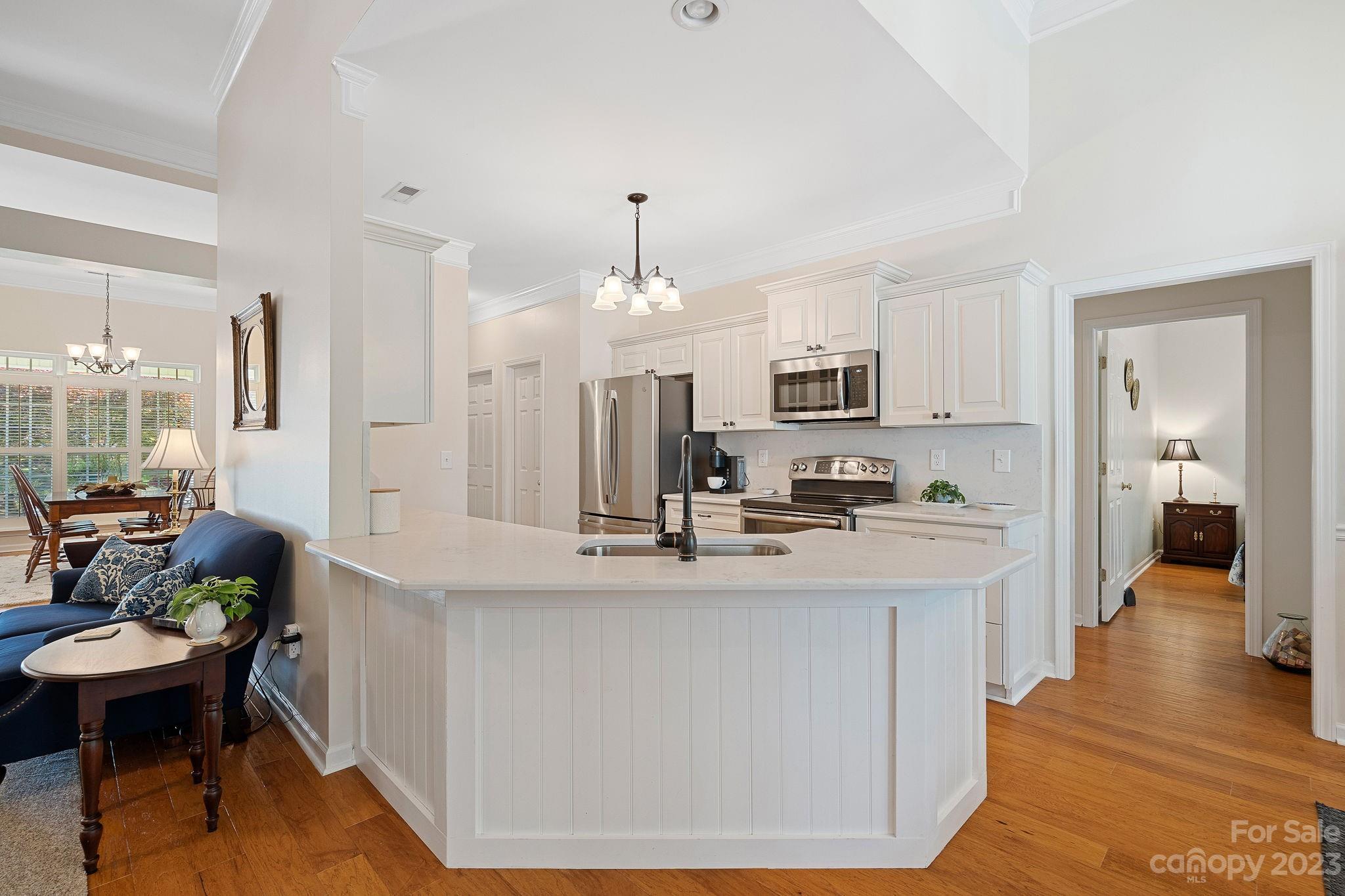 Rare find in Verdict Ridge! This tastefully updated, spacious ranch sits on a corner lot. The kitchen has been fully renovated with new white cabinetry, quartz countertops, and GE Pro appliances. In addition to the Great Room, there’s a formal dining room, an office with French doors, and a bright sunroom overlooking the backyard. Beautiful wide-plank engineered floors have been installed throughout the home. The primary bedroom has a tray ceiling and its private bathroom has been updated with a walk-in shower and tile floor. Two good-sized bedrooms sit on the opposite side of the house with another full bathroom. New HVAC in 2020. Neutral paint. A large paver patio is perfect for entertaining and enjoying the fenced-in backyard. Refrigerators and sunroom furniture will convey. Use of the neighborhood amenities requires private club membership. New roof will be installed soon!