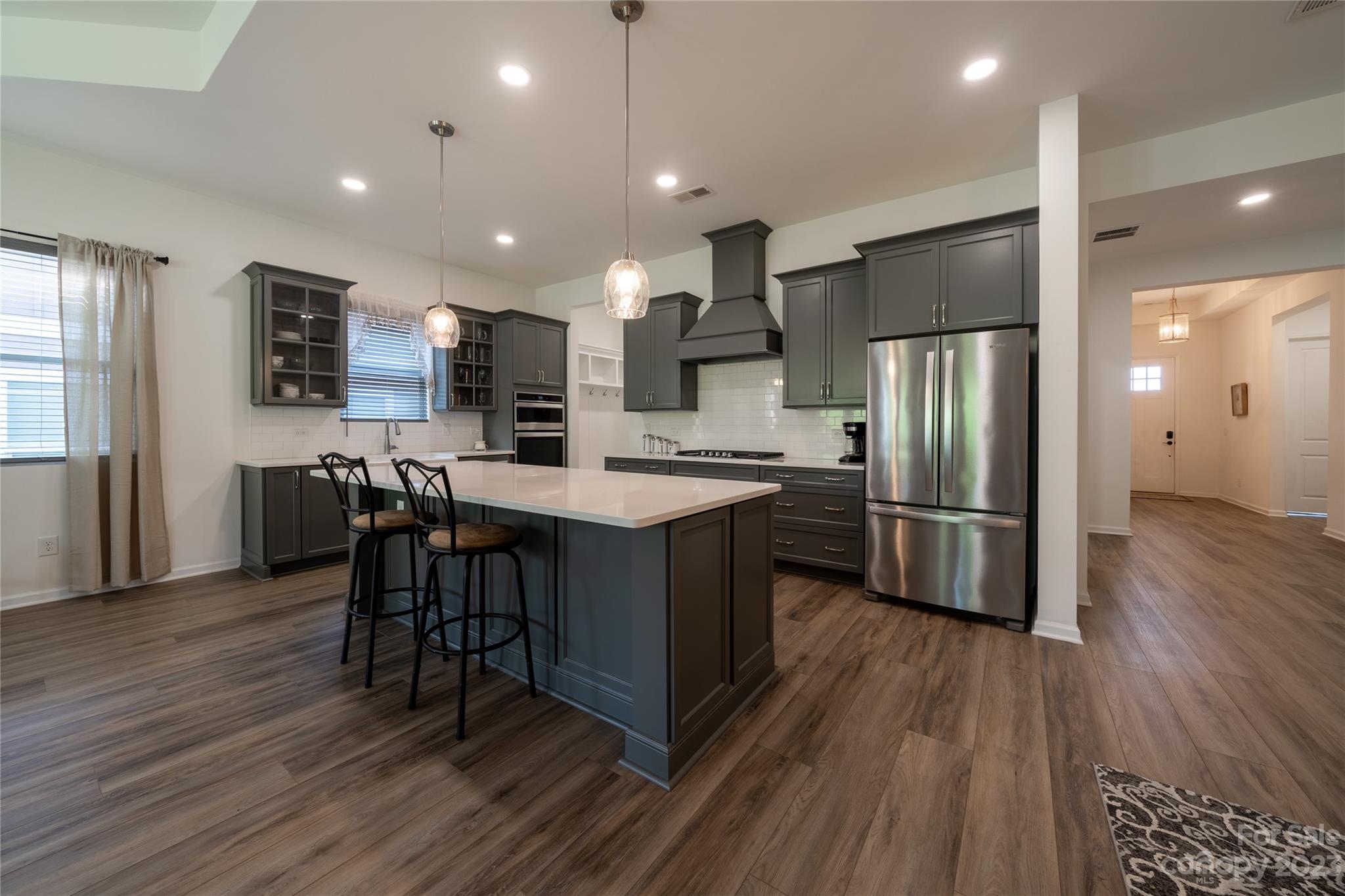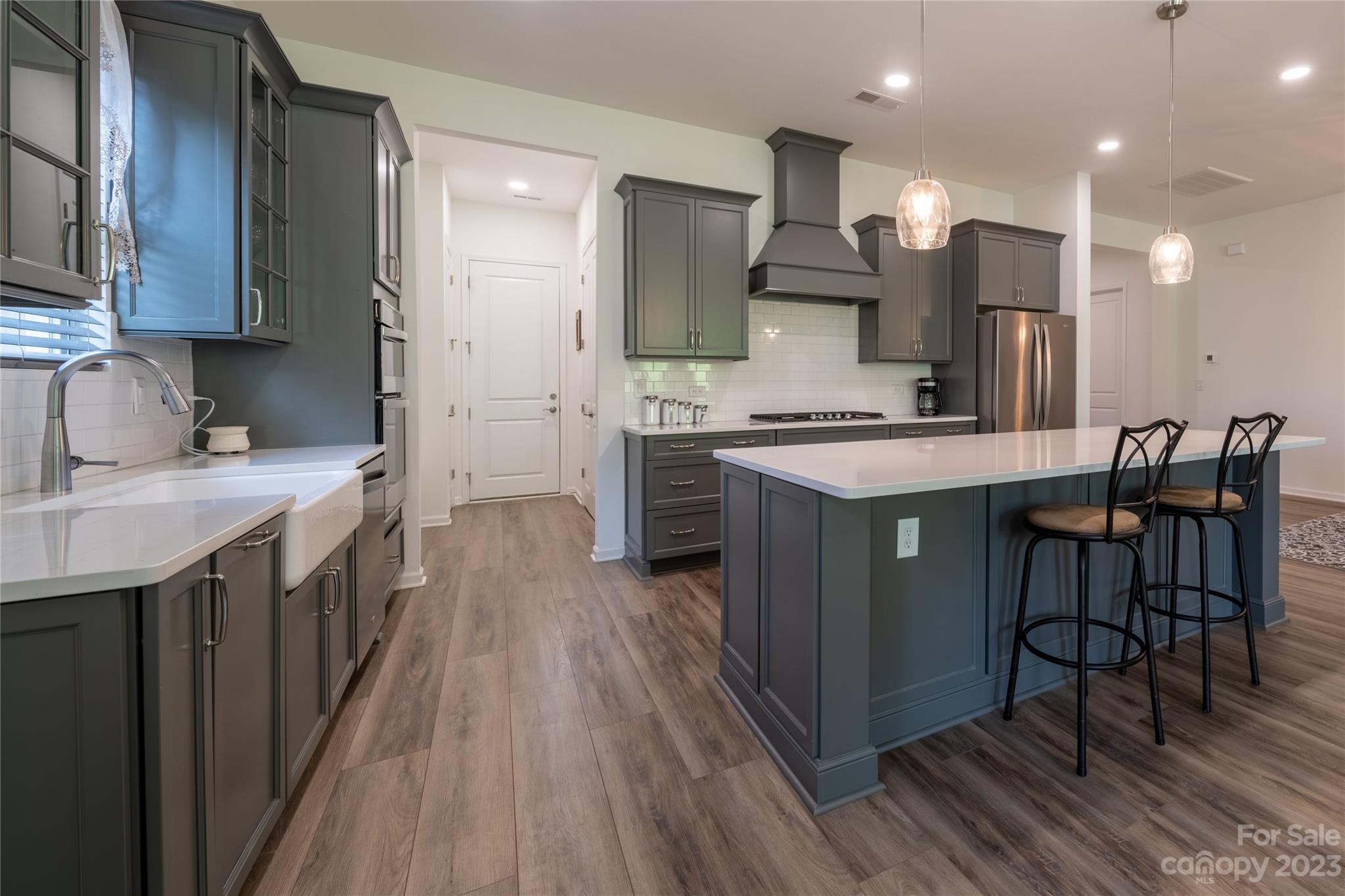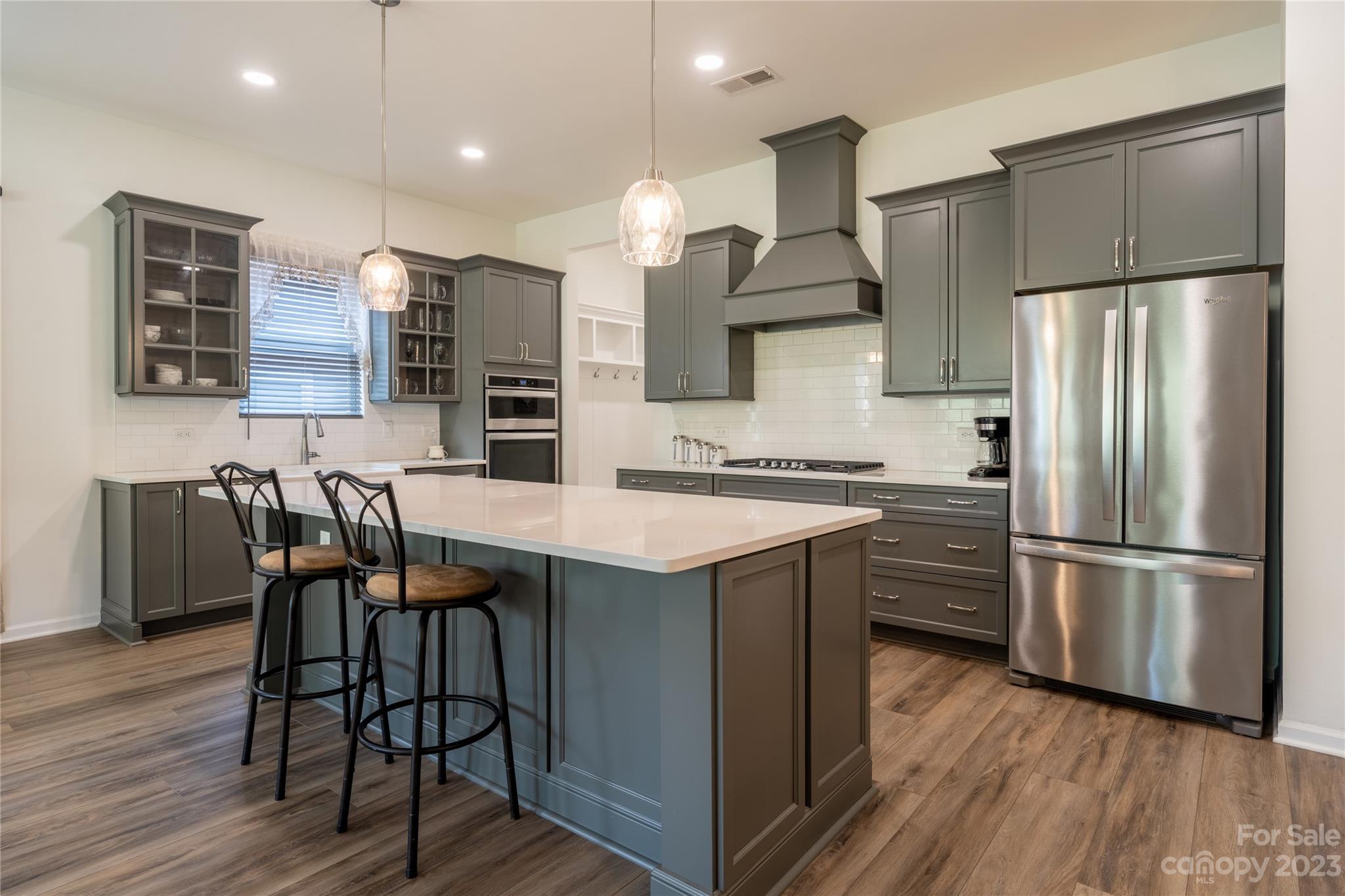 Welcome Home to MAGNOLIA COVE! Everything you're looking for: Bright and spacious open concept living includes 10' ceilings, extra wide hallways, and 8 ft. doors. The great room with gas fireplace and dining area opens to an upgraded chef's kitchen with extra large island and 42" soft close grey cabinets, decorative hood, quartz countertops, white tile backsplash, and all stainless steel Whirlpool appliances including french door refrigerator, gas range, microwave, dishwasher & farmhouse sink. The light and airy master suite includes an extra large shower, quartz counter tops with grey soft close cabinets, and spacious closet. Upgraded lighting through out. Blinds included. Enjoy outdoor living on your large rear covered porch with 4 sliding doors to your great covered porch. HOA includes front lawn maintenance. Great location near new shopping center with Publix close to Denver and Mooresville.
