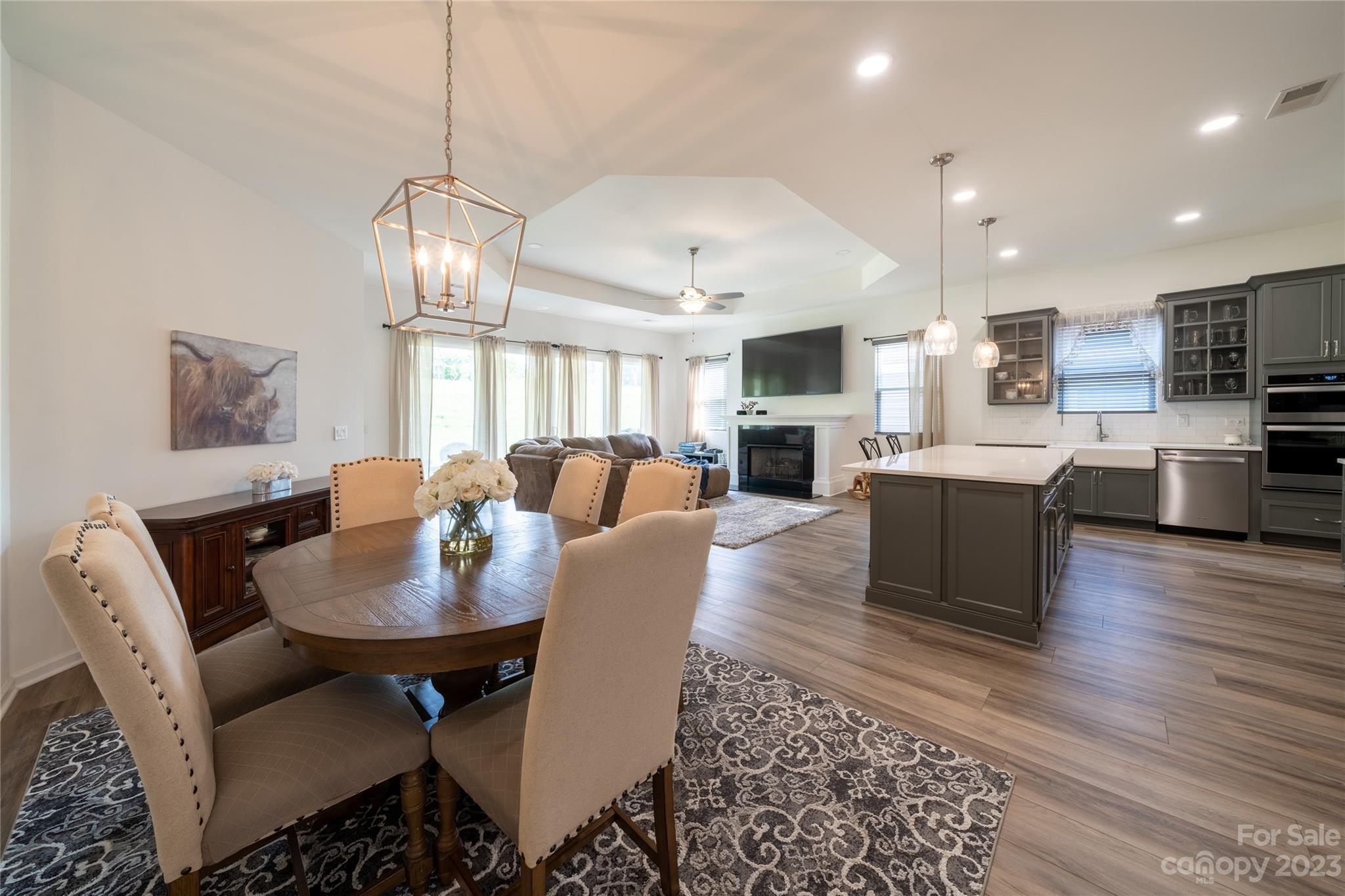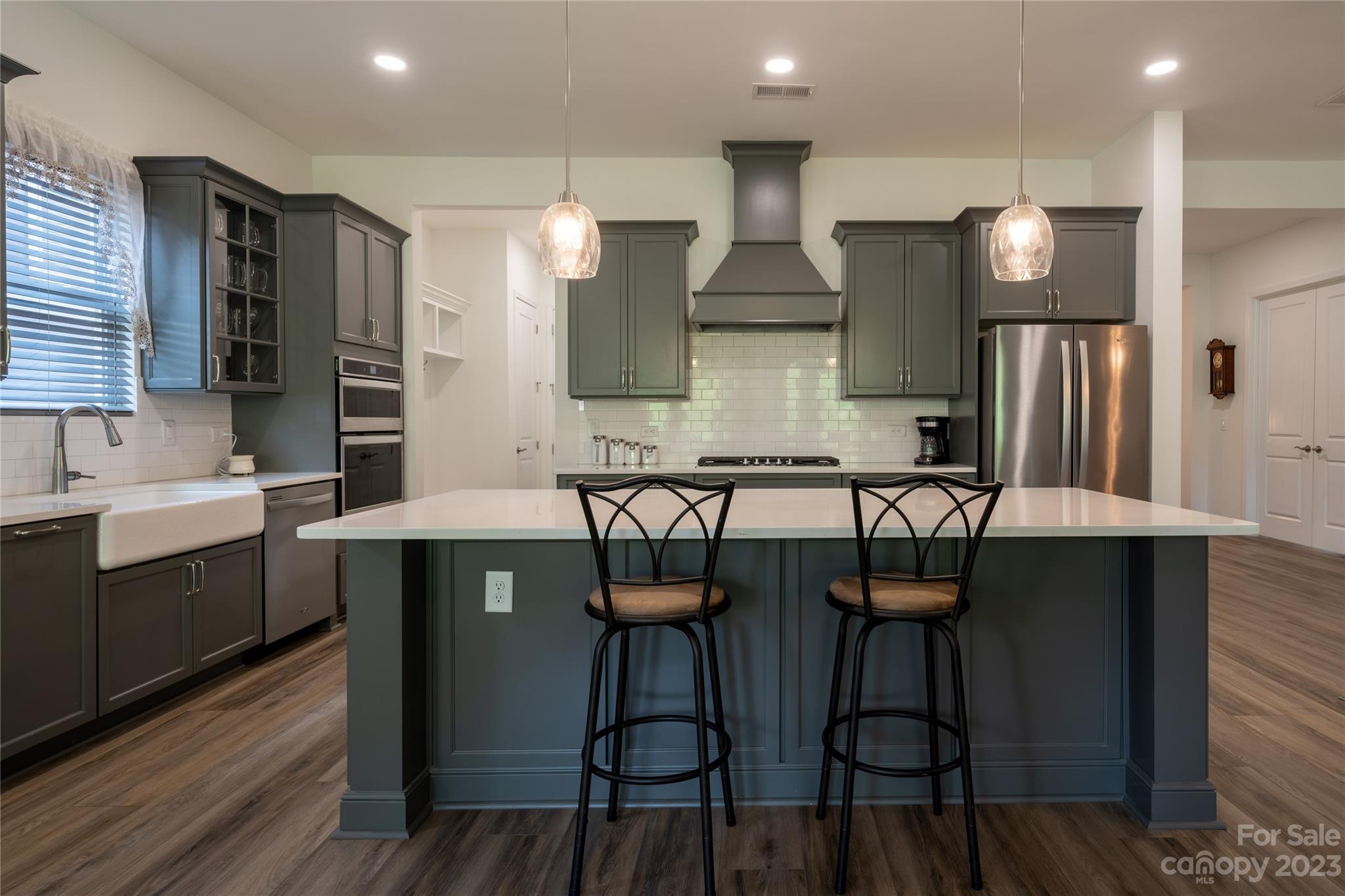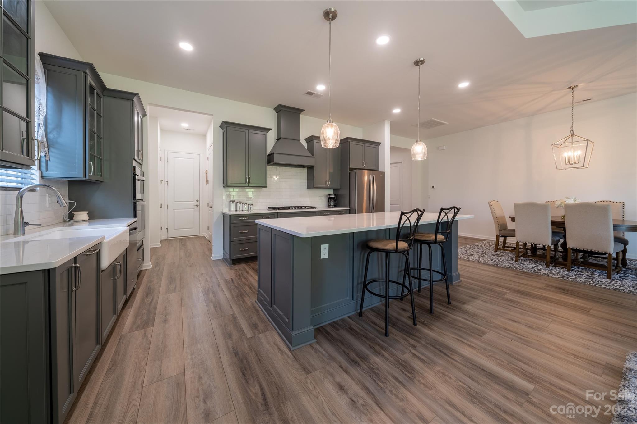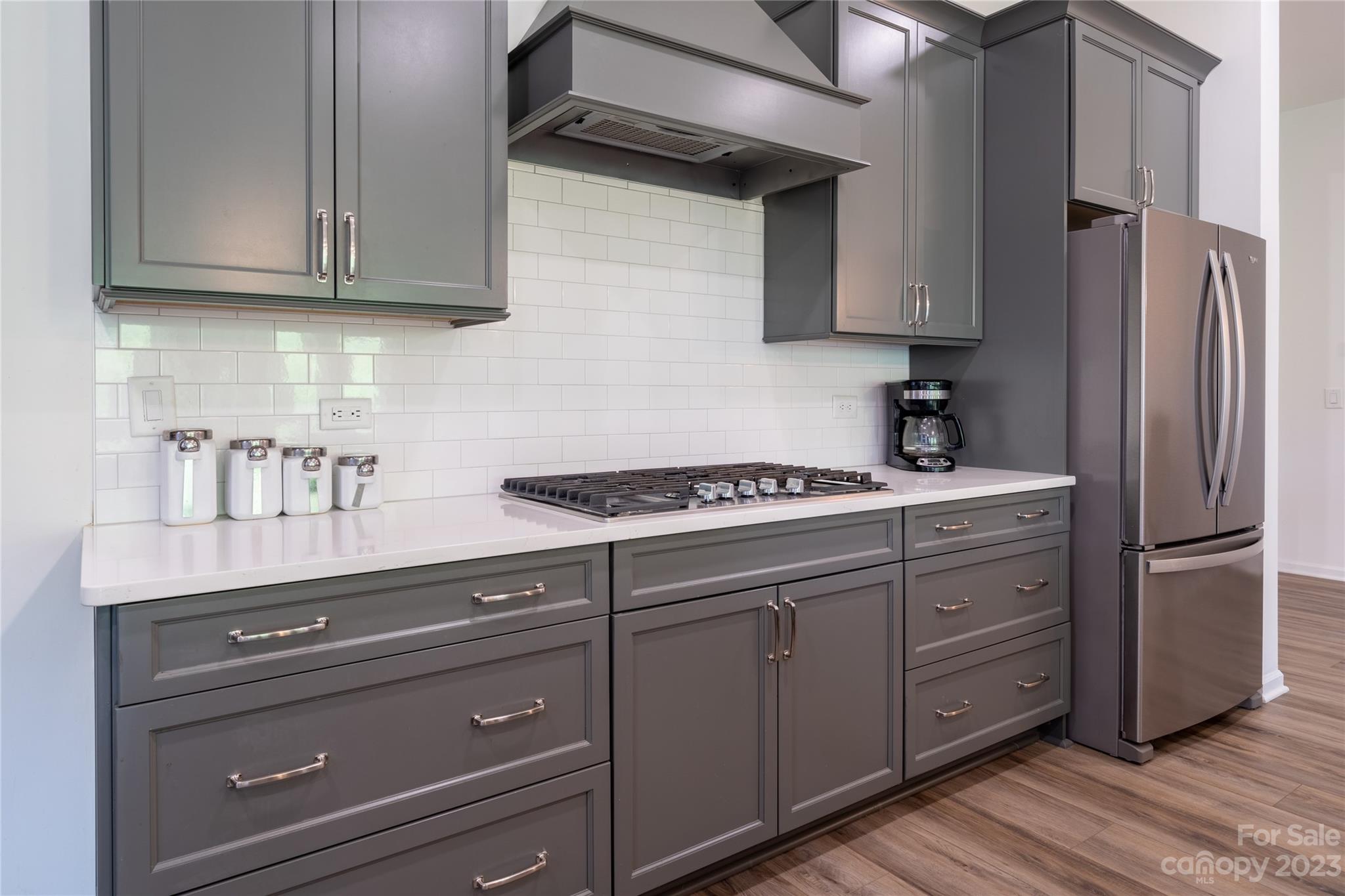 Welcome Home to MAGNOLIA COVE! Everything you're looking for: Bright and spacious open concept living includes 10' ceilings, extra wide hallways, and 8 ft. doors. The great room with gas fireplace and dining area opens to an upgraded chef's kitchen with extra large island and 42" soft close grey cabinets, decorative hood, quartz countertops, white tile backsplash, and all stainless steel Whirlpool appliances including french door refrigerator, gas range, microwave, dishwasher & farmhouse sink. The light and airy master suite includes an extra large shower, quartz counter tops with grey soft close cabinets, and spacious closet. Upgraded lighting through out. Blinds included. Enjoy outdoor living on your large rear covered porch with 4 sliding doors to your great covered porch. HOA includes front lawn maintenance. Great location near new shopping center with Publix close to Denver and Mooresville.