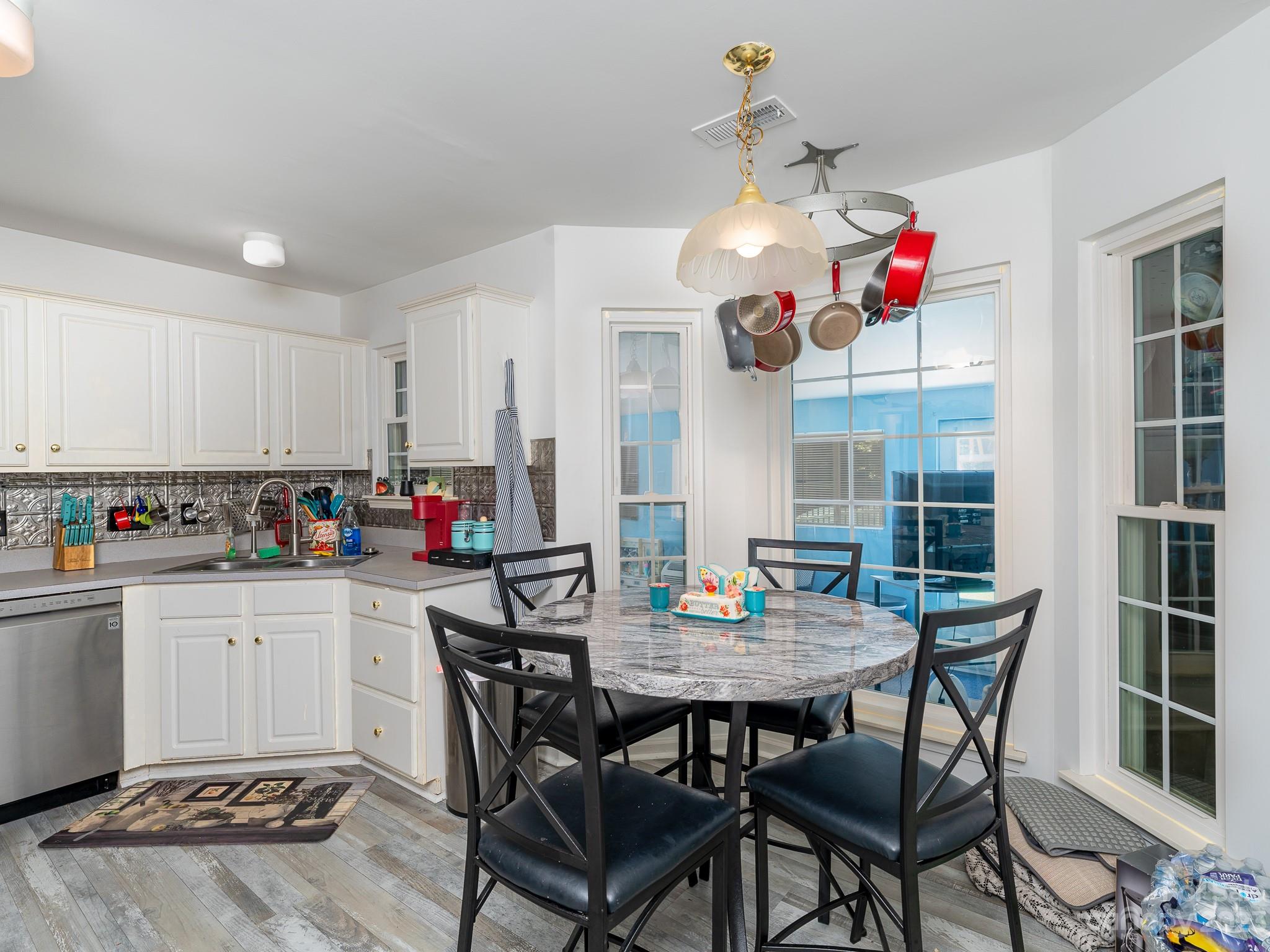 BACK ON MARKET, PREVIOUS BUYER DID NOT DISCLOSE REASON FOR TERMINATION NOR DID THEY SHARE INSPECTION REPORT! NO FAULT TO SELLER. Location! Location! Location! Enjoy the tranquility this charming four-bedroom, home offers. From all of the space it offers, to the amazing floor plan! Garage door and water heater 2020. Heat pump 2019, appliances 2022, lVP flooring in the kitchen 2022, outside handrails 2022. The downstairs master is ideal and creates a sense of privacy and convenience. Washer and dryer will not convey with the home. The outside oasis offers such an inviting scenery, perfect for relaxation or entertainment! Additions in the back are not permitted and are heated and cooled. Playset can convey with home. Come see this one before it's gone.