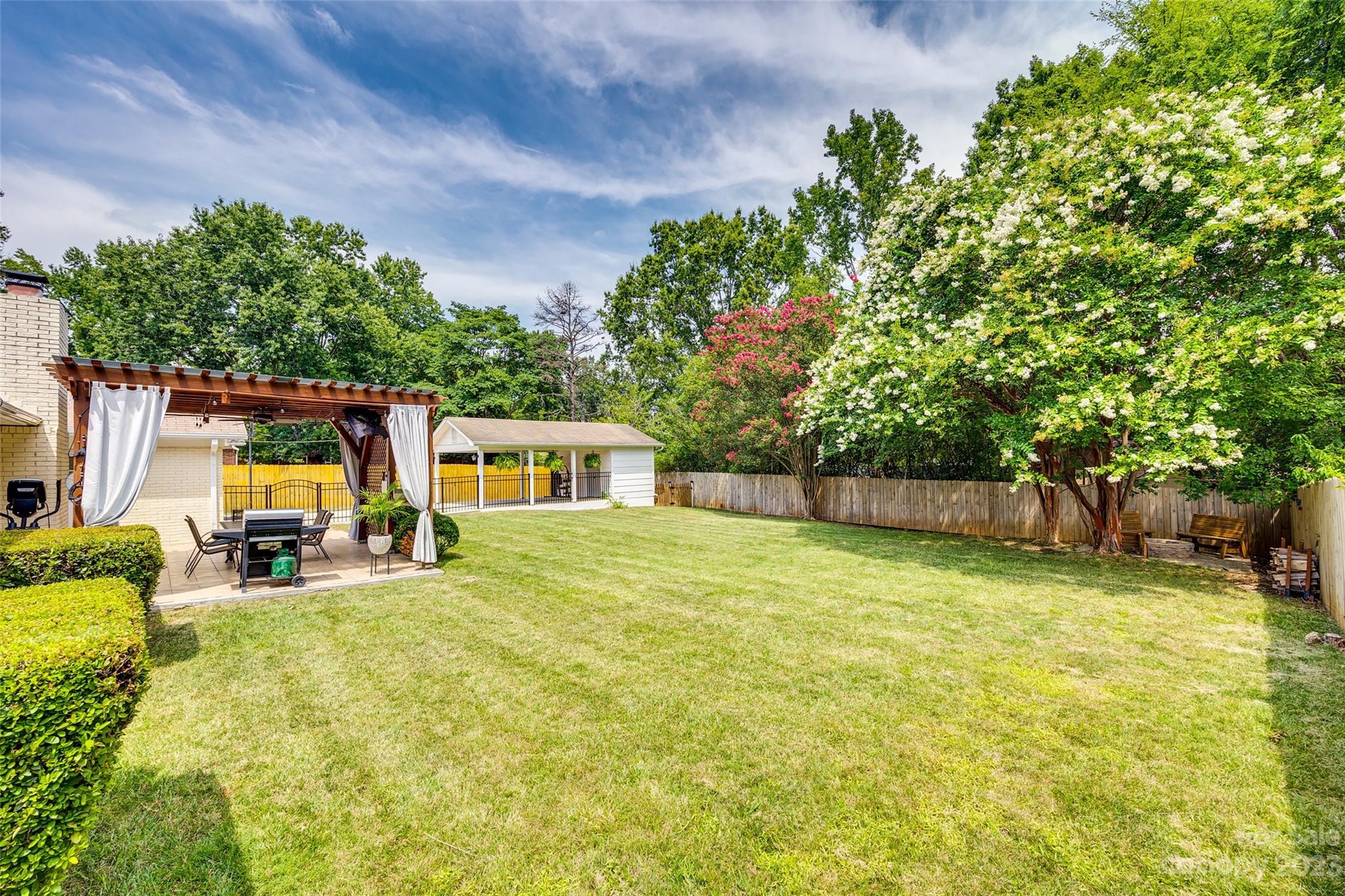 Simply charming recently renovated ranch near Cotswold, SouthPark and with easy access to Uptown and Independence Blvd in a mature neighborhood complete with sidewalks and lush trees. Don’t miss this opportunity to own this delightfully well maintained 3BR, 2 B home, beautifully renovated with granite counter tops and spacious island with seating in the kitchen, all stainless steel appliances, new HWH, tile and LVP flooring throughout main living areas. Enjoy the outdoors with a lovely extended living space for entertaining complete with pergola over a tiled patio with mounted TV and cozy fire pit in the back yard. There is also a gas fireplace in the den and two outdoor storage areas plus a fenced in yard for furry family members to enjoy. The best news is there is NO HOME OWNERS ASSOCIATION. What’s not to love? Make this little gem in southeast Charlotte yours today. Schedule your tour before it is gone!