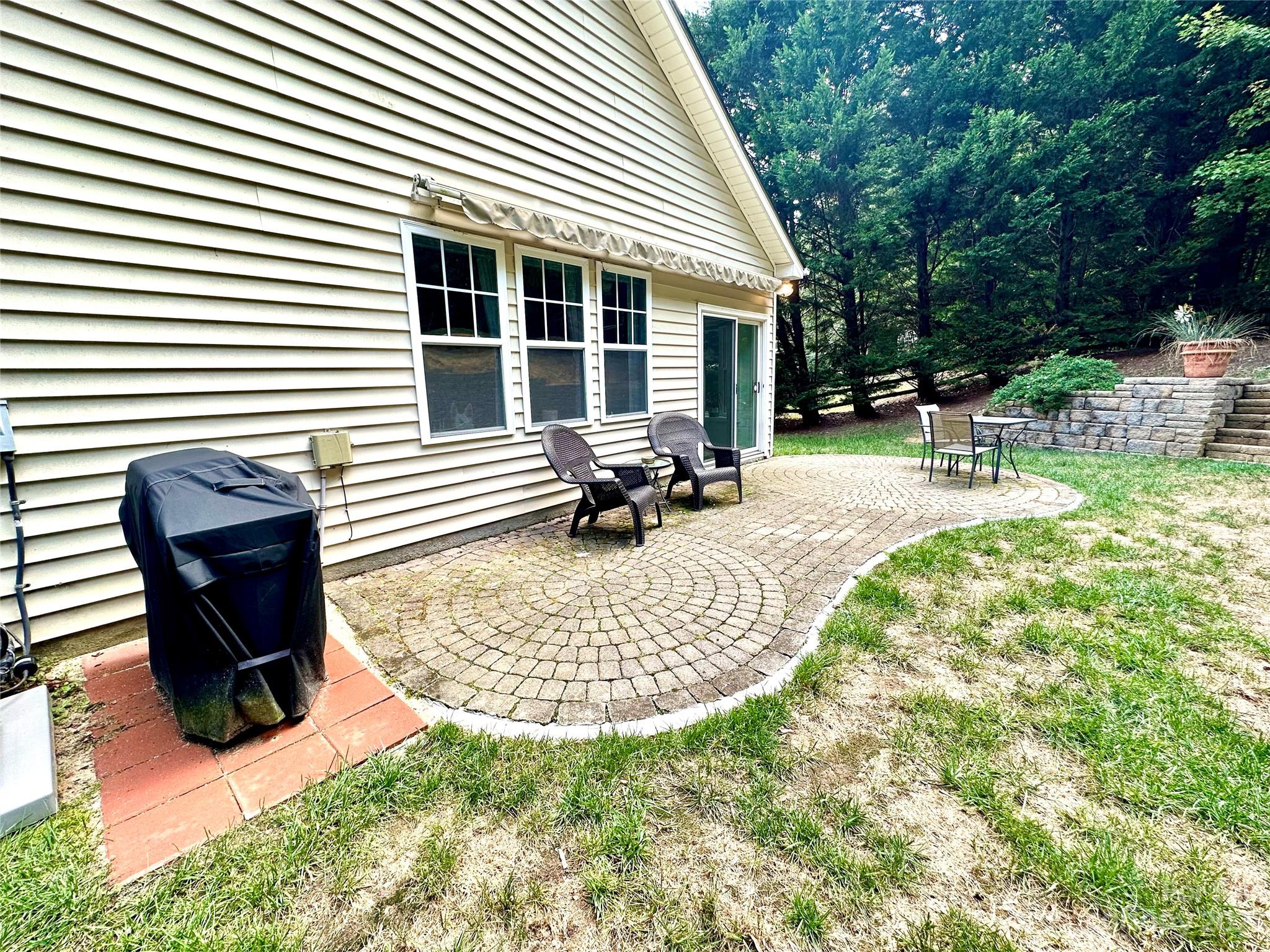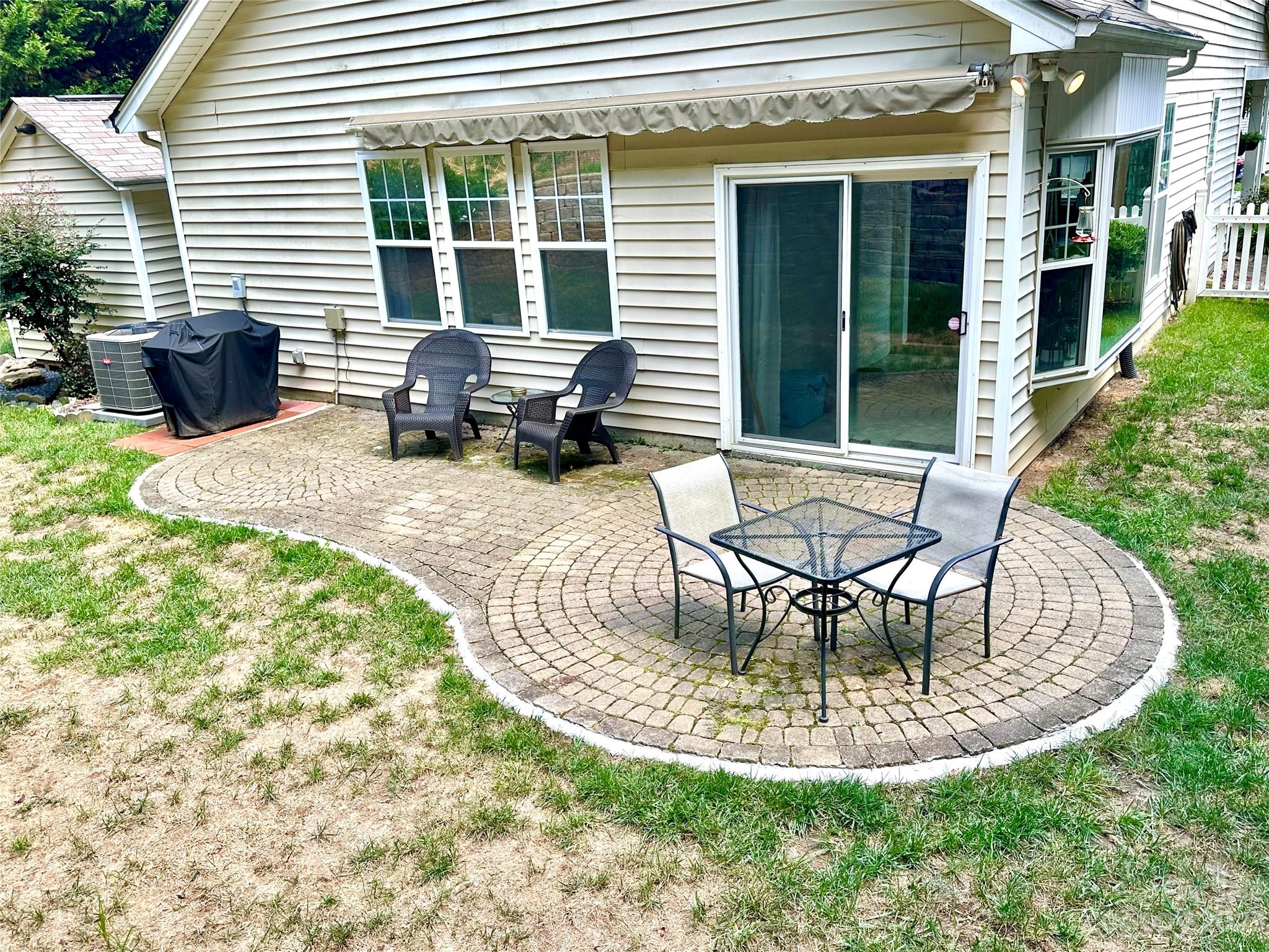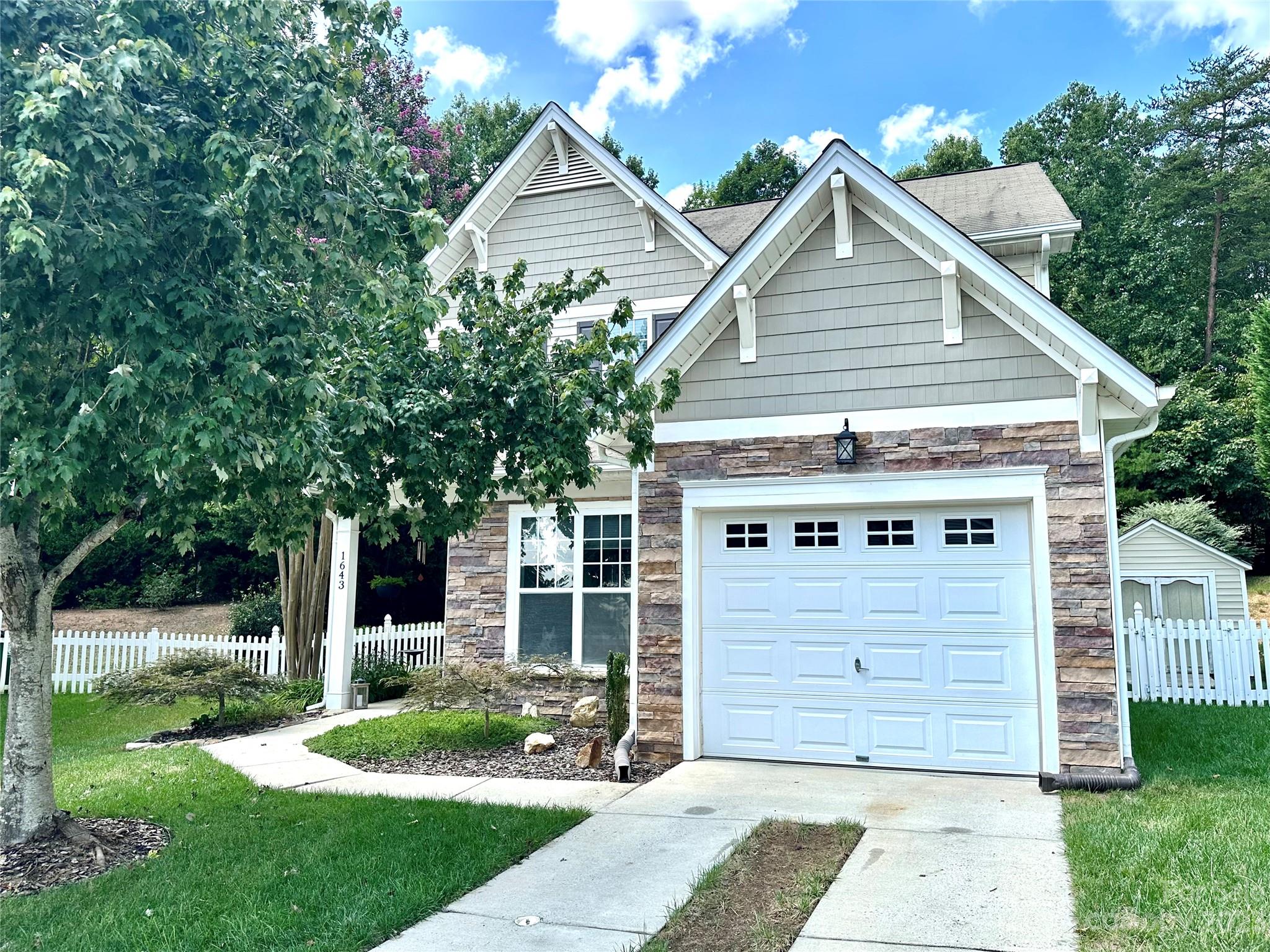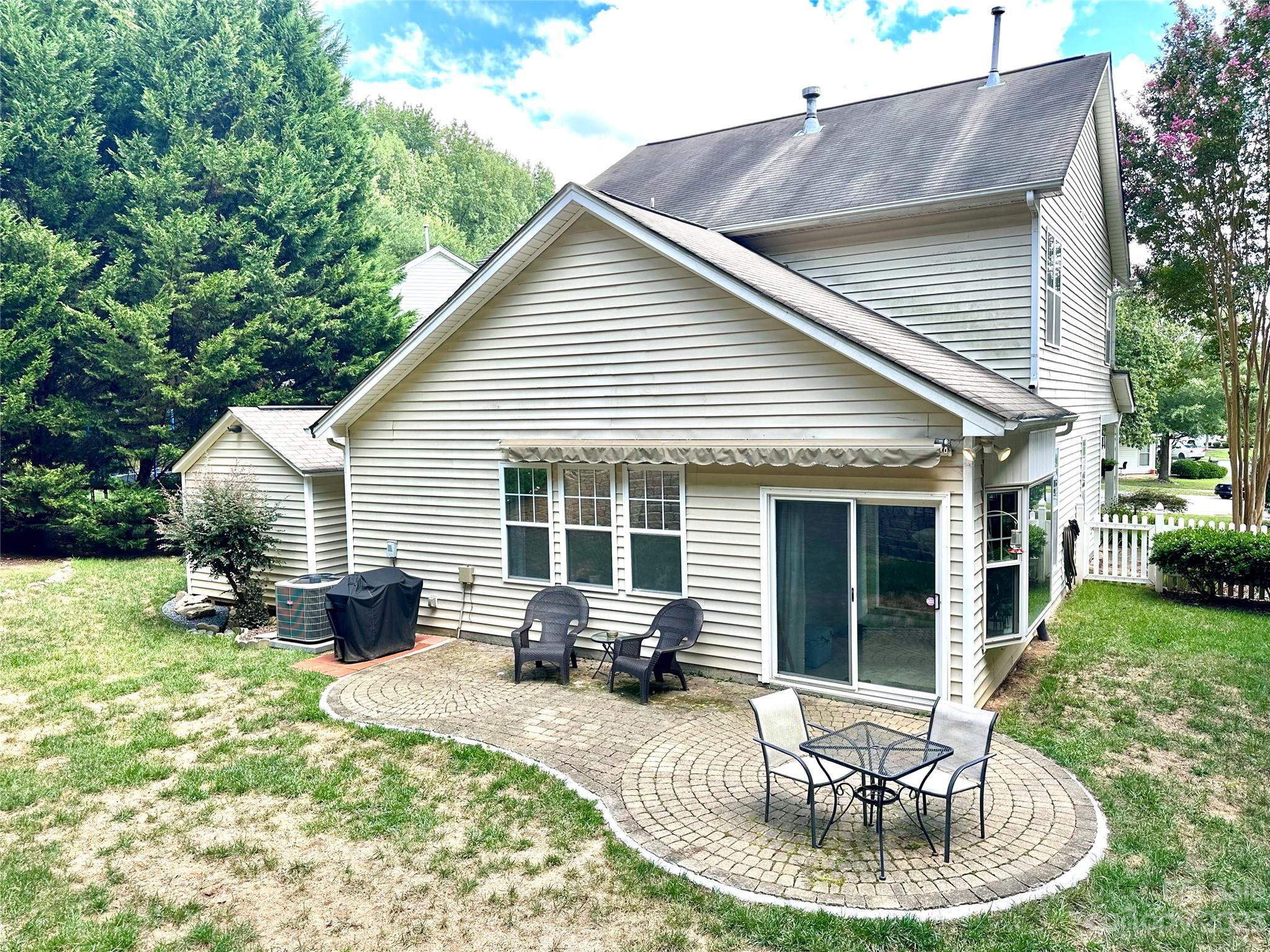 Fantastic well-maintained 1.5 story charmer on large private cul-de-sac lot w./ 1 car garage! This home offers a fantastic open airy floorplan w./ primary BR on main and multipurpose loft upstairs. Kitchen features updated quartz counters & tile backsplash (fridge, washer & dryer incl). Open 2-story living room opens onto kitchen & sunroom & features laminate hardwood flooring. Spacious primary BR overlooks private backyard & has a huge walk-in closet & cathedral ceiling. Primary bath provides a spa like feel w./ dual vanity, separate shower/soaking tub & plenty of space. Upstairs has 2 BR's and large bath in addition to the loft workspace. Beautiful fenced in backyard features a retractable awning over stone patio, perfect for entertaining! (Don't miss the storage shed). Blinds throughout, unique dining room light fixture as well as updated kitchen. Community offers great amenities including a pool and playground. Just minutes from shopping, dining and 485! A rare gem!