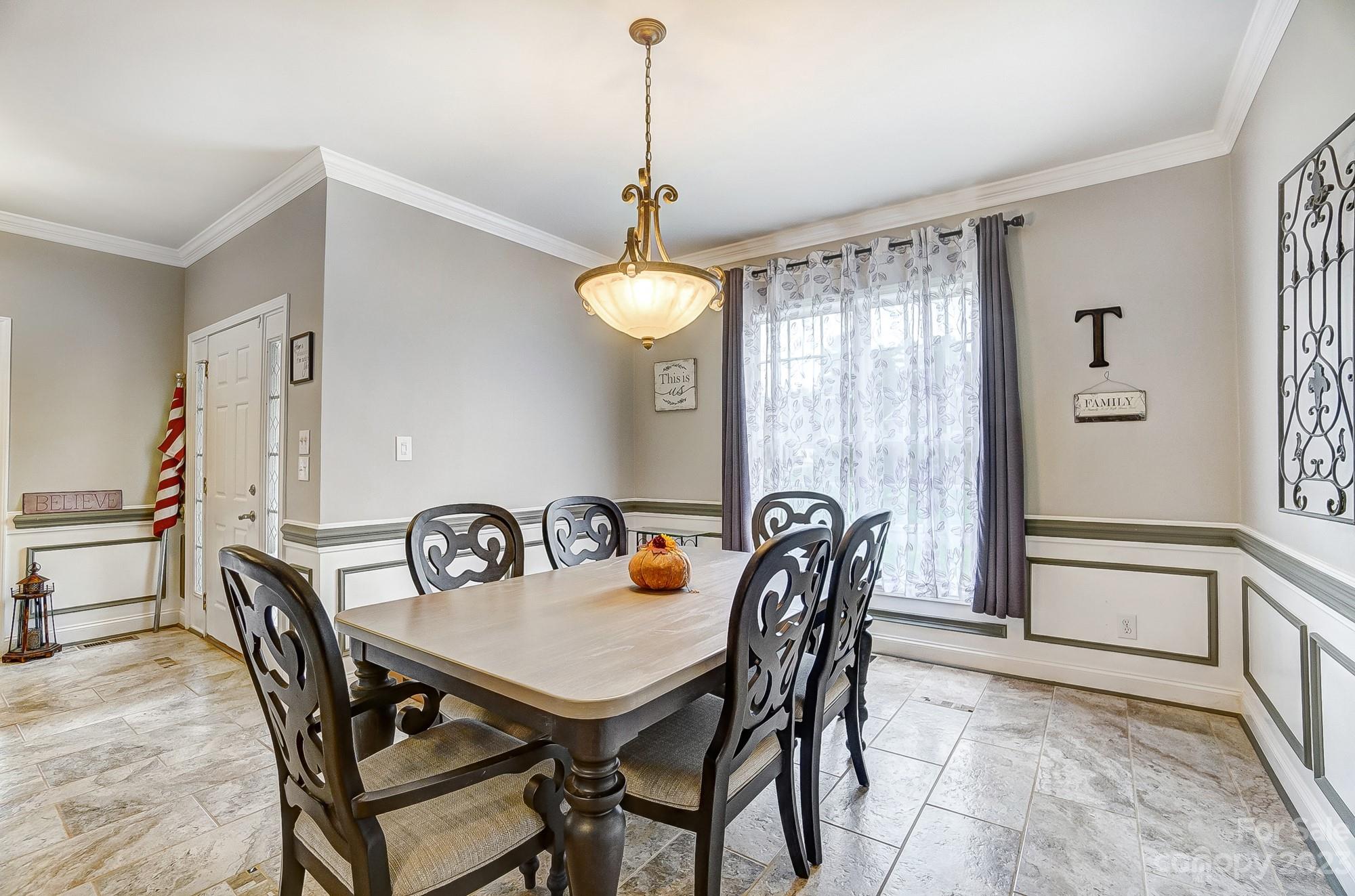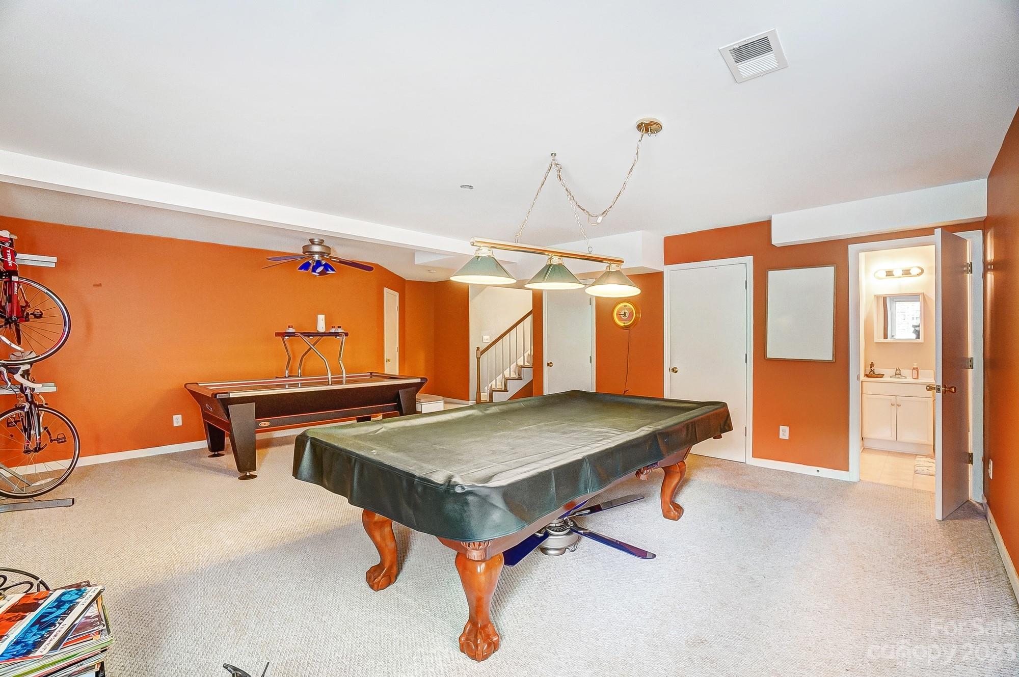Welcome to Oxfordshire a mature landscaped full brick neighborhood in Mint Hill. Wrap-around front porch is waiting for you and it sits on a quiet Culdesac street. Step inside to tasteful colors, tile flooring & hardwoods. The dining rm is accented with crown molding & wainscotting. Sunlit living room. Family rm with gas fireplace & updated mantle & surround is the perfect open concept. Designer kitchen you will fall in love with. Huge island with new appliances (Zline 36" dual fuel range) cabinets & countertops. Enjoy evenings on a 2 tiered private deck. Powder rm & laundry rm complete the main level. Upstairs find 4 bedrooms & a bonus room. The primary suite has a walk-in closet you will love. Hardwoods throughout the bedrooms. The basement is finished with a half bath & huge storage closet. All appliances, pool & air hockey table convey with an acceptable offer.
