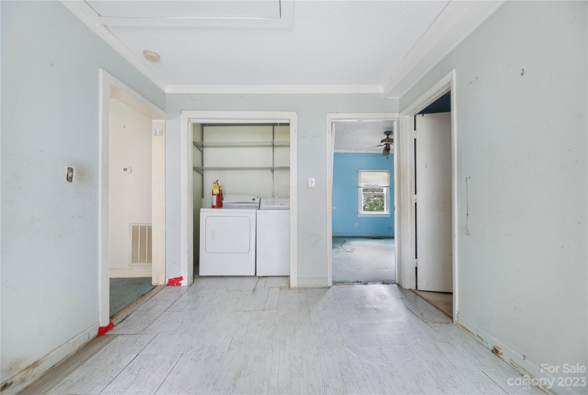 The home has over 1500 square feet of living and is in need of some TLC, cosmetic updating, and repairs to the kitchen subfloor. The exterior of the home has been power washed and all debris has been removed from the yard. The large addition was previously used as the owner's suite with a walk-in closet and Bathroom.
