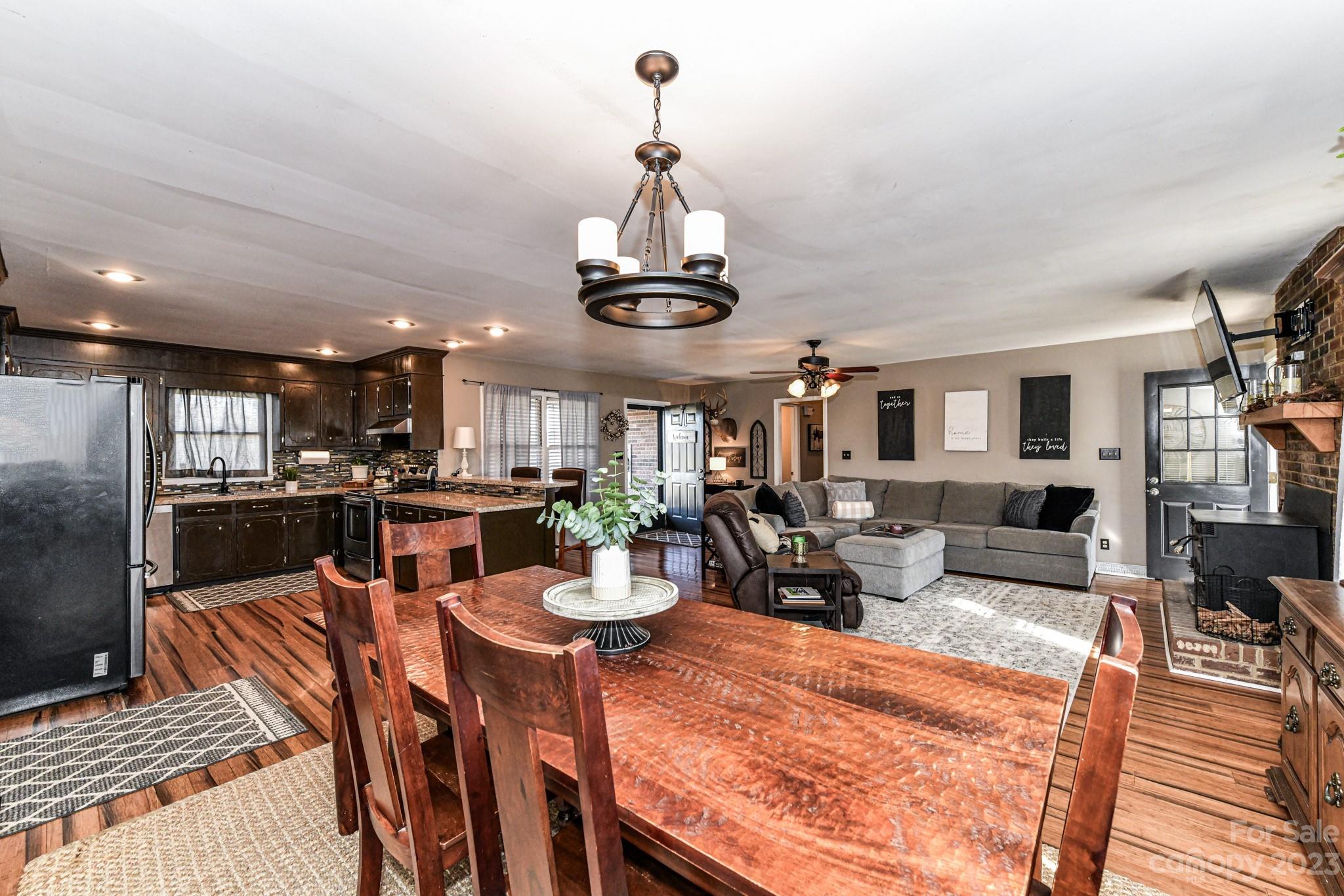 Looking for Peace and Quiet on almost 4 acres but access to 485 and the 74 Bypass?…then this is your new HOME! Full brick ranch with beautiful views of rolling pasture land sitting on your front porch or woods & farm land from your back porch. Literally Just inside Anson county with views of the sign for Union County from your driveway. There is plenty of room for RV’s, ATVs, boats, etc. Perfect Garden area with raised beds & beautiful vines. Covered back porch and patio for entertaining with TV and firepit. Very open and large living space! Kitchen has breakfast bar and newer appliances. Large dining area with room for large table. Great room has true wood burning fireplace. Extra large laundry room with movable folding cabinet and two closets (honestly could be small 3rd bedroom if washer/dryer were moved). 2 good sized bedrooms with full bath & half bath. This home feels bigger than the sq ft. Because it is so open. Outbuilding with storage & area to park under cover. Come see!