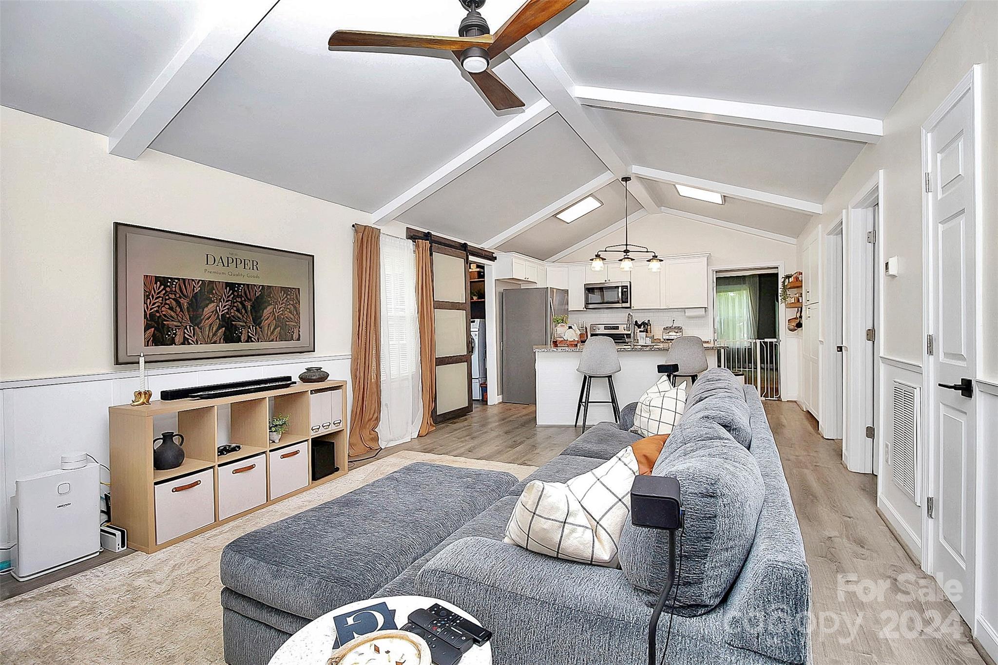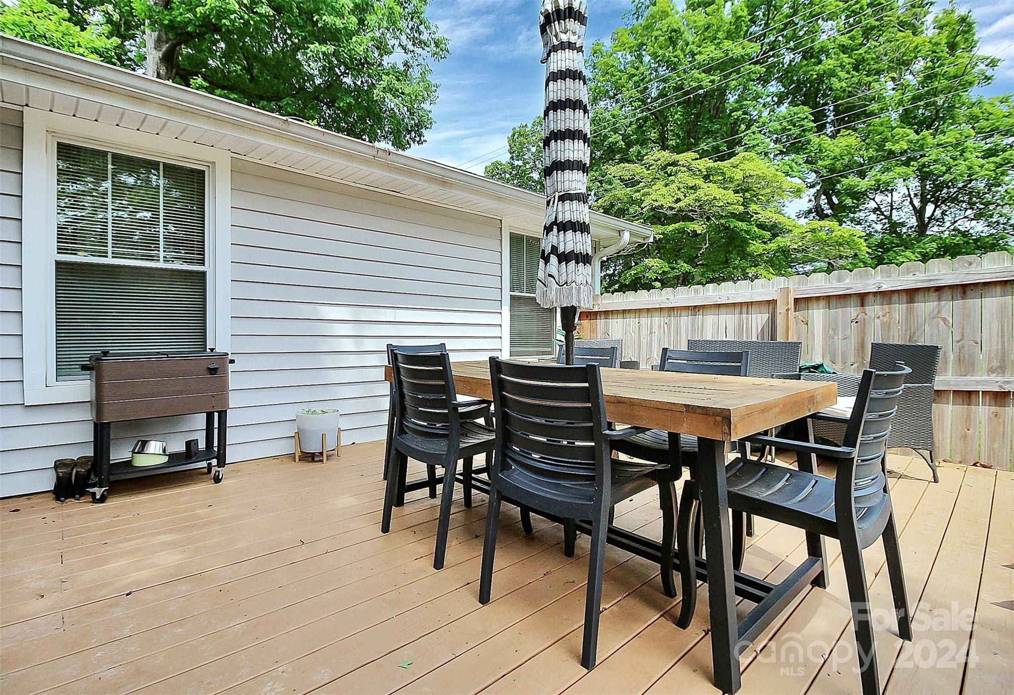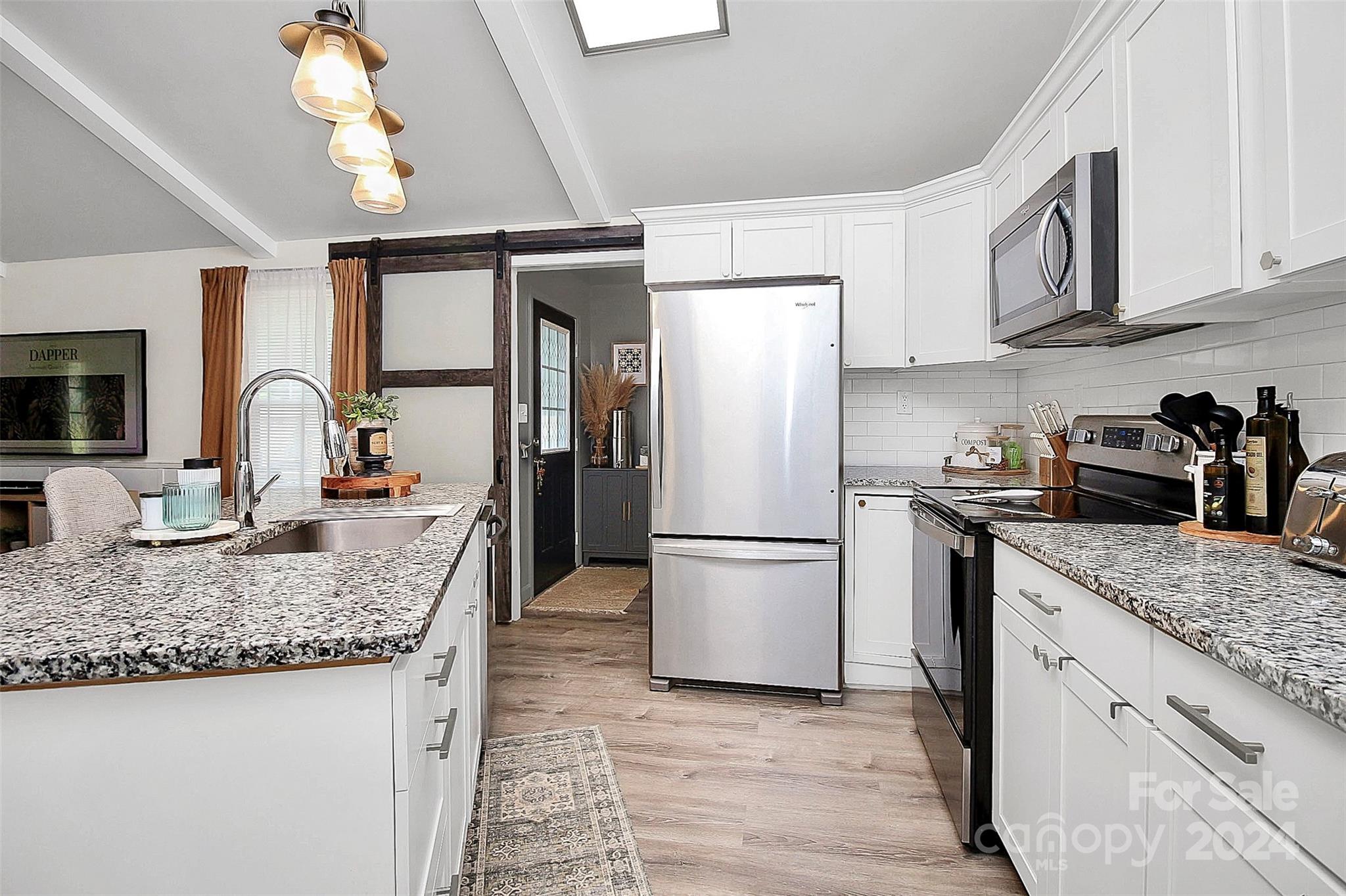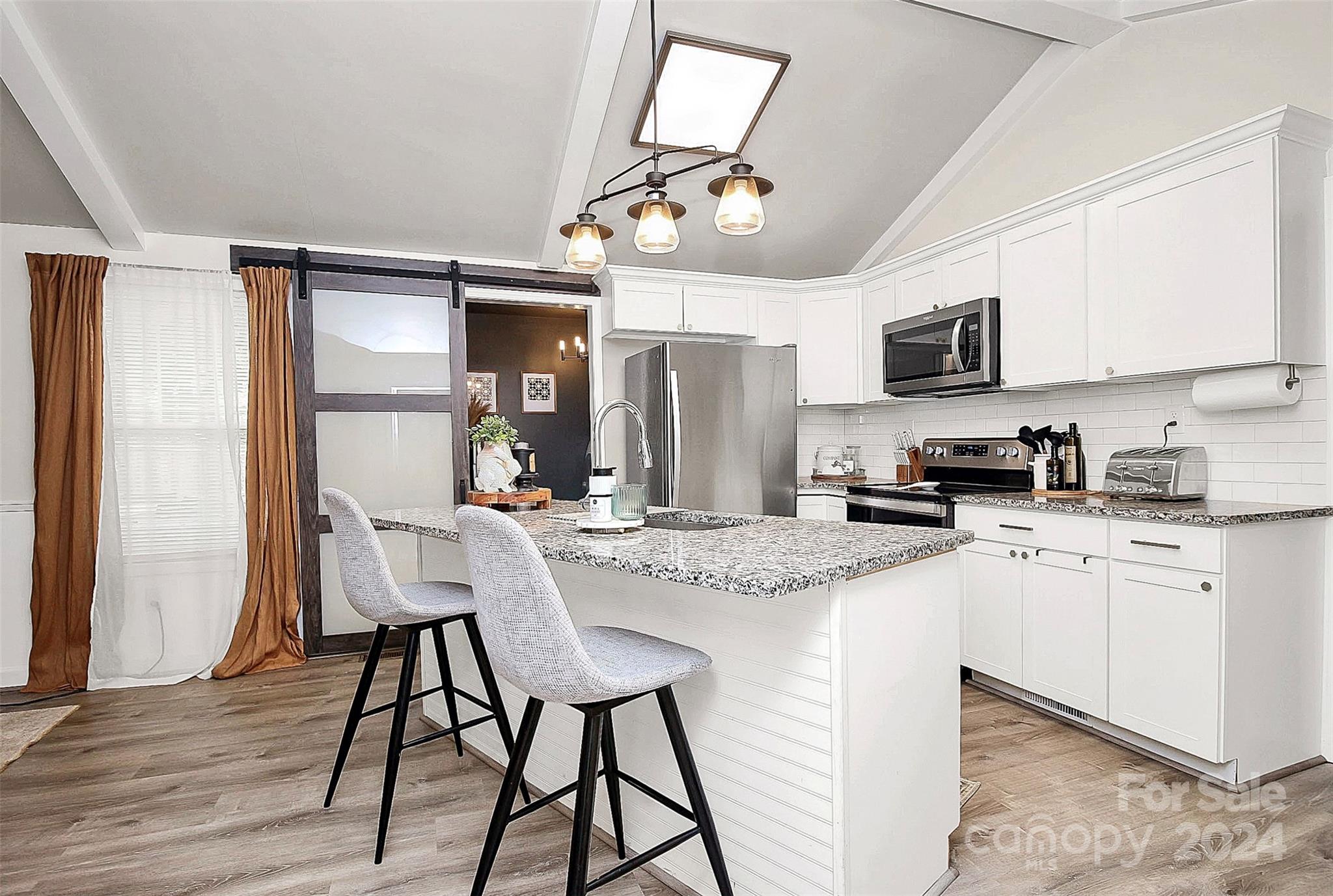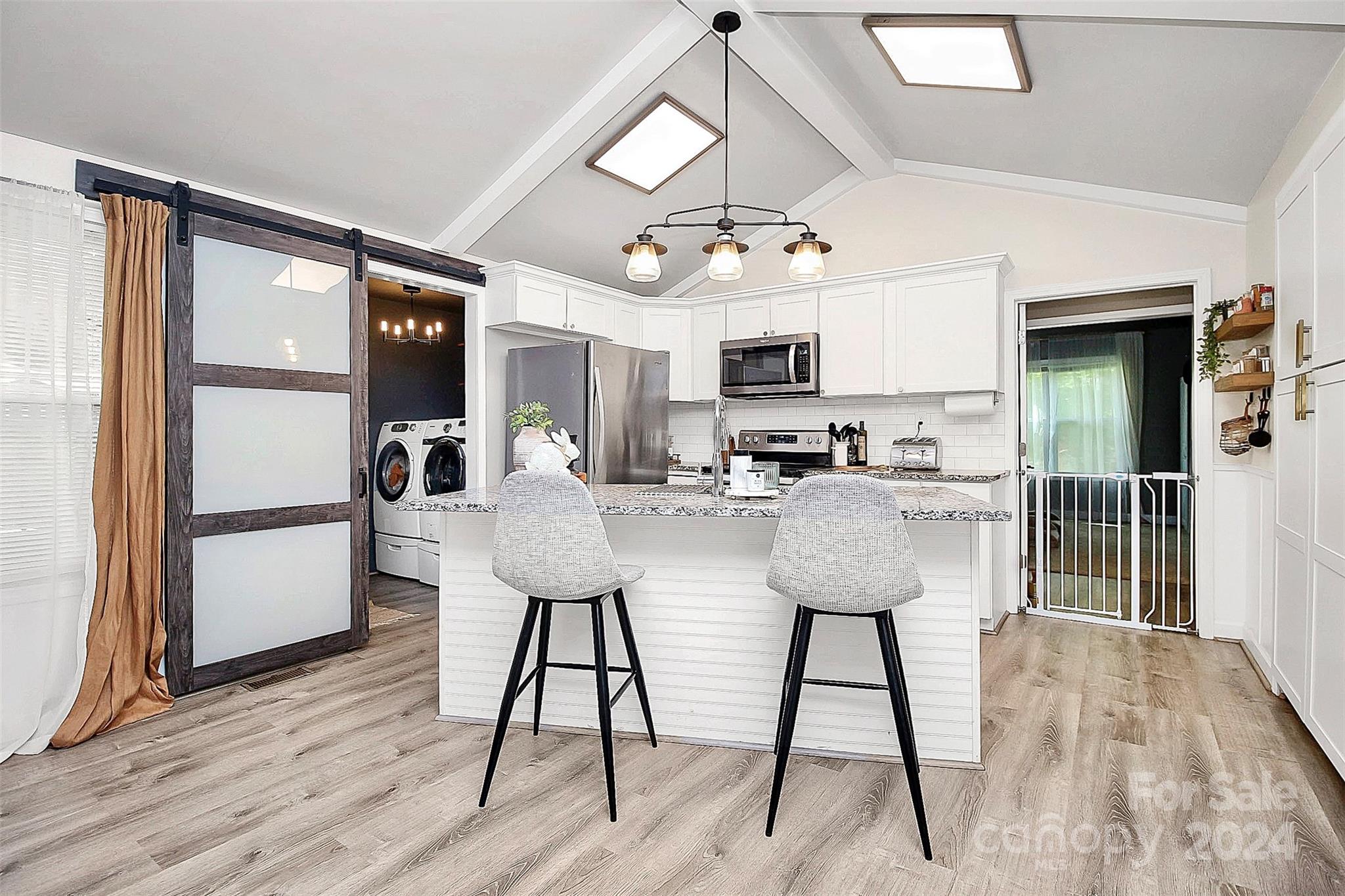 Coming home will be a joy when you own this gorgeous gem minutes away from everything you need! This 3BD|2BA home has been transformed to a luxurious oasis. You will love the gorgeous open floor plan with the beautiful LVP flooring, gourmet kitchen, stylish laundry room hidden behind the barn door with front load washer and dryer, the classy primary bedroom, and each bath that has its own unique style and charm. All stainless steel appliances in the kitchen! Amazing cathedral ceilings, exquisite lighting and the signature backdrop in the primary bedroom makes this a must have! When outside, the exterior will amaze you! Gatherings in the backyard will never be the same! There's a spacious deck and tons fenced-in yard that is calling your name. This home has everything you need for a seamless move-in. See it today!