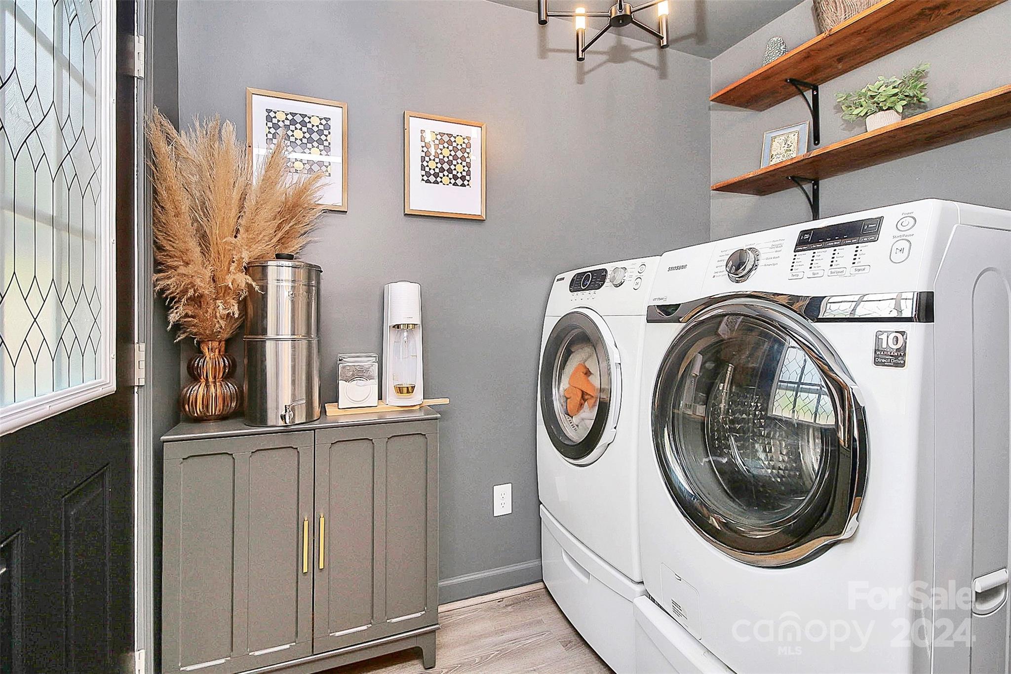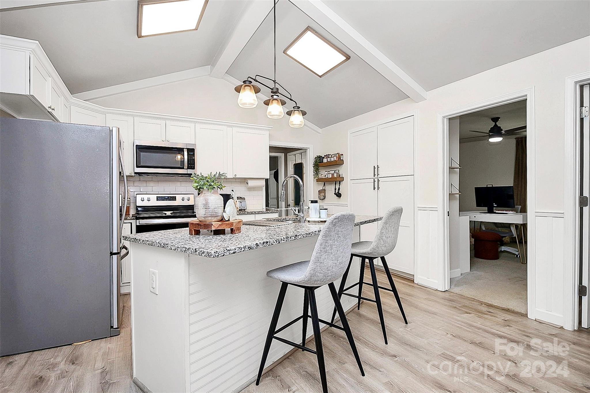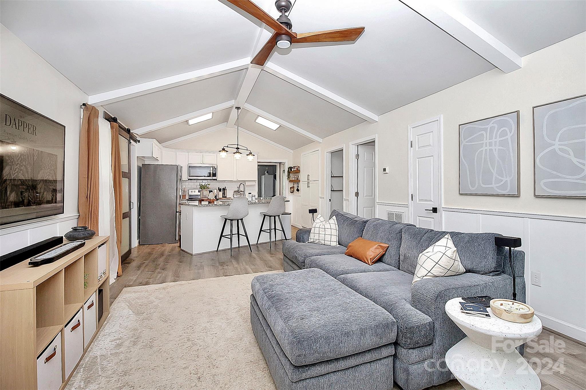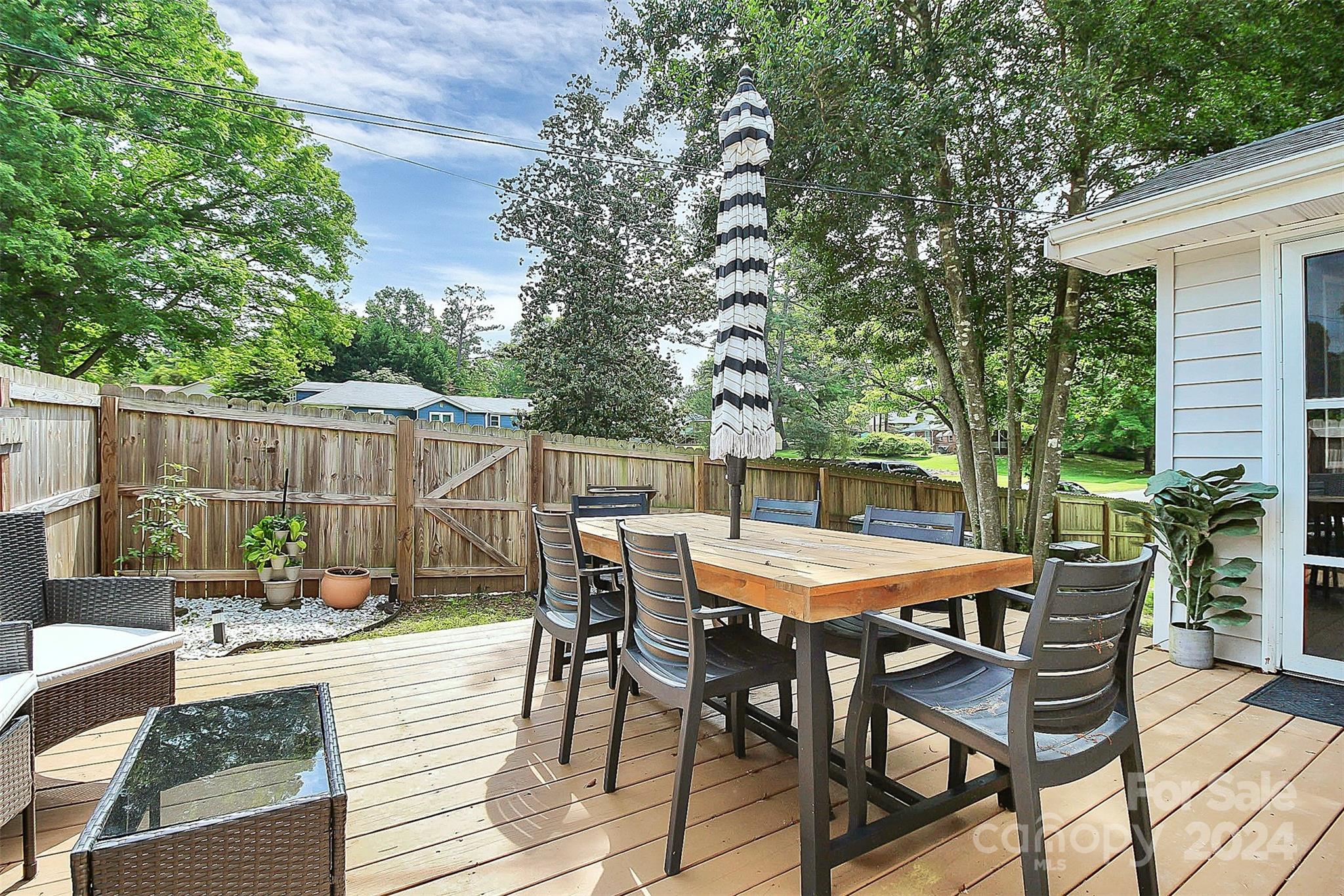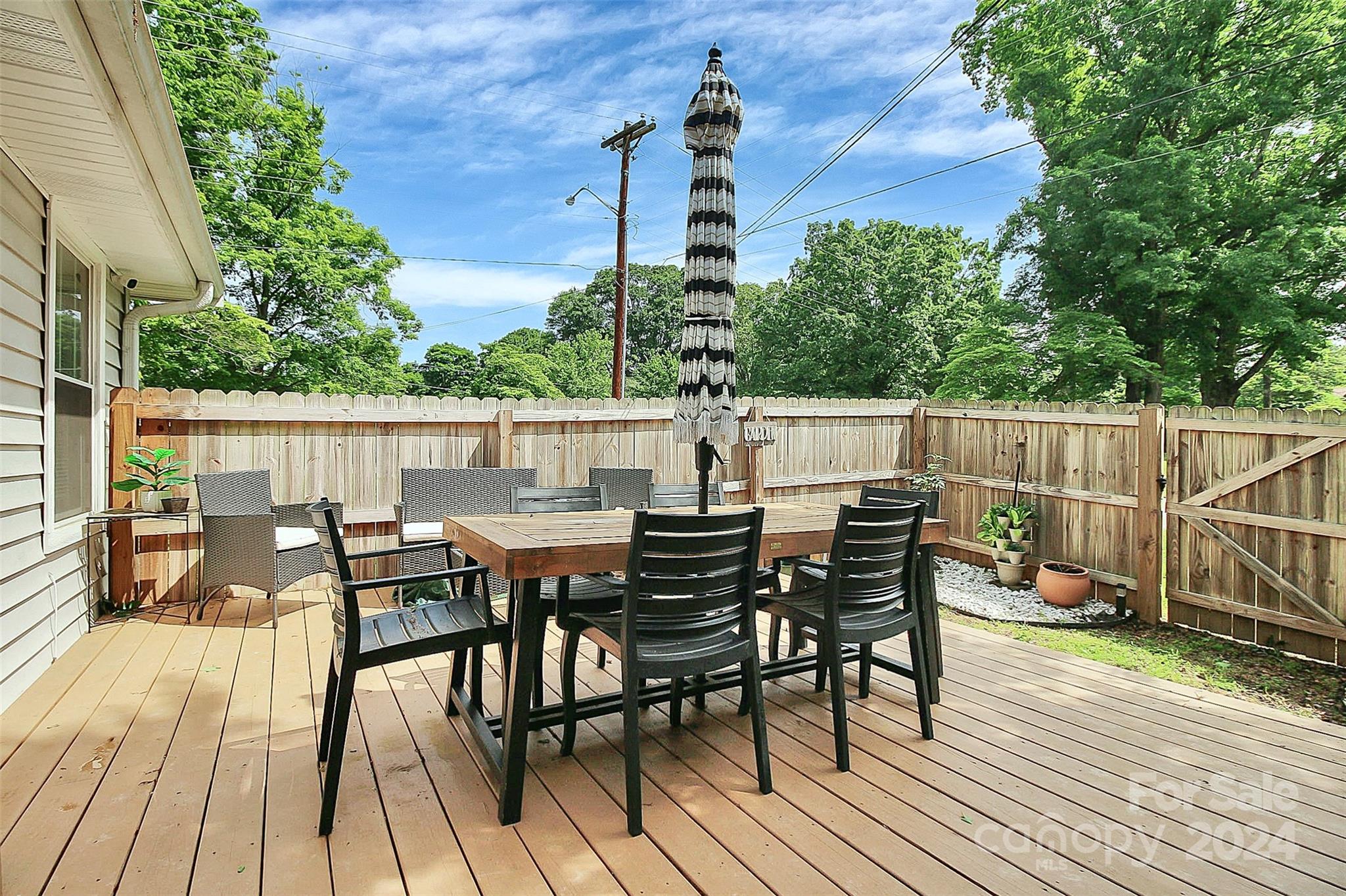 Coming home will be a joy when you own this gorgeous gem minutes away from everything you need! This 3BD|2BA home has been transformed to a luxurious oasis. You will love the gorgeous open floor plan with the beautiful LVP flooring, gourmet kitchen, stylish laundry room hidden behind the barn door with front load washer and dryer, the classy primary bedroom, and each bath that has its own unique style and charm. All stainless steel appliances in the kitchen! Amazing cathedral ceilings, exquisite lighting and the signature backdrop in the primary bedroom makes this a must have! When outside, the exterior will amaze you! Gatherings in the backyard will never be the same! There's a spacious deck and tons fenced-in yard that is calling your name. This home has everything you need for a seamless move-in. See it today!