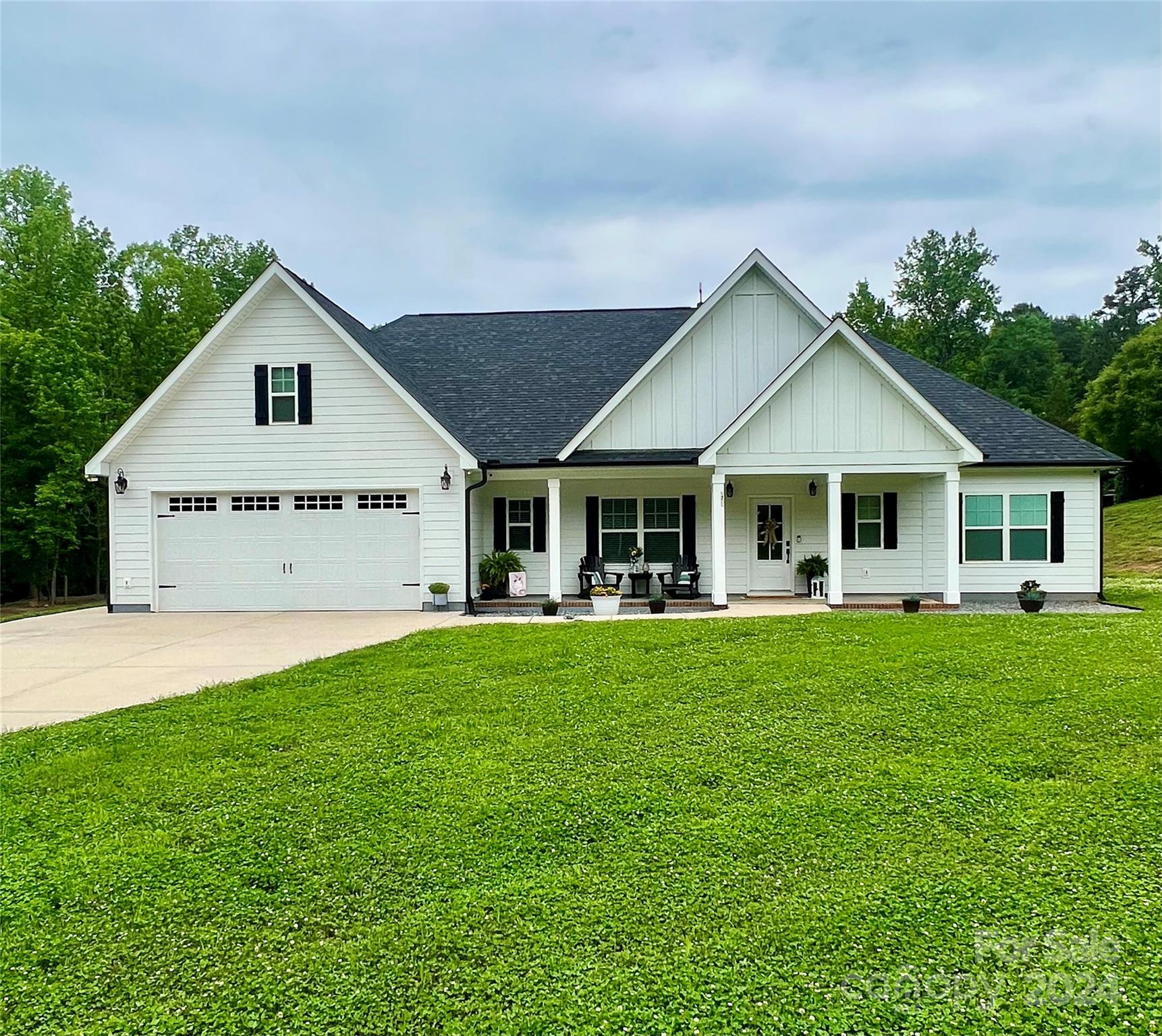 Enjoy the perfect blend of country living and city convenience in this spacious 3-bedroom, 2 ½-bath home. The split bedroom plan and open concept layout w/vaulted ceilings provide a modern living feel. This home features a large walk-in pantry, drop zone, recessed lighting, and flex space. The kitchen's large island is ideal for casual dining and entertaining. Primary bath includes a massive walk-in closet, separate vanities, and a tiled walk-in shower. Night Owl hard wired cameras will convey. Both the covered front and back porches offer relaxing outdoor spaces, while the large 30 x 50 metal building with separate meter/RV hookup/water is perfect for hobbies or storage. The parcel totals 2.36 deeded acres on a dead-end road with a tranquil creek. Despite its serene setting, this home is minutes from I-85 and close to restaurants, recreation, etc. making it a convenient and desirable location. So many valuable details and not enough space to list them all! Schedule your showing today!