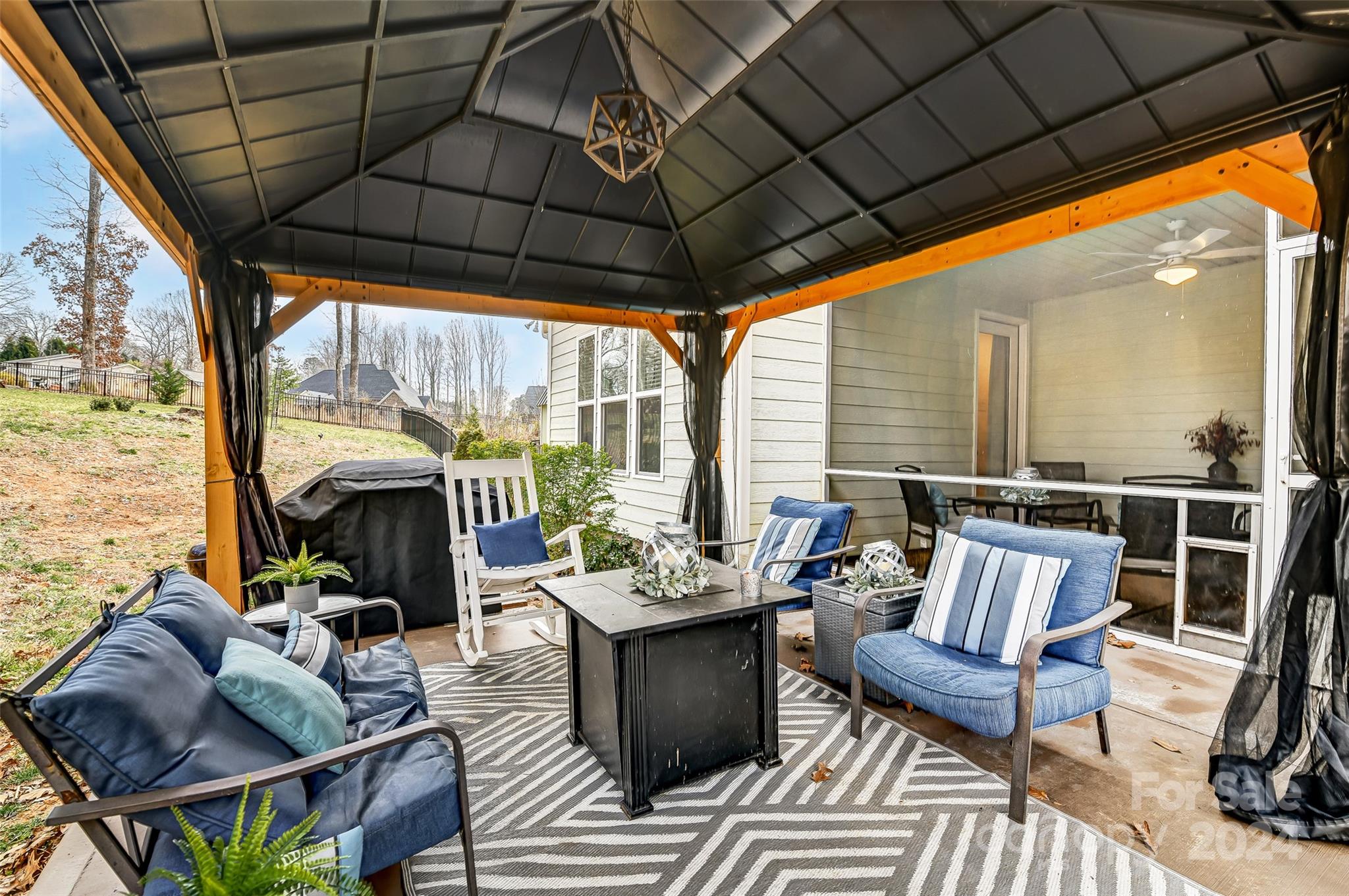 Discover unparalleled value with this stunning home! Nestled on 3/4 of an acre without HOA restrictions, this rare gem offers 4 bed, 3 bath, and nearly 3,000 sq ft of living space. The main floor showcases premium features including wide LVP flooring, quartz countertops, Bosch SS appliances, and stylish glazed subway tile in the kitchen. The expansive primary suite boasts a luxurious walk-in shower, complemented by a spacious guest suite. Upstairs, enjoy a large loft, two sizable bedrooms connected by a Jack & Jill bathroom, and a walk-in attic offering ample storage. Embrace outdoor living with a screened-in porch, patio, and an expansive private yard bordered by a tranquil stream. Gather around the oversized fire pit for memorable evenings with family and friends. Perfectly located near shops, dining options, and top-rated schools, with Gaston Country Club just next door, this home offers convenience and luxury.