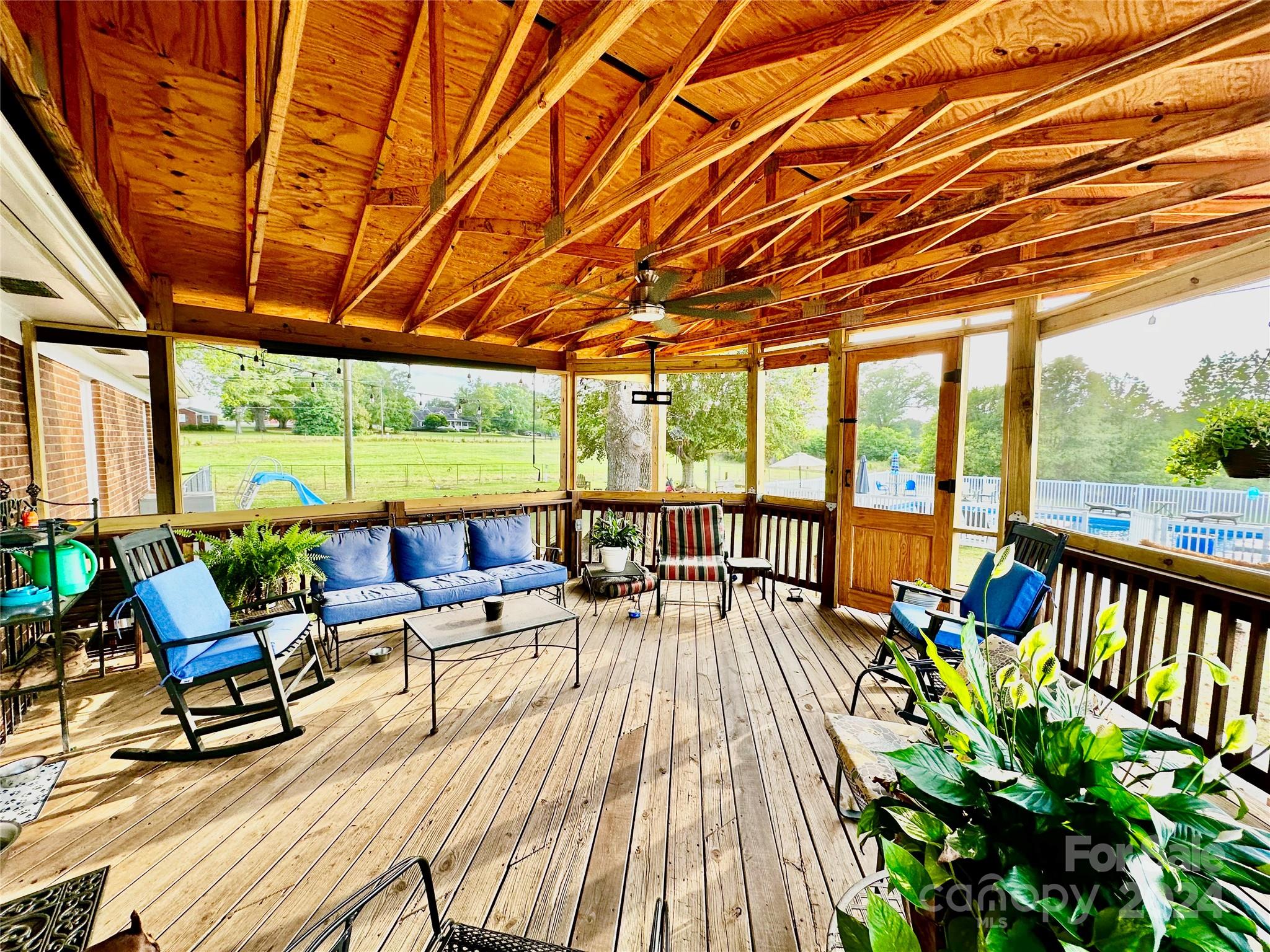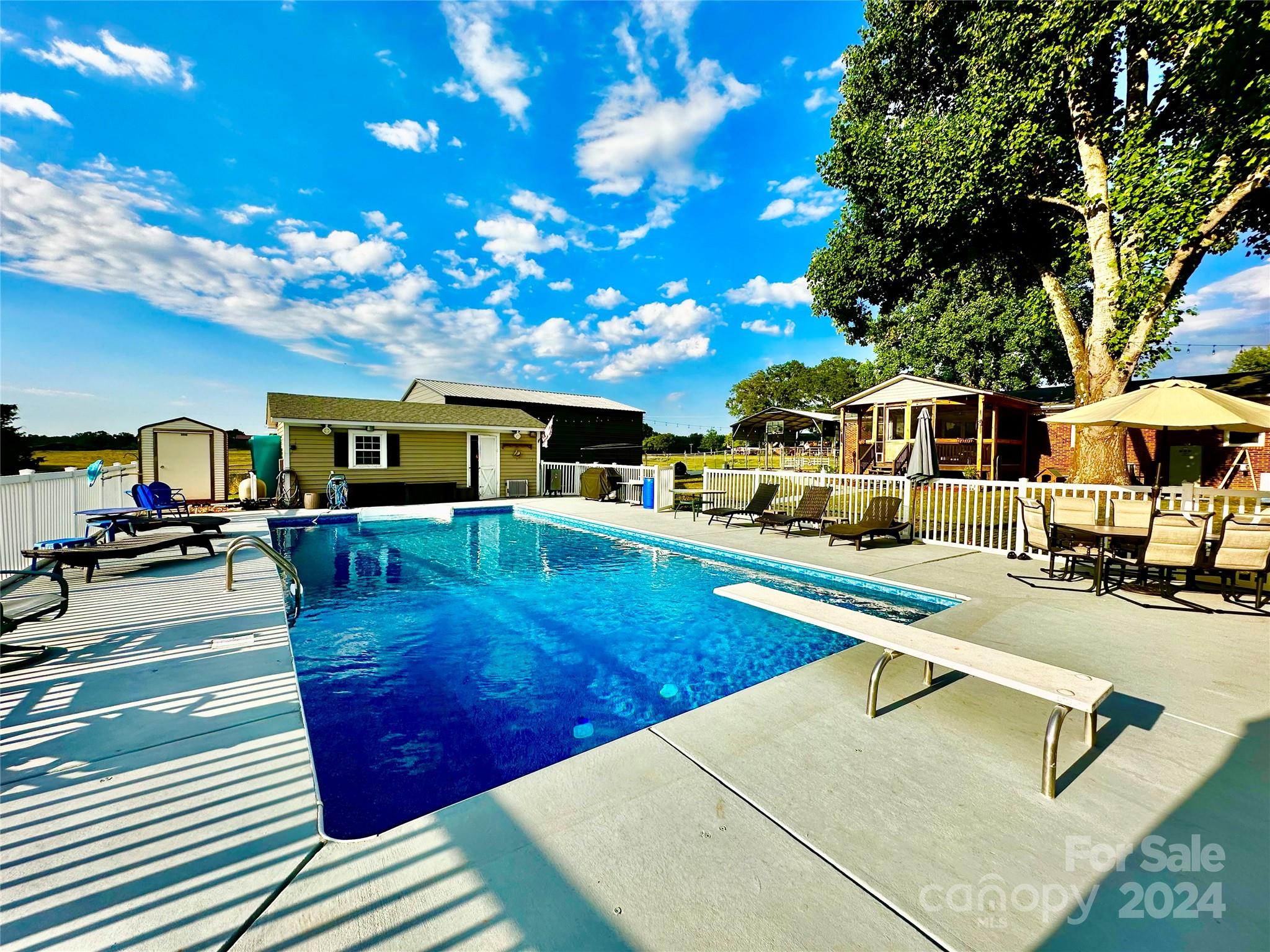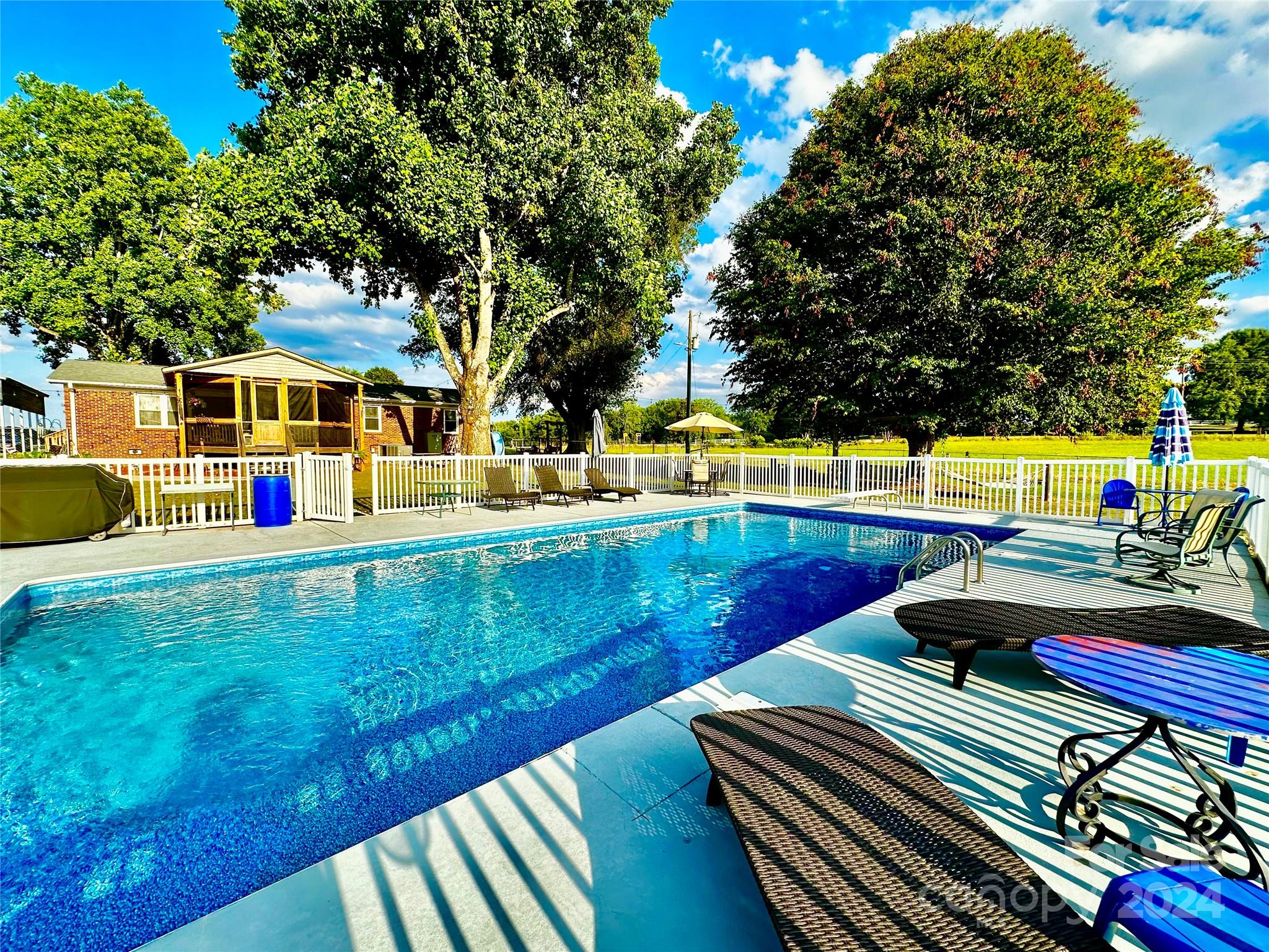 Wow what a gorgeous setting and setup! Welcome to your little slice of heaven! This property has everything EXCEPT an HOA or restrictions! As you enter the new kitchen, love the custom crafted maple cabinets finished with a rustic matte stain and beautiful granite tops, tile backsplash and LVP flooring. Kitchen opens to the living area with gas log fireplace and glass doors that open to the new screened porch. Feast your eyes on the welcoming site of the 20x40 ten foot deep salt water pool and see that it has a new liner and a top-of-the-line new pump that can be controlled from your phone. You also have a convenient pool house and surrounding concrete patio and sidewalks. Two years ago, the concrete parking pad was expanded to fit 6 cars including a 2 car carport along with a 1080 sq ft metal shop with textured concrete floor. The roof was replaced 1 year ago. The gas HVAC and water heater were replaced 4 years ago. Other extras are a water filtration system and surround sound stereo.