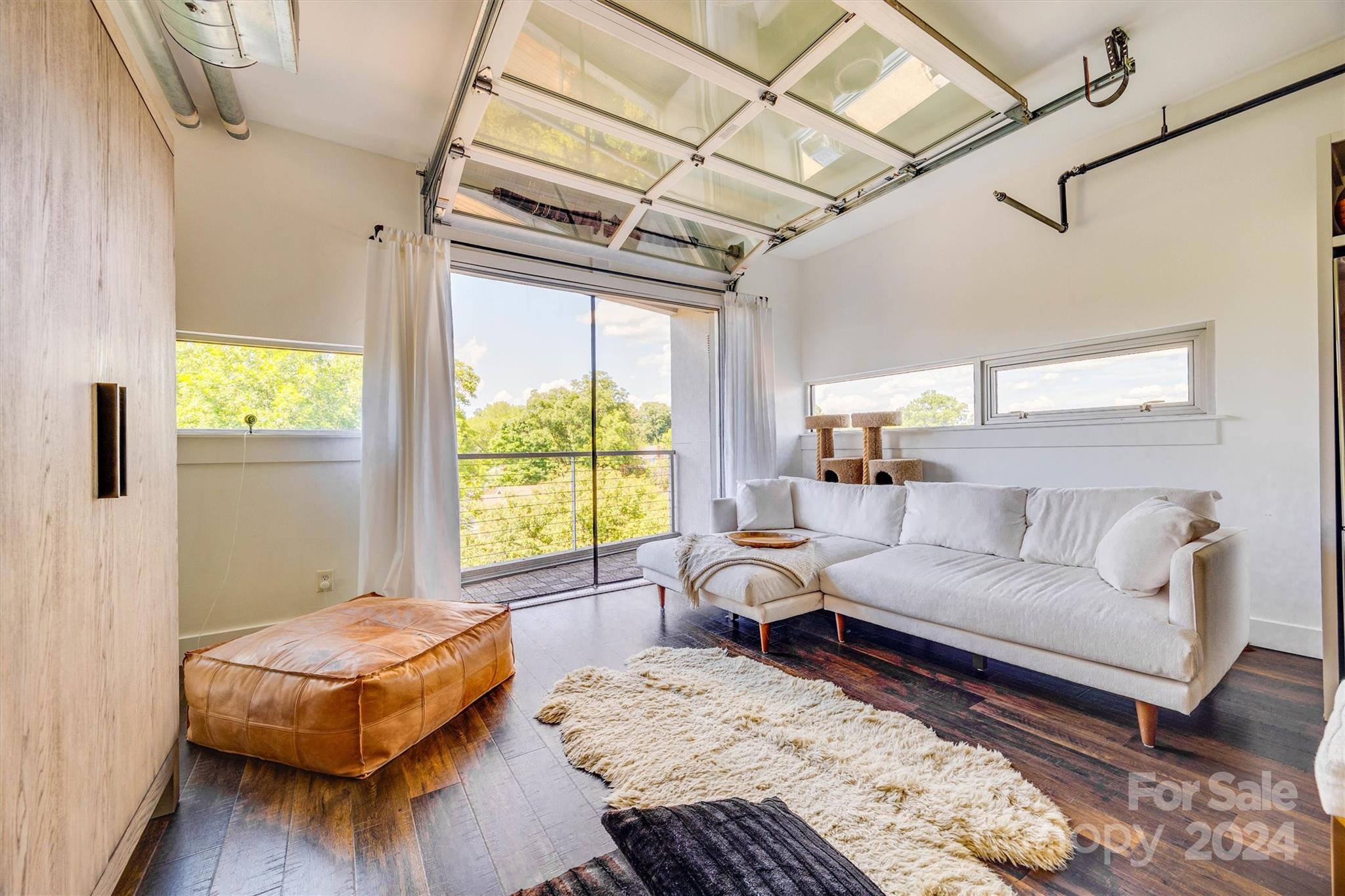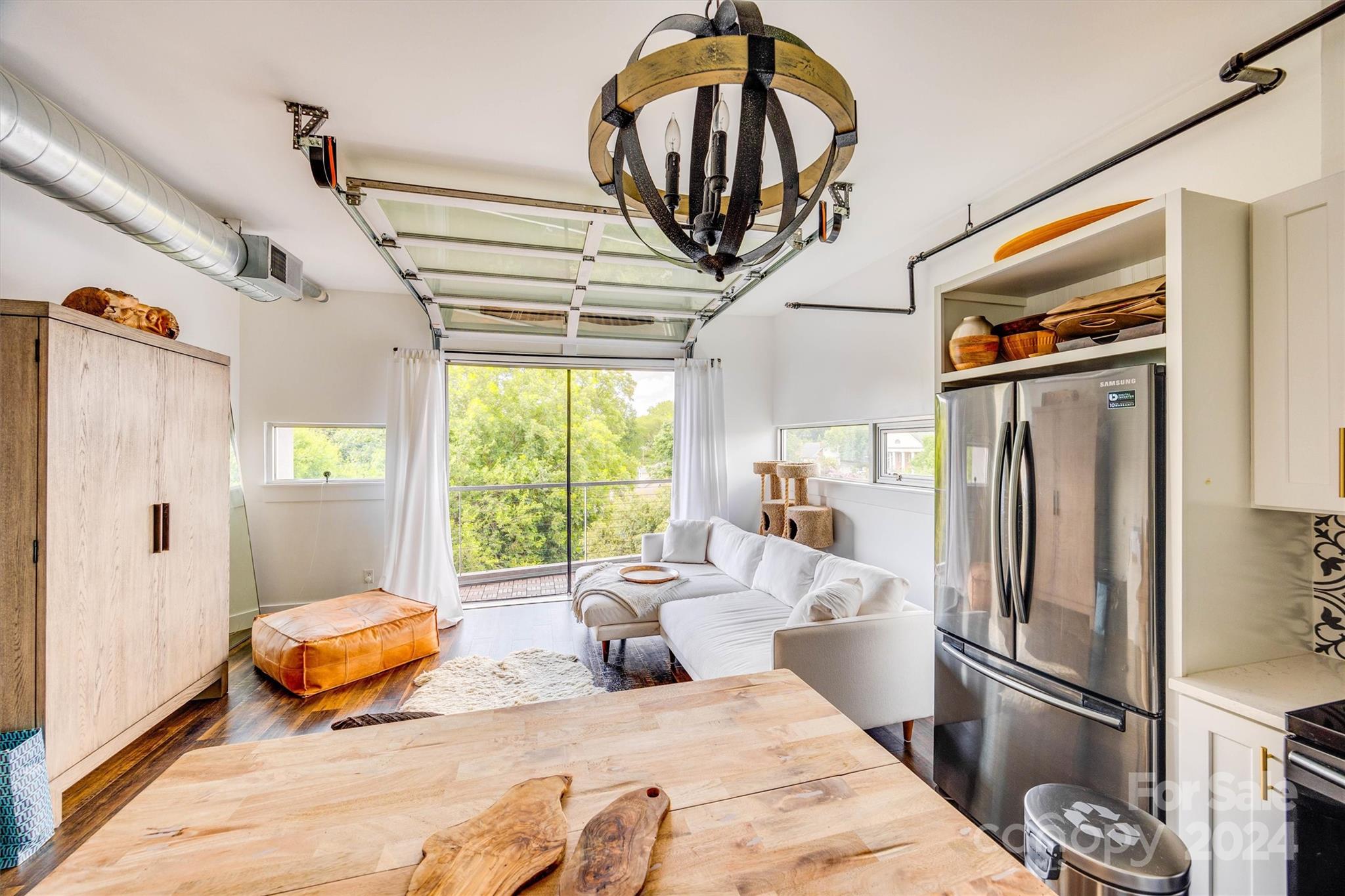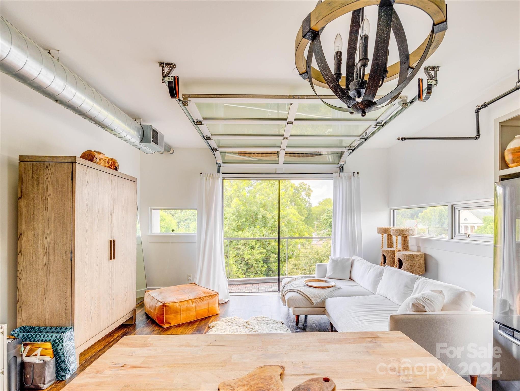 Discover this stunning corner-unit loft with an open floorplan on the top floor of Central 27, situated in the heart of Plaza Midwood. This bright and airy unit offers a unique living experience with 13 foot ceilings and a garage door that opens to a balcony off the kitchen. The balcony is complete with a retractable screen for a seamless indoor/outdoor feel and ideal for entertaining or relaxing. The beautifully designed and updated kitchen features quartz countertops and stainless steel appliances. The unit also includes a custom barn door, custom closet systems, and a tankless water heater. HVAC updated in 2022 and the seller has a service plan for routine touch-ups. Just blocks from the best of Plaza Midwood - groceries, restaurants and nightlife are all within a mile! Don't miss out on this rare opportunity to experience the best of city living in one of Charlotte's most sought after neighborhoods!