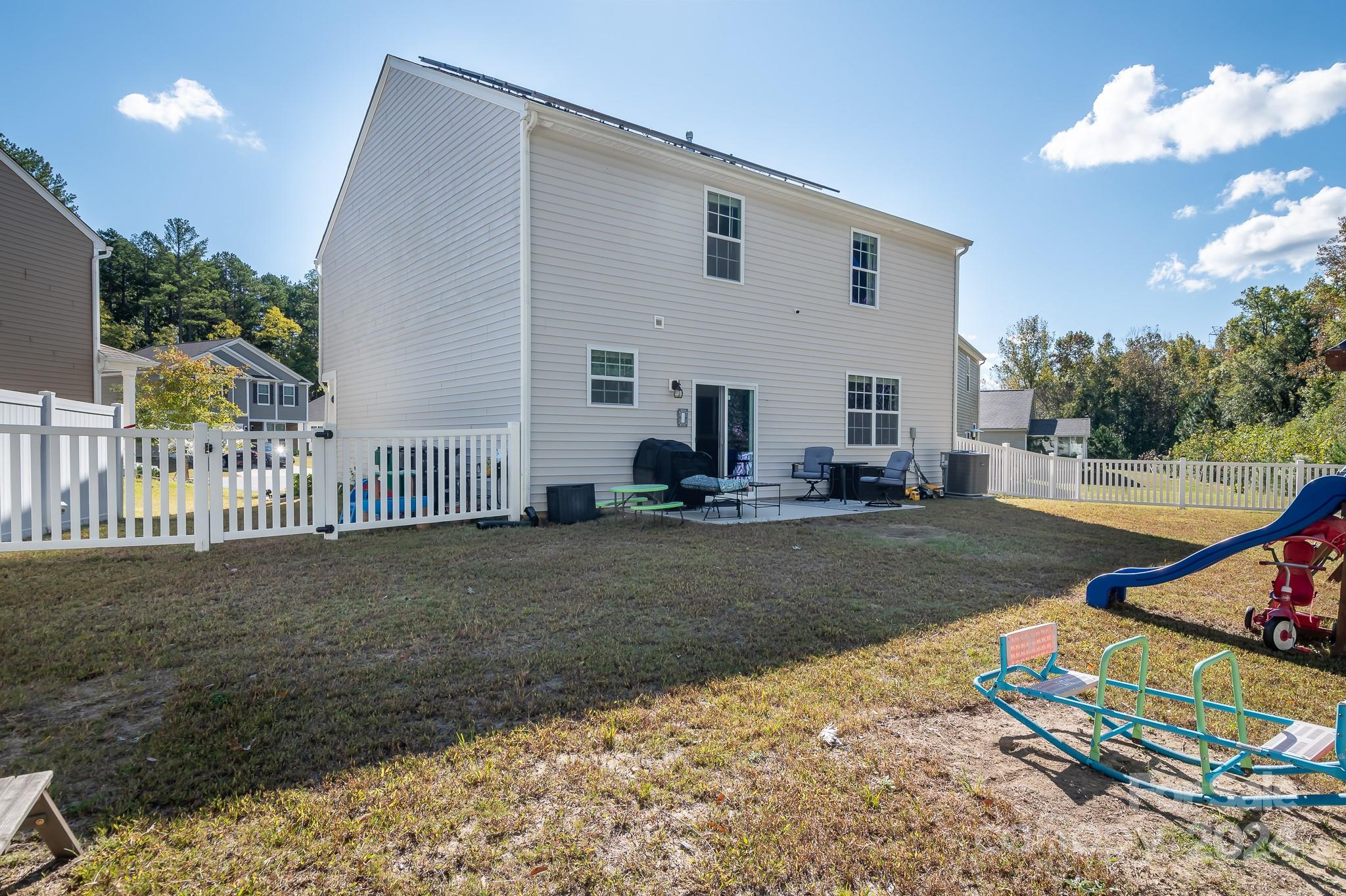 Welcome Home to this lovely open concept beauty featuring a stunning kitchen w/ white shaker style cabinets, granite countertops, a gas range, & a gorgeous tile backsplash. The living room overlooks the private, tree-lined, fenced backyard & natural light pours in. Upstairs, you'll find the spacious primary bedroom w/ vaulted ceilings, perfect for unwinding after a long day. All bedrooms w/ walk-in closets-no shortage of storage here! This eco-friendly gem also embodies sustainability w/ its SOLAR PANELS, ensuring energy efficiency & lower bills. The location is unbeatable offering easy access to Uptown, the CLT Airport & Whitewater Center. It's nestled near Riverbend Village & Mountain Island Lake where you’ll have quick access to nature trails, fishing, & breathtaking views. Better than new w/ updates galore. Smart Features include doorbell camera, smart thermostats, remote garage opener & security panel. Carpet will be replaced, Washer/Dryer Included! You'll love living here!