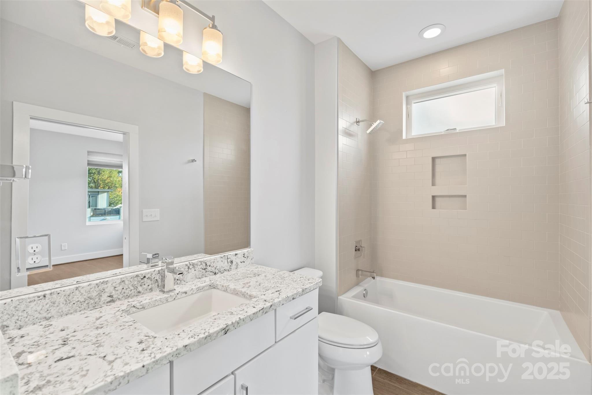 On the main level, you’ll find a versatile spare room that can serve as a guest suite, home office, or playroom. The third-floor primary suite offers a serene retreat with a generous closet and a luxurious en-suite bathroom, complete with dual vanities and large walk-in shower. An additional bedroom on the third level provides flexibility for family or guests.