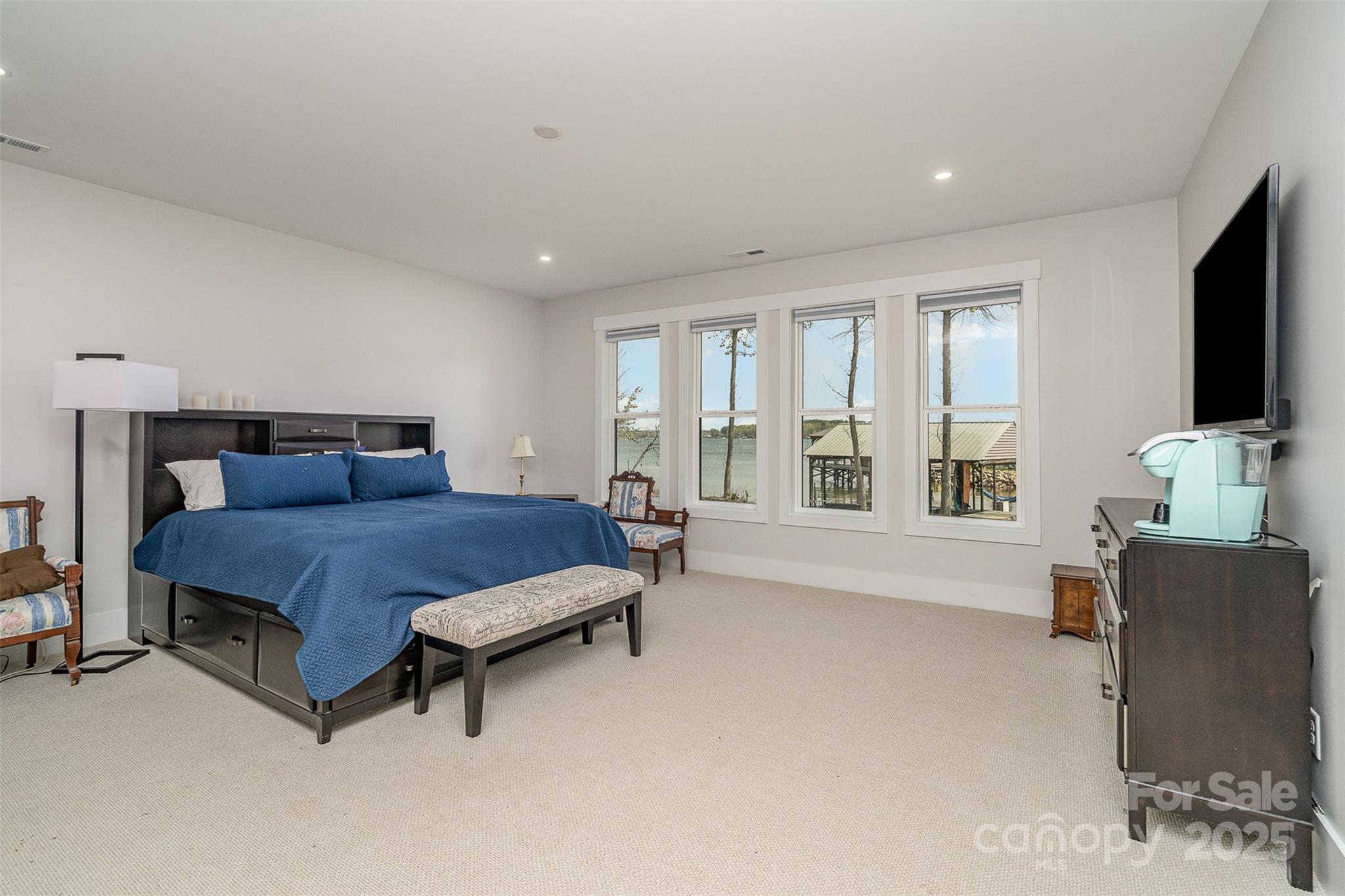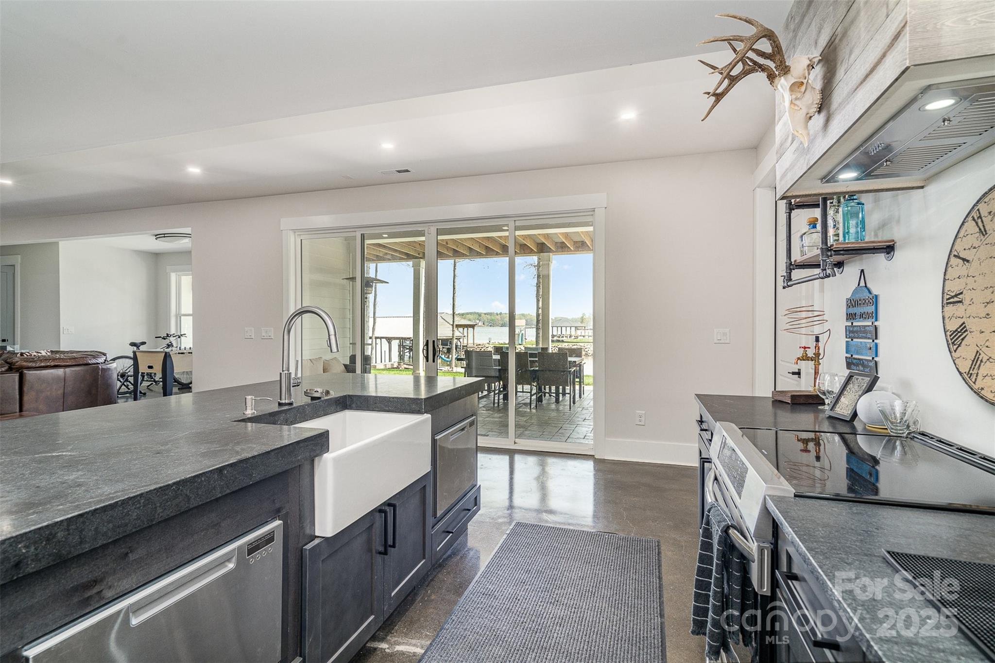 Discover luxury living at its finest with this breathtaking waterfront ranch home on 1.17 acres. Nestled on a picturesque sandy beach with a private dock on Lake Norman, this property boasts stunning long-range views. The spacious open floor plan features a master suite on the main level, alongside two additional bedrooms, ensuring comfort and privacy. Entertain with ease in the gourmet kitchen with a walk-in pantry, flowing seamlessly into the dining and living areas. The finished basement is an entertainer's dream, complete with a second kitchen/bar, theater room, and additional primary bedroom with an en-suite bath. Enjoy year-round outdoor living with porch heaters and room for a pool. Additional highlights include a bonus room over the garage, EV chargers, and smart home features. No HOA restrictions allowing the property to produce income through short term rental /vacation rentals with proven history, making it a smart investment. SELLER FINANCING AVAILABLE!!!