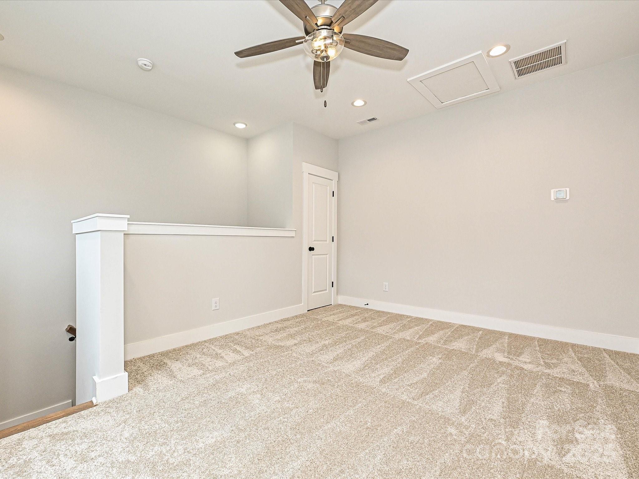 Versatile 4-story townhome, featuring a top floor Rec room & rooftop terrace, plus 1st Flex room w/ powder! The open layout of the 2nd floor makes gatherings a breeze, & Camp North End is just across the street for an easy night out. Kitchen features 42" white painted cabs w/ brushed gold hardware, quartz counters, backsplash, under-cabinet lights, trash pullout, pantry cabinet, & GE SS app w/ gas range, plus large undermount SS sink. Full baths include white cabinets, matte black hardware, quartz counters, and tiled floors, with a large tiled shower in the Premier Bath with semi-frameless glass. 3rd floor bedrooms and laundry closet with tiled floor. LVP floors are throughout the first and second floors, plus third floor hallway, with tile in full baths and laundry closet. Oak treads are on the stairs. 52" ceiling fans are in the flex, rec, living and Premier bedroom. 9' ceilings throughout; 1-car garage plus on-street parking is available. Enjoy close proximity to Uptown Charlotte.