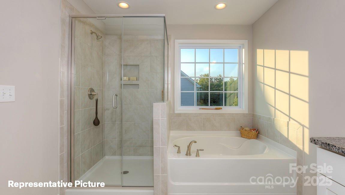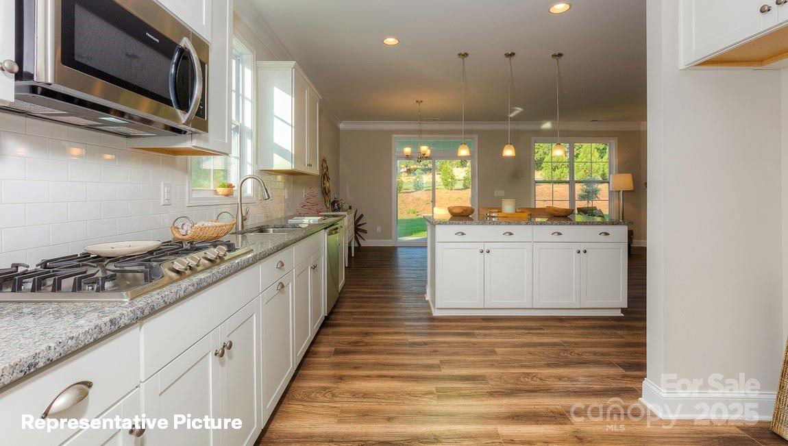 Spacious NEW CONSTRUCTION London plan with covered front porch in our community The Enclave at Falls Cove with tons of upgrades! Open Kitchen with Quartz Countertops, Pantry, Gas Cook-Top, Tile Floors in All Bathrooms, Large Family Room with Gas Logs, TANKLESS hot water heater and heavy trim throughout first floor main areas. A guest bedroom with a full bath also offers the perfect setting for visitors on the main level. Ascend up the staircase to a SPACIOUS primary suite with tray ceiling and luxurious private bathroom with walk-in closet and four additional secondary bedrooms with three full baths round out the upstairs living areas. Minutes from Lake Norman State Park and quaint downtown Troutman, you will never be too far from home with our industry-leading suite of smart Home Is Connected® products, keeping you connected with the people and place you value most.