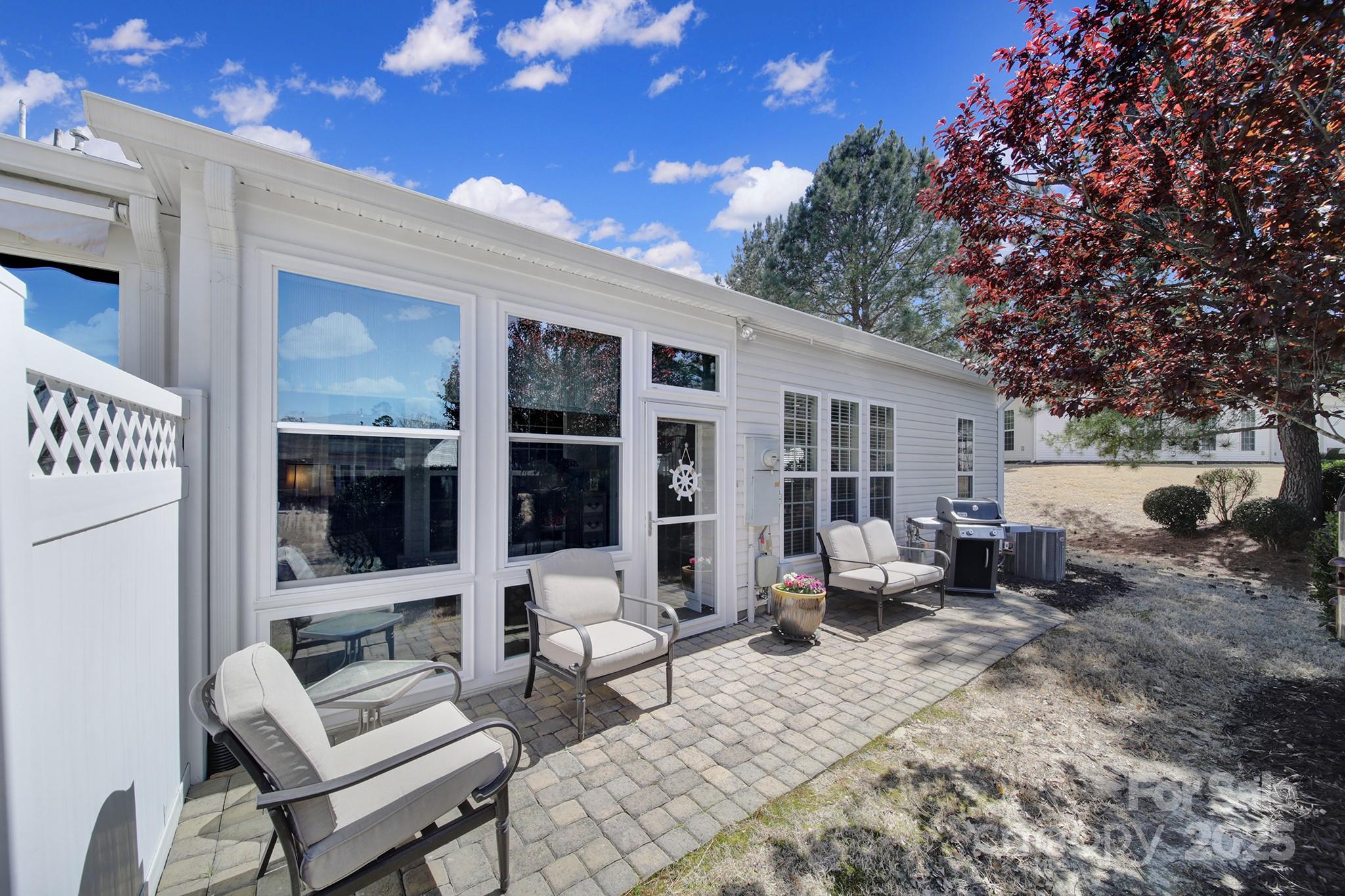 This beautifully maintained Muirfield Villa presents an ideal blend of comfort and convenience. Step inside to find a dedicated office, followed by a bright and airy living room with hardwood floors and abundant natural light. The pass-through kitchen and open dining area flow seamlessly, perfect for entertaining. Relax in the 3-season room, which opens to a quiet patio. The primary suite features a generous ensuite bath and walk-in closet, while a guest bedroom and bath provide comfortable accommodations. A two-car garage adds convenience. Nestled in Sun City Carolina Lakes, residents enjoy access to a golf course, amenity centers, pools, and more.
