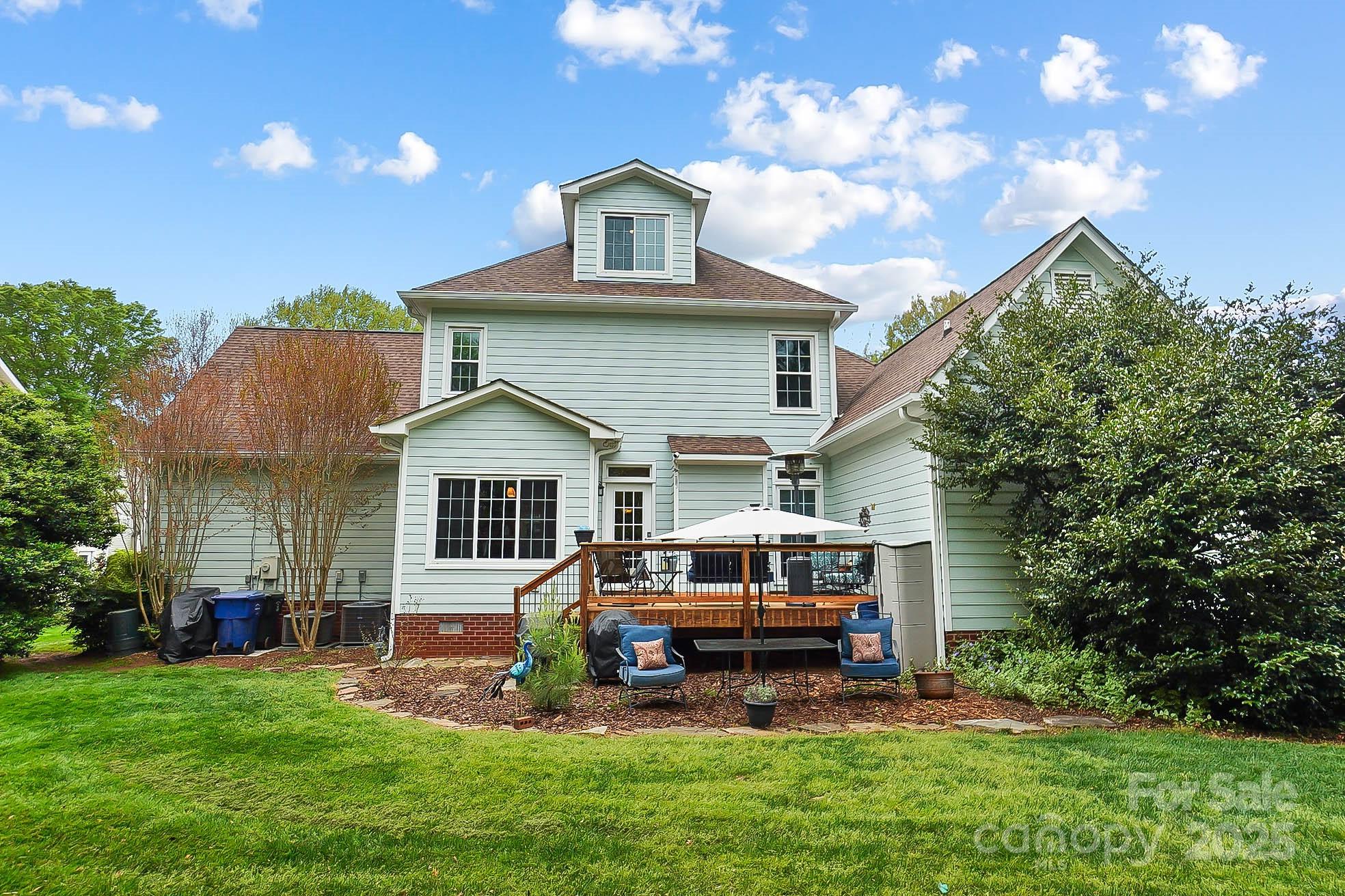 Rare find! Unique, one-of-a-kind, updated home in Hunter Oaks with a primary suite on the main level. Remodeled white kitchen with new cabinetry, quartz countertops, backsplash and new stainless-steel appliances. The main floor also includes a family room, formal dining, sunny breakfast nook, and a flex room ideal for a home office. Updated lighting, fresh paint and recently replaced windows throughout the home. Second floor contains 3 large bedrooms, large bonus/4th bedroom, dual entry bathroom, walk in attic that could be used as expansion space. 3rd level bonus room which makes a very private office space. Outside, enjoy a sunny deck or a shady stone patio on hot days and a private back yard, opening to a small cul-de-sac for added hardscape play area and block parties. For peace of mind, the seller is including a Home Warranty. All of this in the top-rated Rea View and Marvin Ridge school district in the popular Hunter Oaks community with pools, tennis courts & playgrounds. Quick access to I-485, Waverly, Blakeney, and Ballantyne for shopping and medical needs.