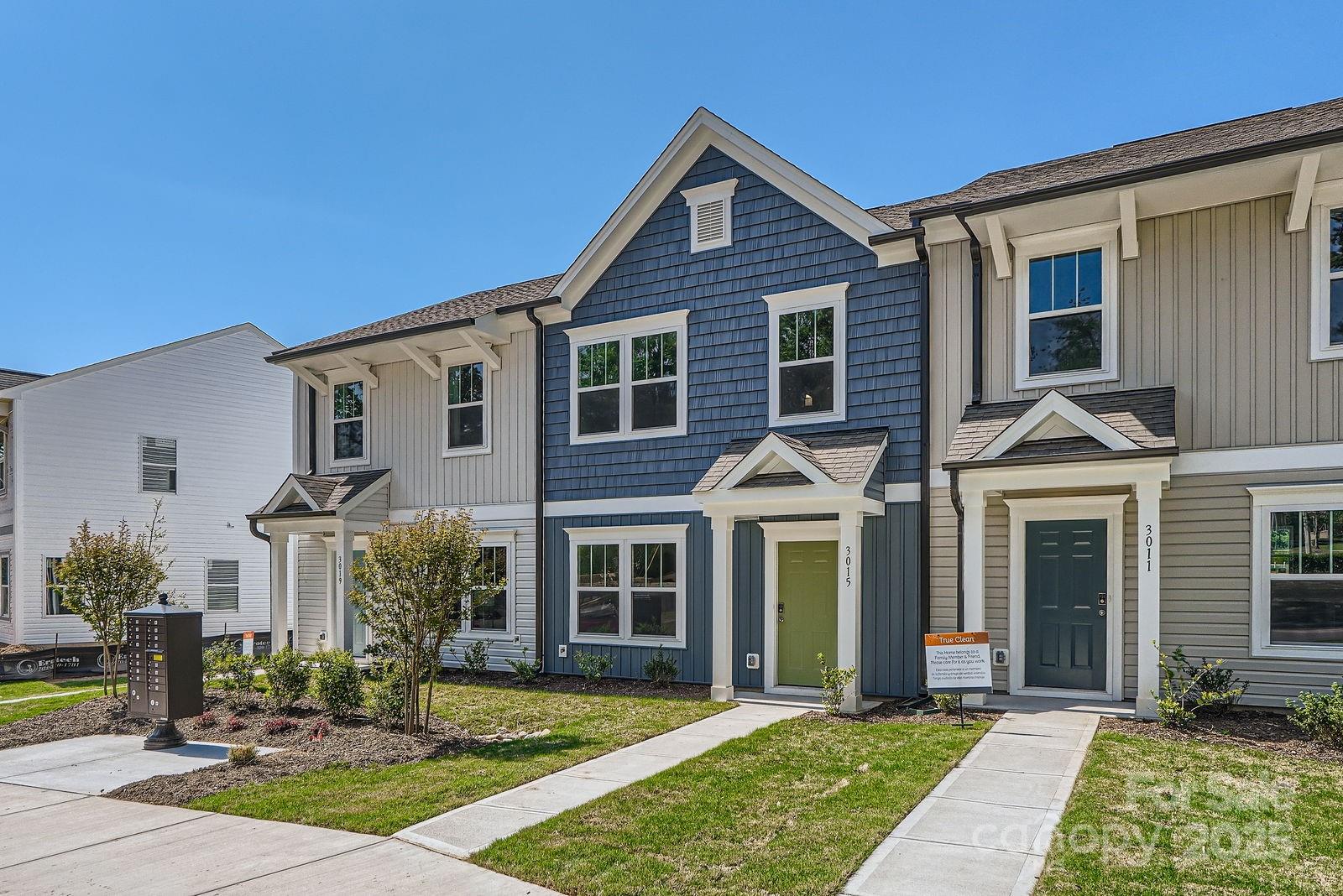The exterior features beautiful blue siding, a pop of green on the front door, and fresh white trim throughout. Plus, all exterior maintenance is covered by the HOA, meaning your home stays presentable year-round.