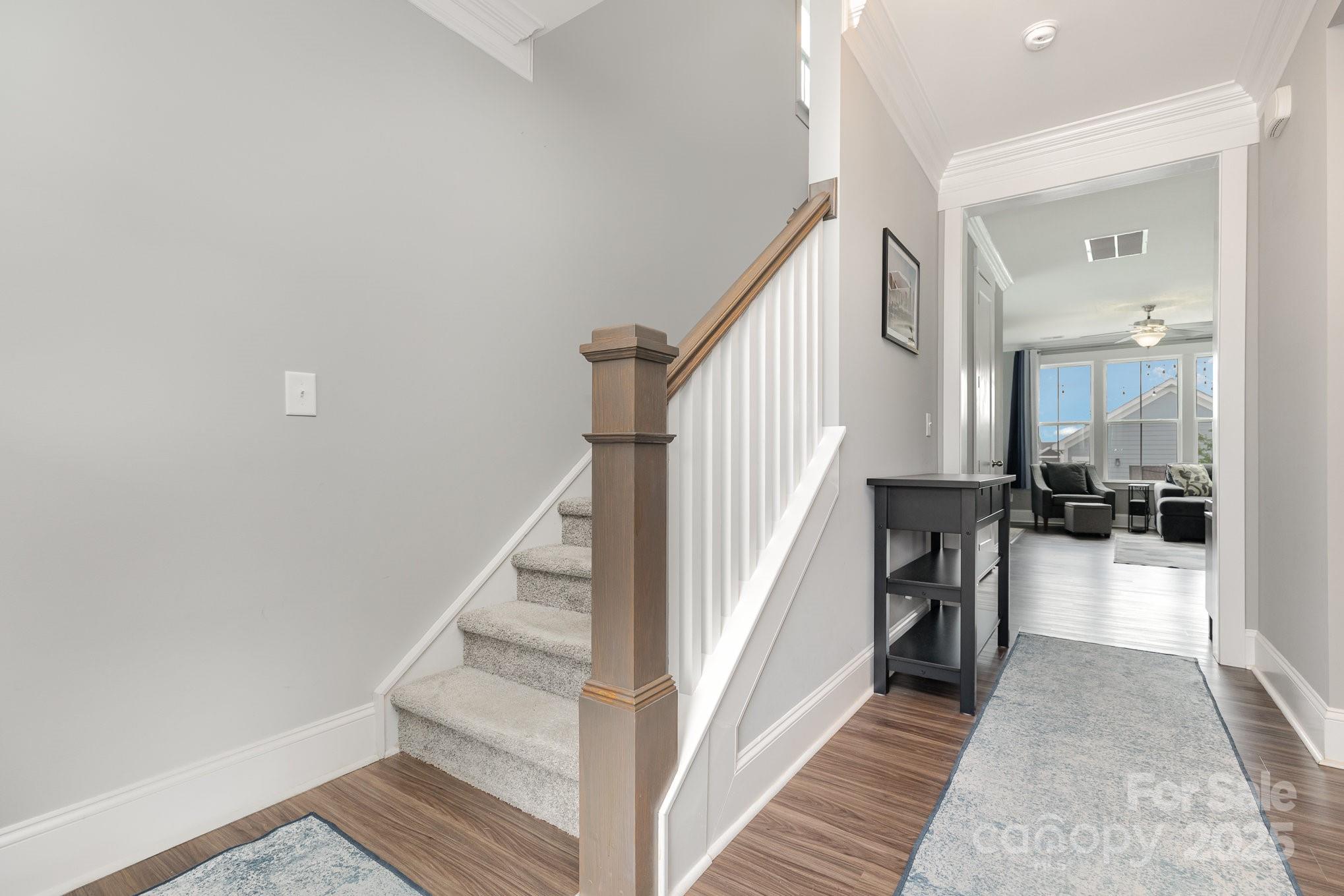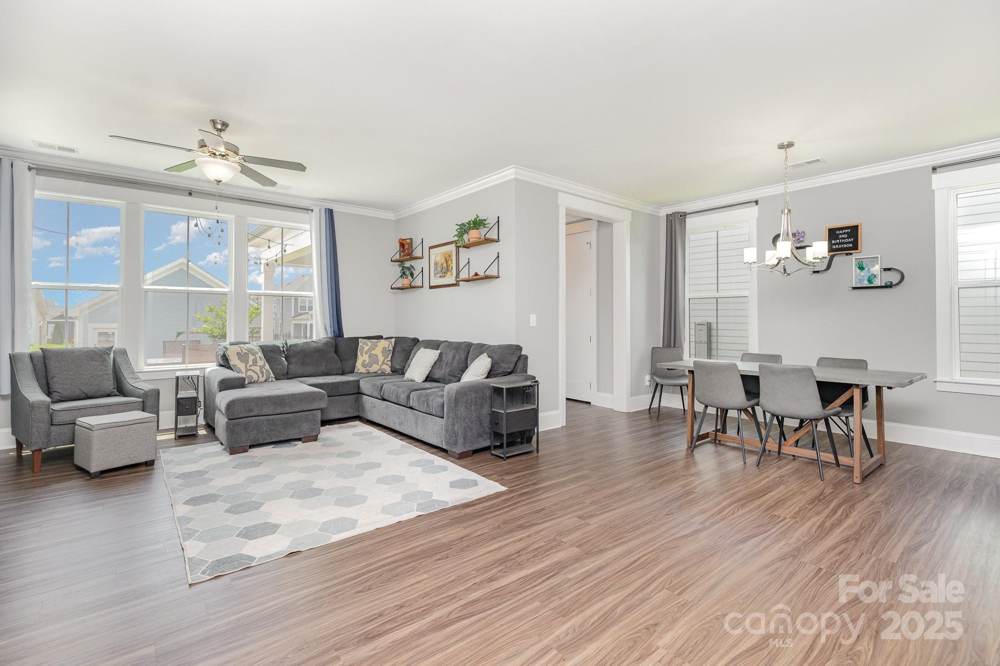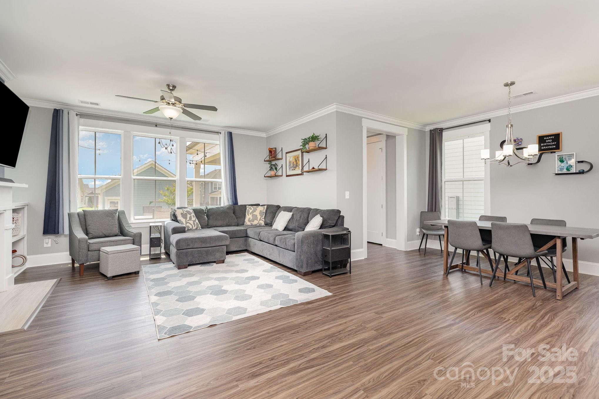 BEST VALUE in RIVERWALK! Nestled in the heart of Rock Hill’s sought-after Riverwalk community, this beautifully designed 3-bedroom, 2.5-bath home perfectly blends comfort, style, and convenience. You’ll love the open-concept main floor, ideal for entertaining or cozy nights in. Custom built-ins around the fireplace. The kitchen features modern finishes, and seamless flow into the living and dining areas. Soaring 9-foot ceilings on both levels enhance the spacious feel. Upstairs, retreat to generously sized bedrooms, all with walk-in closets for maximum storage. Outside, a two-car detached garage offers convenience and curb appeal along with a covered porch and backyard. Enjoy scenic walking and biking trails along the Catawba River, paddle out for a kayak adventure, or relax by the community pool and clubhouse. With easy access to I-77, you're just minutes from Charlotte, Fort Mill, and CLT Airport.