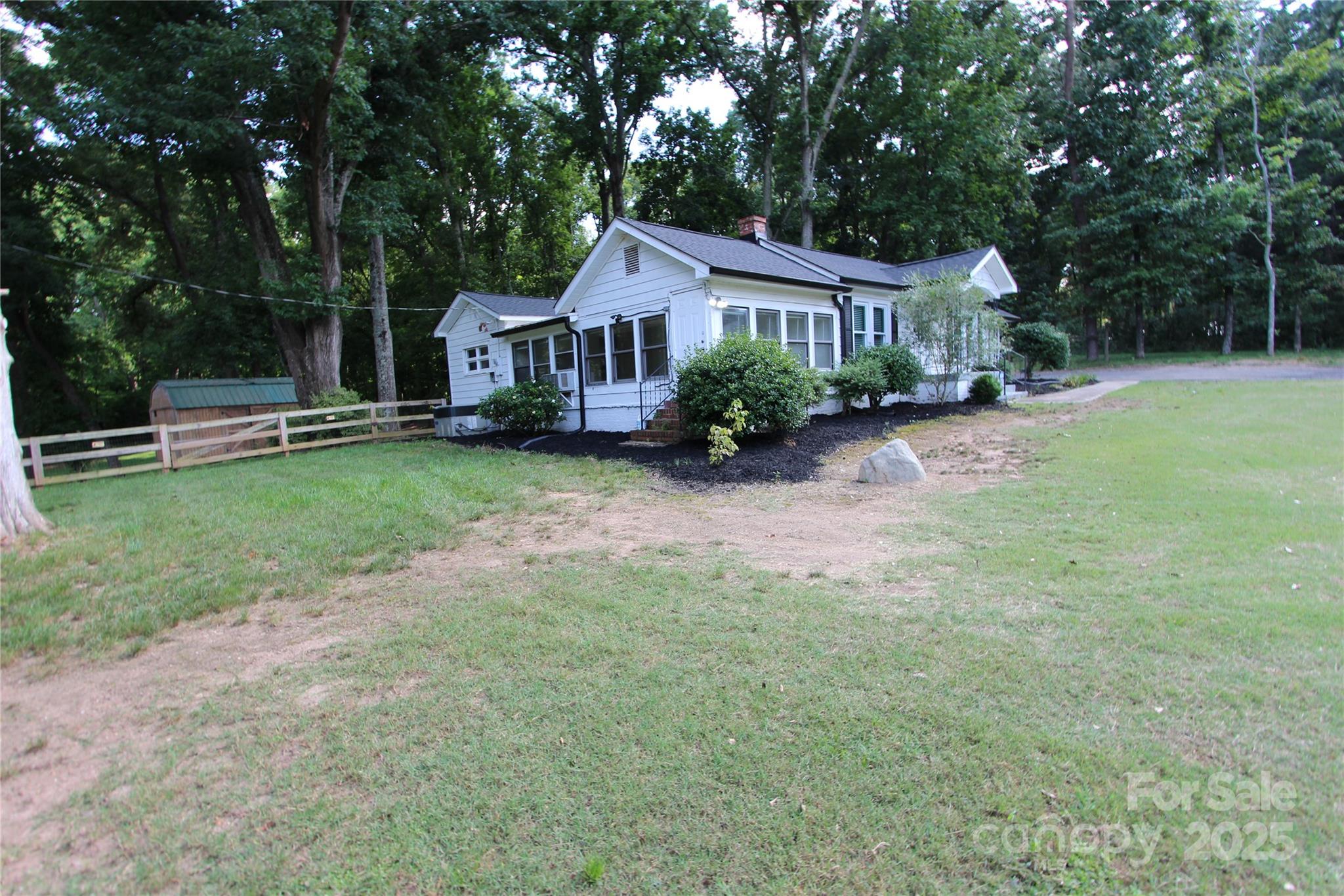 Updated 2BR/1.5BA ranch on 1.38 acres just minutes from town! Kitchen remodel in 2023 features quartz countertops, butcher block island, SS gas range, hood, and sink. Open-concept layout created by removing walls between kitchen and living area (2021). New kitchen floor tile (2021), full bath tile and shower insert (2024), updated half bath with new flooring, vanity, and paint (2022–2023). Refinished hardwoods in 2 rooms (2022). Major updates include new roof and gutters (2024), front windows (2024), septic tank and well pump (2022). Old heaters removed. New fixtures, ceiling fans, and barn door add charm. Backyard cleared (2022), split rail fence installed (2023) to separate front and back yards. Private country feel with convenience to town—move-in ready!