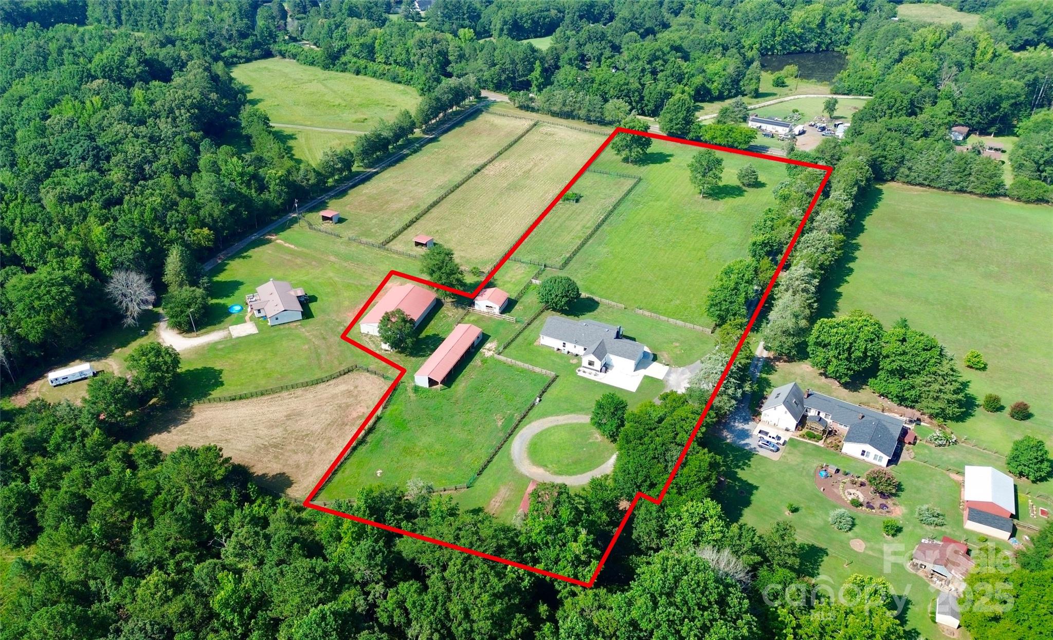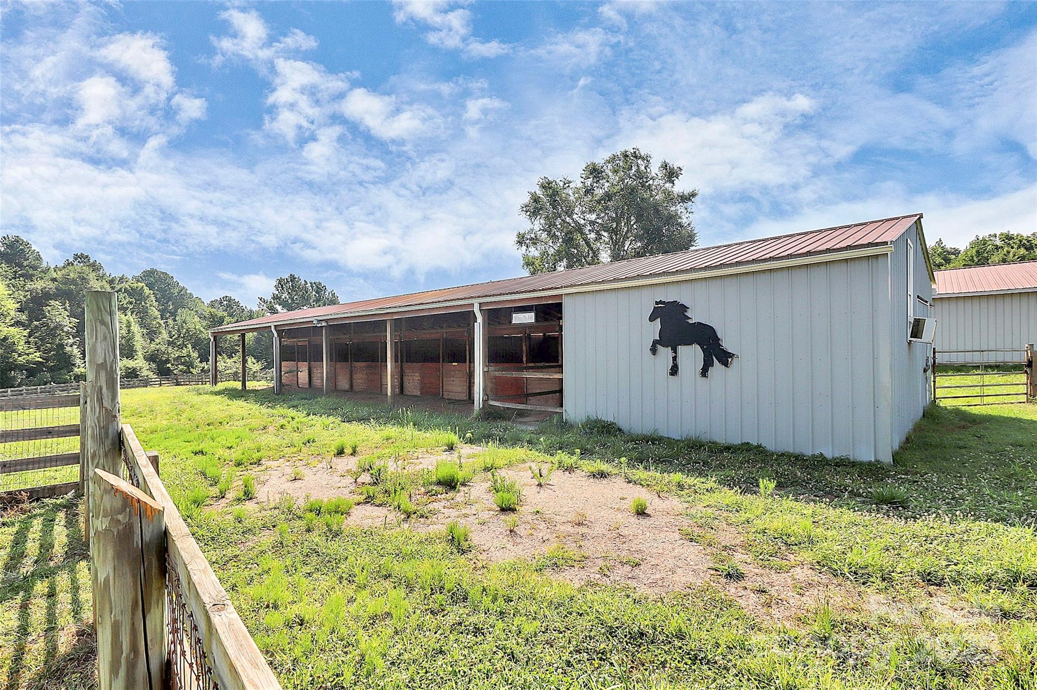 Must See Completely Remodeled Equestrian Ranch on 5.47 Acres! Step into modern farmhouse perfection with this fully renovated 3-Bedroom, 3- Full bath ranch nestled on 5.47 acres of land in Rock Hill, SC only mins from I77. This property is perfect for horses with 3 different style of barns with a combined total of 13 STABLES, 2 TACK rooms, and 2 STORAGE rooms. Beautiful EUROPEAN STYLE horse stalls in largest barn. There are multiple fenced pastures and paddocks and a circular corral included. The home boasts an inviting open floor plan with beautiful hardwood floors and a show-stopping backlit stone fireplace as the focal point of the living space. This is a true piece of ART!! The brand-new kitchen includes a CUSTOM HIDDEN PANTRY, SUPERSIZED ISLAND with Beautiful Granite Counter tops throughout! The Kitchen and baths blend LUXURY finishes with TIMELESS style!!! This is the ideal property for EQUESTRIAN LOVERS!! TURNKEY, STYLISH, and SERENE—this one checks every box!