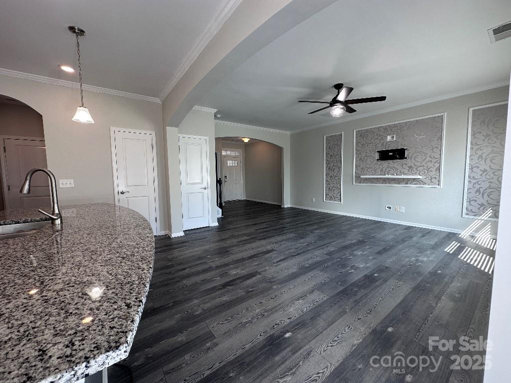 Freshly painted. Open floor-plan. Spacious entryway. Curved archways. Lots of windows and natural light. Decorative trim.