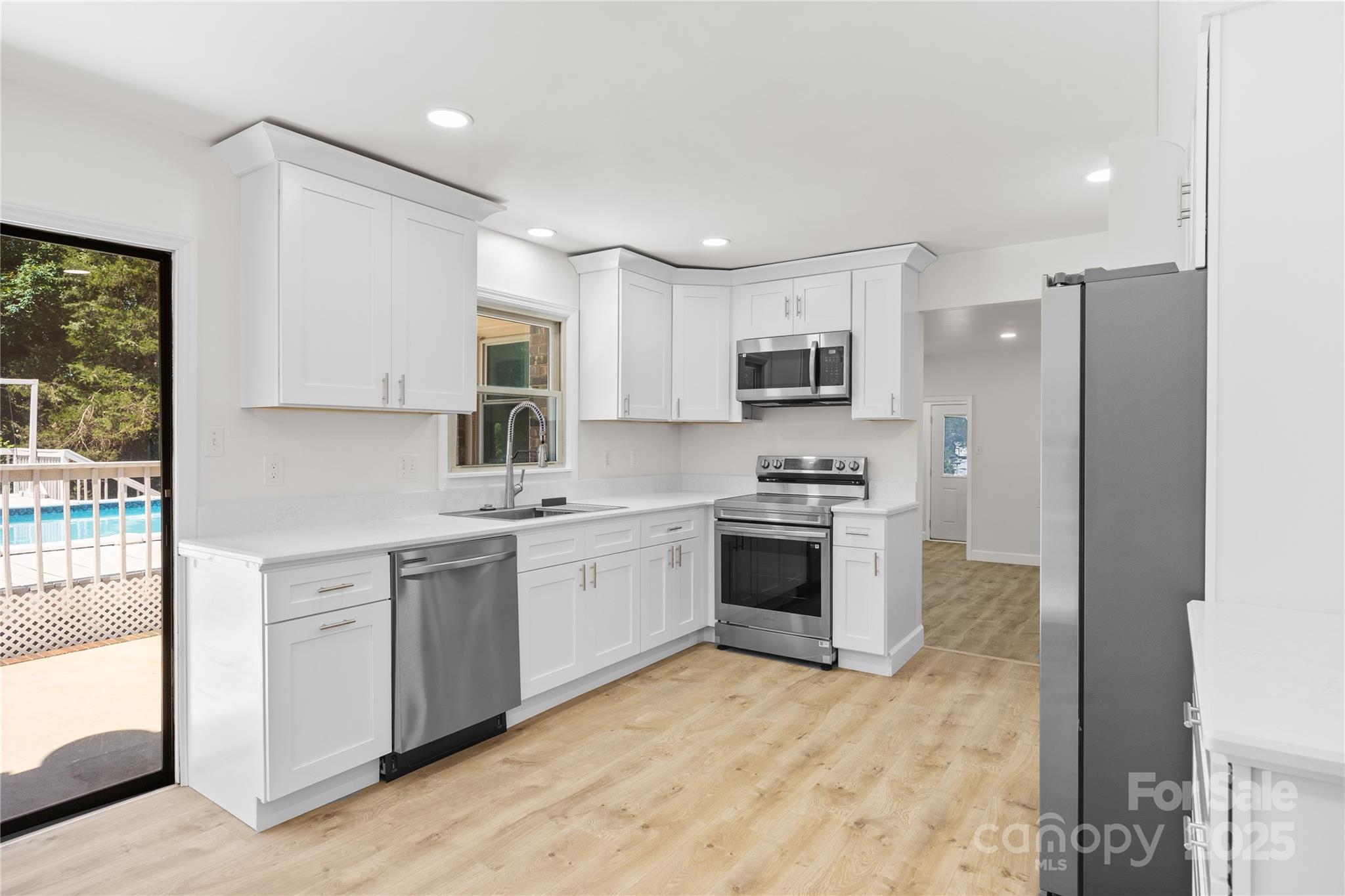 Buyer incentives available — ask your agent for details! Remodeled beauty in Mooresville with NO HOA and Lake Norman access! This spacious 4-bedroom, 2.5-bath home is located in a desirable school district and offers the perfect blend of comfort and lifestyle. Step inside to discover new floors, beautifully updated bathrooms, LED lighting and a fully remodeled kitchen with modern finishes. The home offers both a cozy living room w/fireplace and a separate den, giving you flexible living spaces for work, play, or entertaining. Outside, your own private backyard oasis awaits with a sparkling above ground pool and surrounding deck—perfect for summer fun and relaxation. For just $75/year, enjoy access to Lake Norman with community access to a boat ramp\day dock, pavilion, and game court! Don't miss this rare find—updated, move-in ready, with no HOA, close to shopping, waterfront dining and lake access perks!