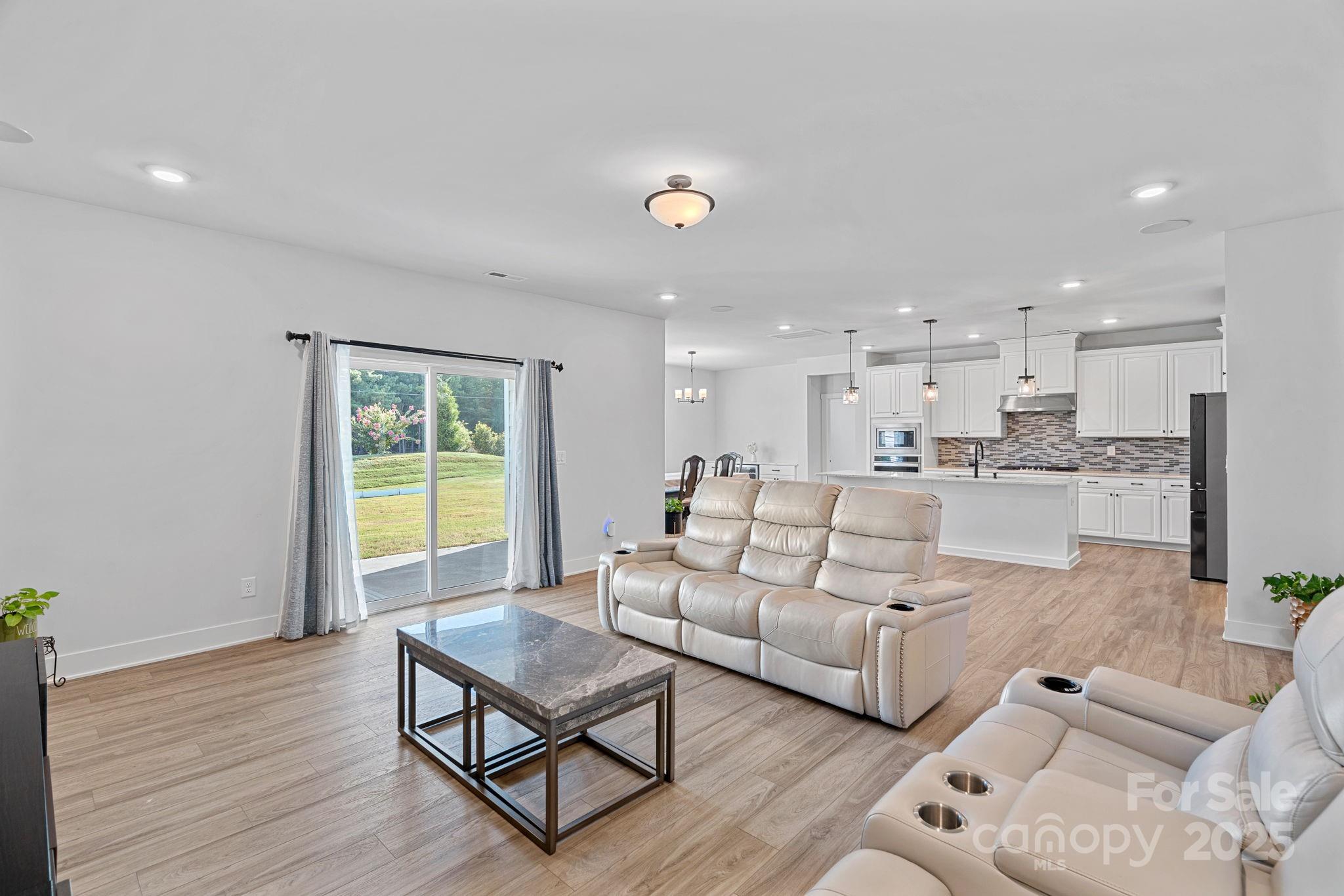 This beautifully crafted home offers a versatile main-level in-law suite—perfect for guests or multigenerational living. The elegant primary bedroom features a tray ceiling, dual walk-in closets, and a spa-like en-suite with a soaking tub and separate shower. The chef’s kitchen is a true centerpiece, boasting stainless steel appliances, an oversized island, and a built-in wine cooler—ideal for entertaining. The laundry room is conveniently located on the second floor for added functionality. Enjoy movie nights with the built-in 5.1 surround sound system, which conveys with the home. Step out back to a covered patio—perfect for relaxing or hosting guests. Located just minutes from Ballantyne, this home seamlessly blends comfort, style, and convenience.