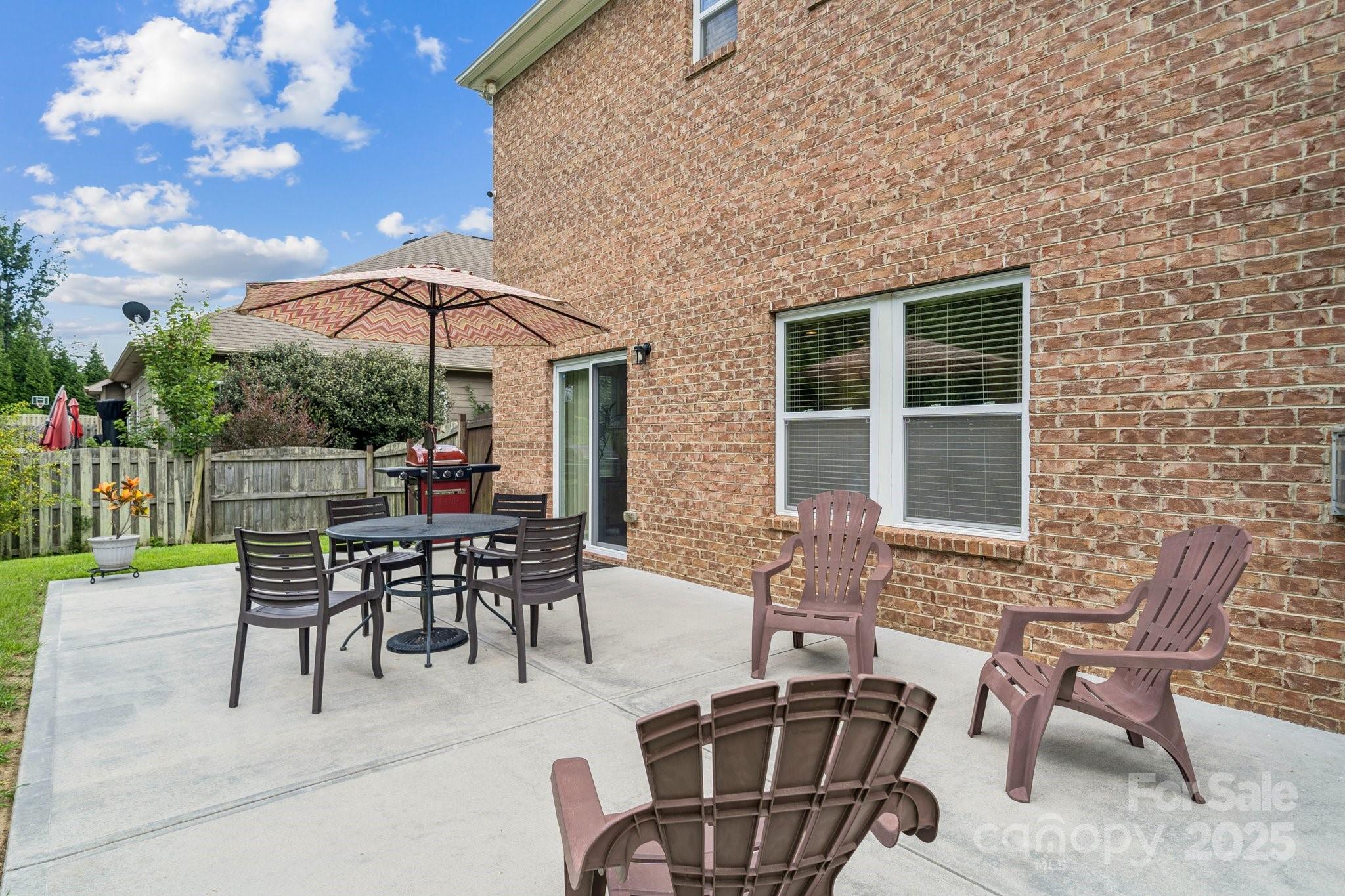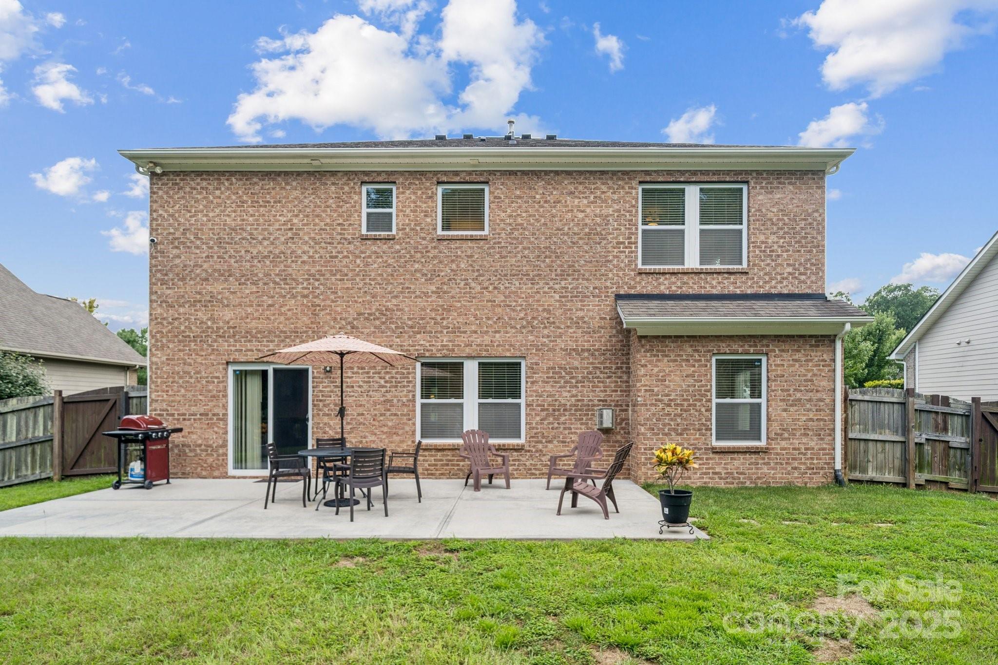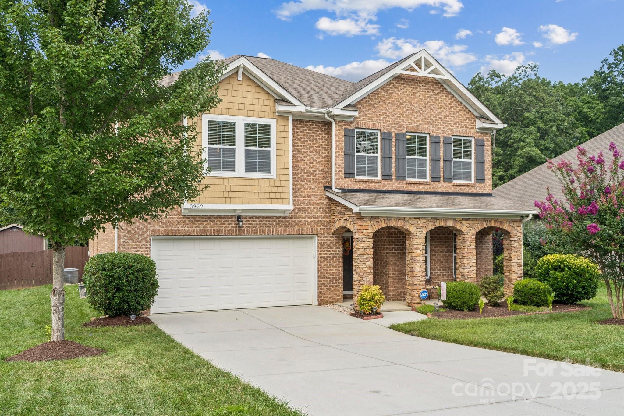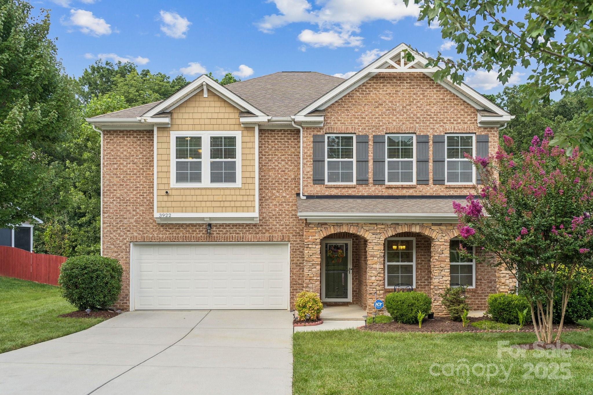 Brick two-story in Mint Hill with 5 bedrooms, 4 full baths, and over 3,100 sq ft. The main level includes a dining room with tray ceiling, private study, and a guest suite. The kitchen shines with granite counters, island seating, 42” cabinets, backsplash, gas stove, and an eat-in area with sliding doors to a double concrete patio. Hardwood floors, crown molding, 5” baseboards, and a gas fireplace add warmth and charm. Upstairs, a large loft/bonus room anchors the additional bedrooms, including a spacious primary suite with tray ceiling, dual vanity, separate tub/shower, walk-in closet, and updated lighting. The fenced backyard features a shed, extended patio, and fruit trees—apple, peach, pear, and pomegranate. Community perks include nearby golf membership at The Pine Lake Country Club just two miles away, with shops, breweries, the farmers market, and the upcoming 91-acre Ezell Park all close by, plus easy access to Uptown Charlotte.