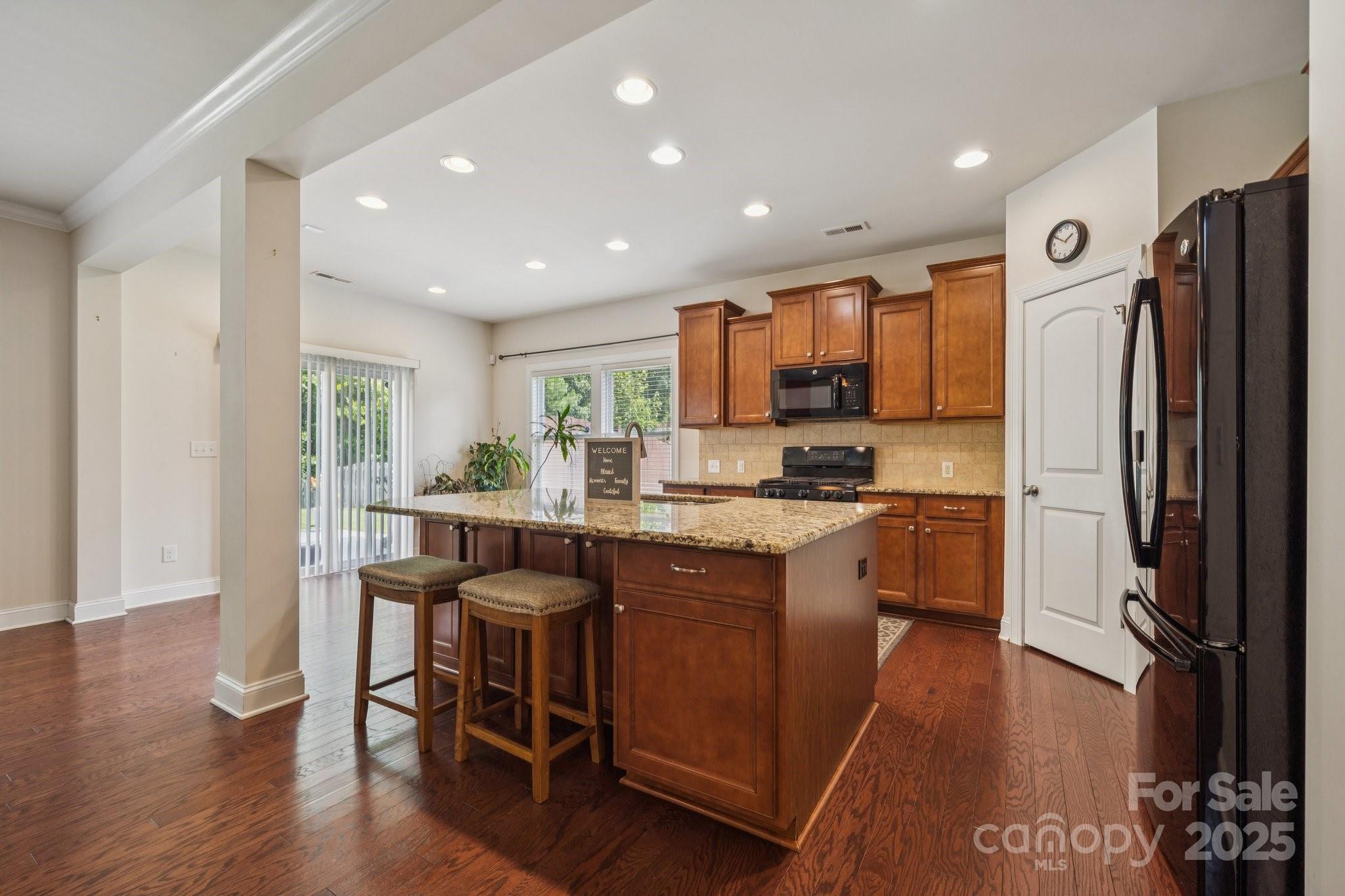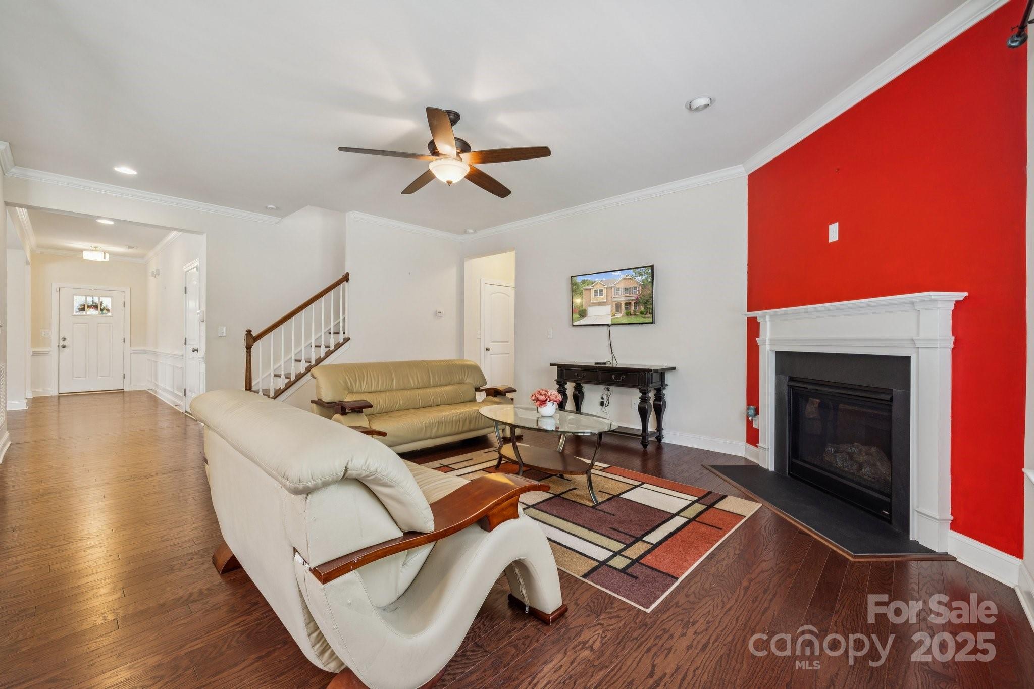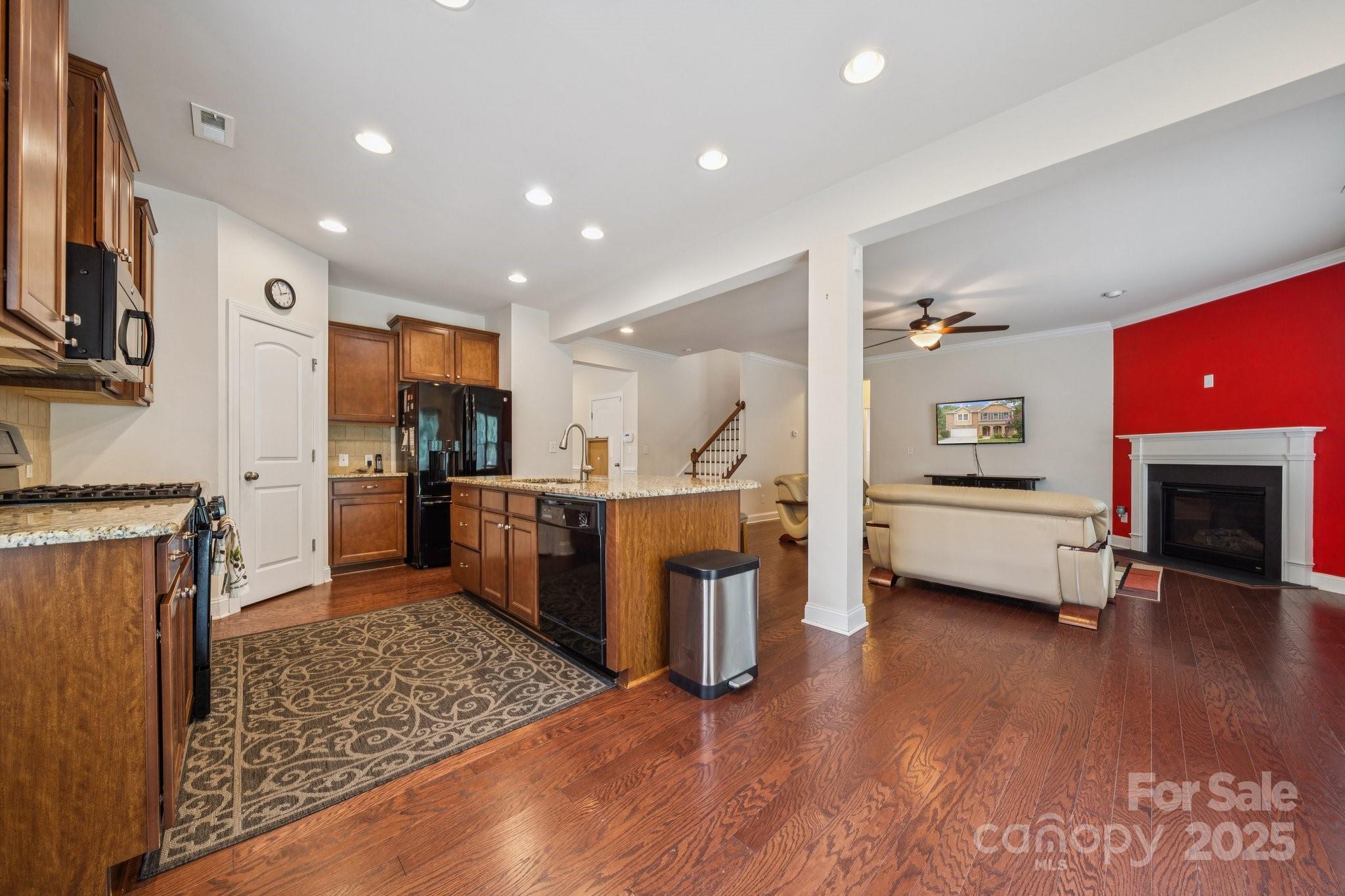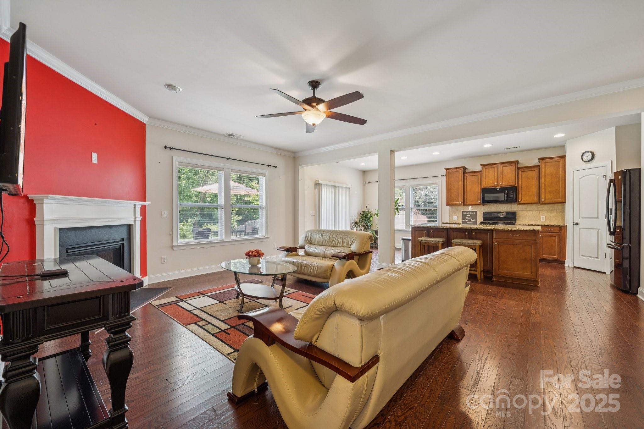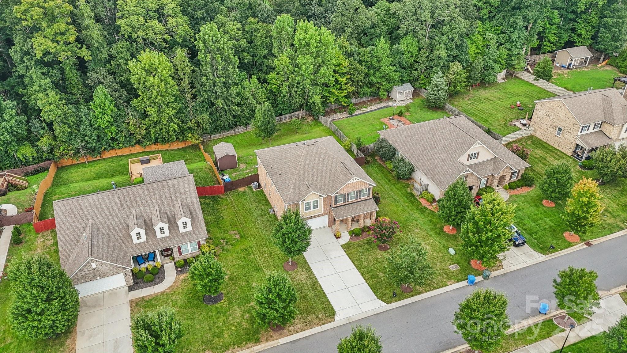Brick two-story in Mint Hill with 5 bedrooms, 4 full baths, and over 3,100 sq ft. The main level includes a dining room with tray ceiling, private study, and a guest suite. The kitchen shines with granite counters, island seating, 42” cabinets, backsplash, gas stove, and an eat-in area with sliding doors to a double concrete patio. Hardwood floors, crown molding, 5” baseboards, and a gas fireplace add warmth and charm. Upstairs, a large loft/bonus room anchors the additional bedrooms, including a spacious primary suite with tray ceiling, dual vanity, separate tub/shower, walk-in closet, and updated lighting. The fenced backyard features a shed, extended patio, and fruit trees—apple, peach, pear, and pomegranate. Community perks include nearby golf membership at The Pine Lake Country Club just two miles away, with shops, breweries, the farmers market, and the upcoming 91-acre Ezell Park all close by, plus easy access to Uptown Charlotte.