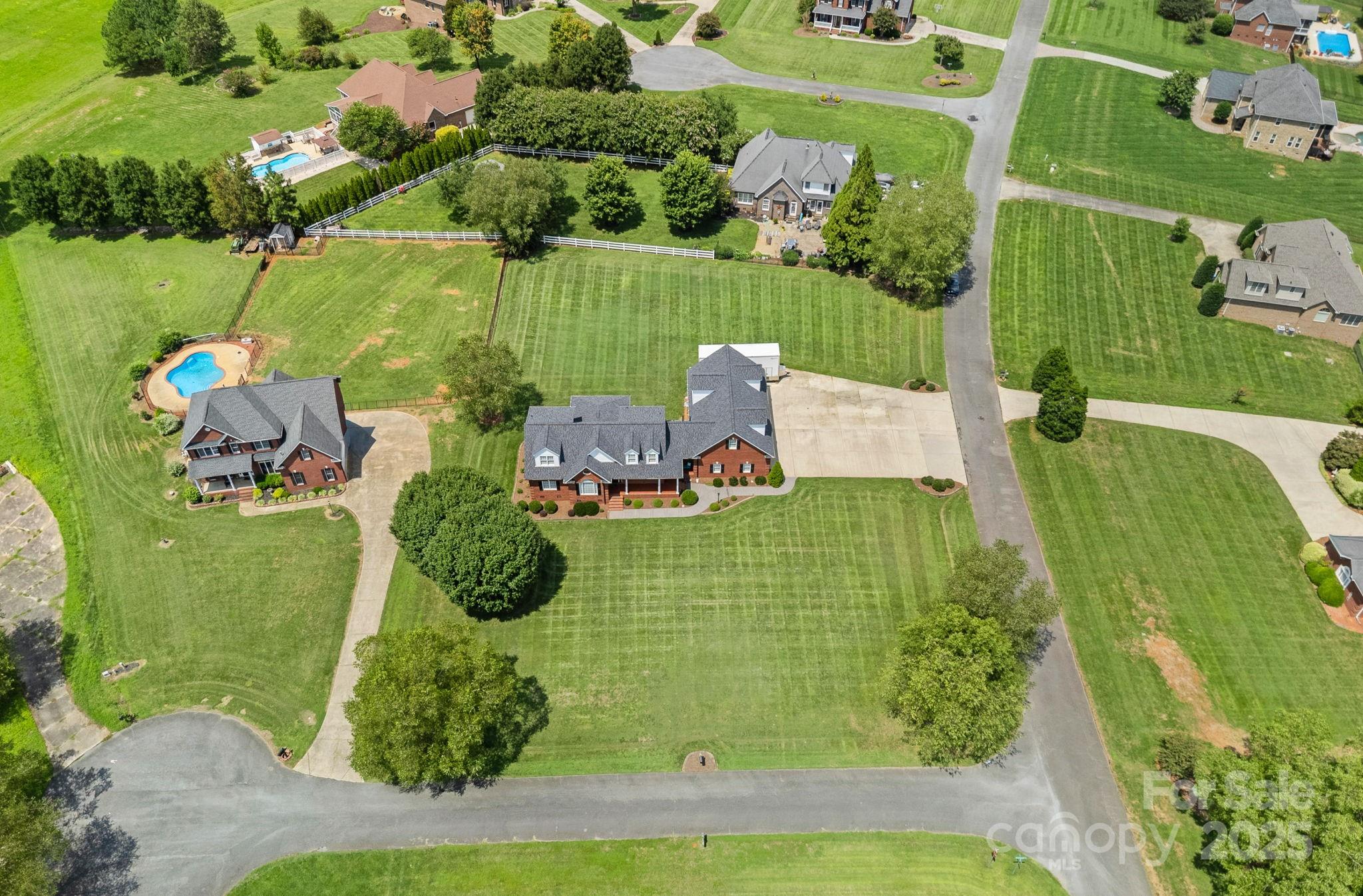 IMMACULATE with NO HOA and climate-controlled mechanics/car enthusiast DREAM garage! RVs & Trailers WELCOME! Total 4,469 sqft UNDER ROOF, with NEW Architectural Roof & Gutters installed MAY 2025. FULL BRICK 2-story Home has 3,139 sqft living area with ADDITIONAL 1,333 sqft 4-CAR Heated & Cooled Garage (MUST SEE this 48' x 28' Garage). The original owners take great pride in every detail, and it shows! The expansive Front Porch graces this corner cul-de-sac lot at .98 Acres. The brick Back Porch overlooks level Backyard. Step inside to an open floor plan that is filled with natural light, gleaming oak hardwood floors and vaulted ceilings. The heart of the home is the spacious family room with vaulted ceilings and fireplace. The Kitchen is a focal point for gatherings with island and seating. Main level primary bedroom suite has beautiful oak hardwoods and ceiling fan, custom tile inlay, dual vanity & walk-in closet. Main level laundry room provides extra storage w/ cabinetry, countertops & sink. Upstairs there are 2 additional Bedrooms each with ensuite full bathrooms, dormer windows & walk-in closets. The impressive Bonus Room provides plenty of space for all entertainment, complete with built-in shelving and back staircase to Garage. Enjoy living in well maintained community with no HOA! Well maintained encapsulated crawlspace with dehumidifier keeps the environment clean. This home even has a Transferable Termite Bond! Home warranty provided with acceptable offer.
