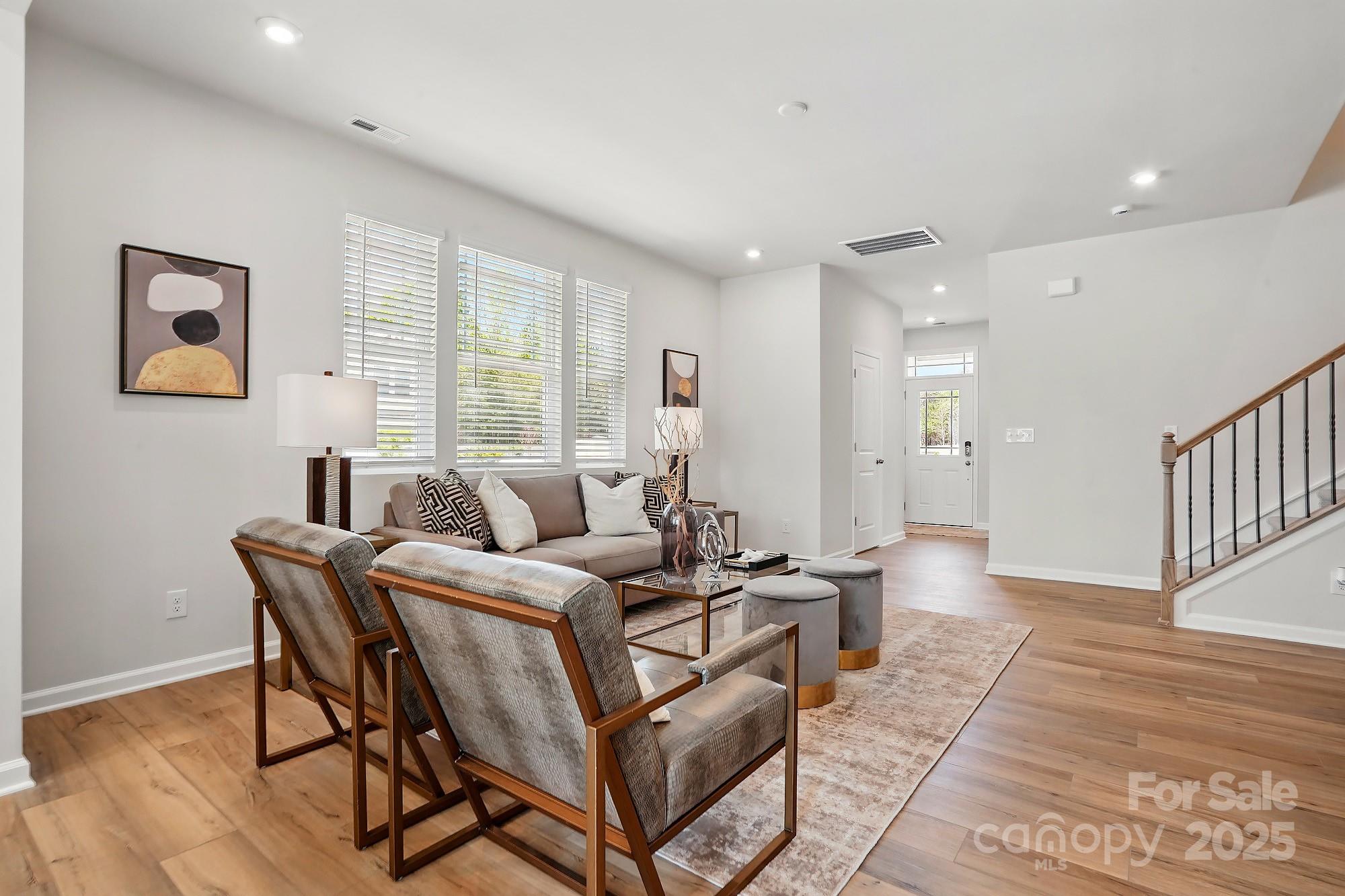 Welcome to The Amira, a beautifully designed townhome offering modern comfort and stylish living. The first floor features a welcoming front porch and foyer, leading to an open and inviting gathering room. The spacious kitchen boasts a walk-in pantry, ample counter space, and flows seamlessly into the breakfast dining area. A powder room and access to the one-car garage add convenience, while the patio provides a perfect out door retreat.