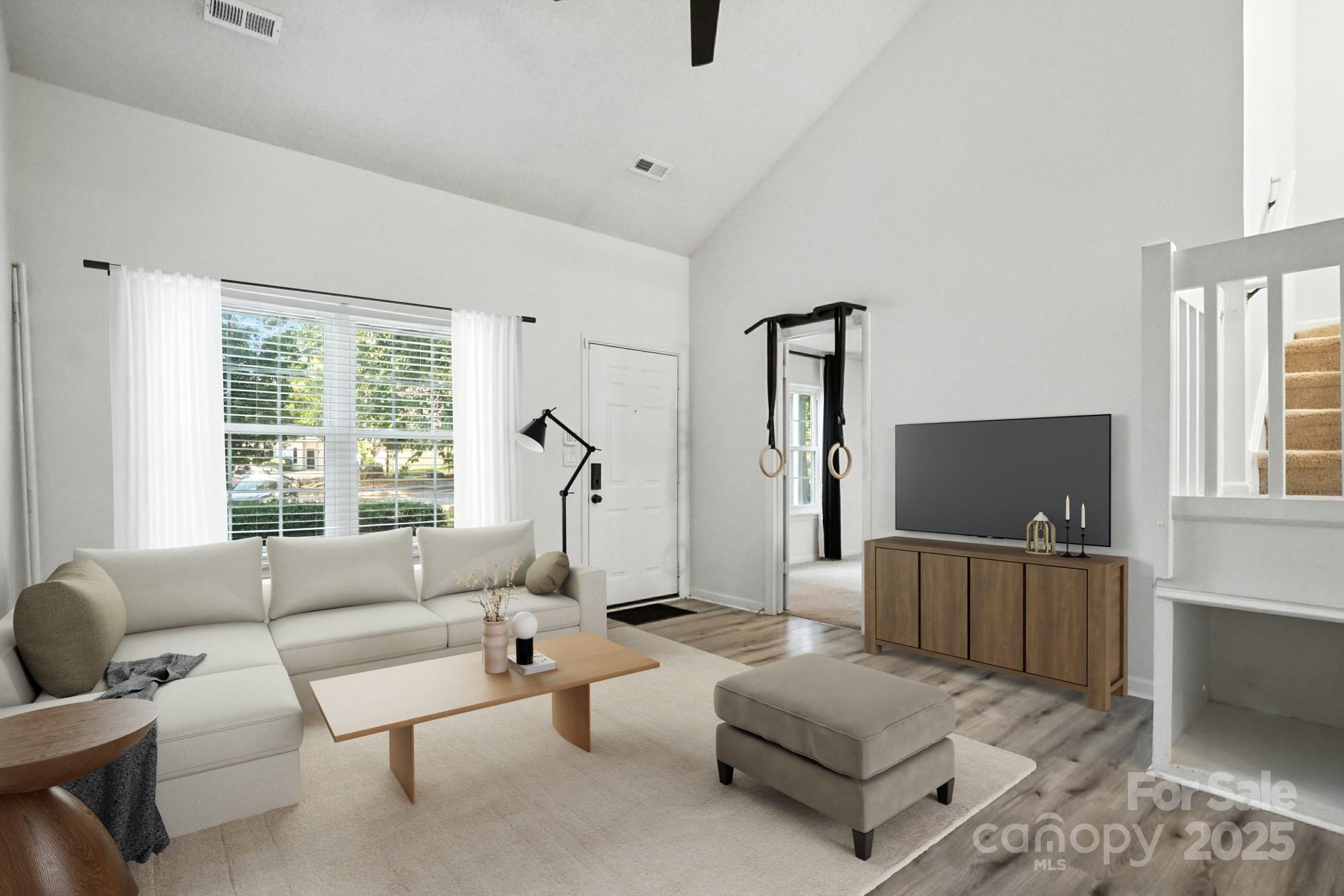 Welcome to this beautifully updated 3-bedroom, 2-bath townhome in Charlotte’s highly desirable University area. Step inside to an open-concept living space highlighted by a granite fireplace and new LVP flooring. The renovated kitchen features marble countertops, resurfaced cabinets, subway tile backsplash, stainless steel appliances, and pantry storage. Enjoy the natural light from new windows and a sliding glass door leading to a private corner patio—perfect for relaxing or entertaining. The main-level primary suite with en-suite bath offers comfort and accessibility. Upstairs, find two spacious bedrooms with vaulted ceilings and a full bath. Recent updates include new siding, roof, carpet, windows, electrical outlets and switches, plus all appliances convey—including washer and dryer. Inspection completed and several repairs already addressed. Move-in ready and close to UNC Charlotte, light rail, shopping, and dining—this home blends style, convenience, and value in one perfect package! Perfect for starter home or rental! Seller is Motivated!
