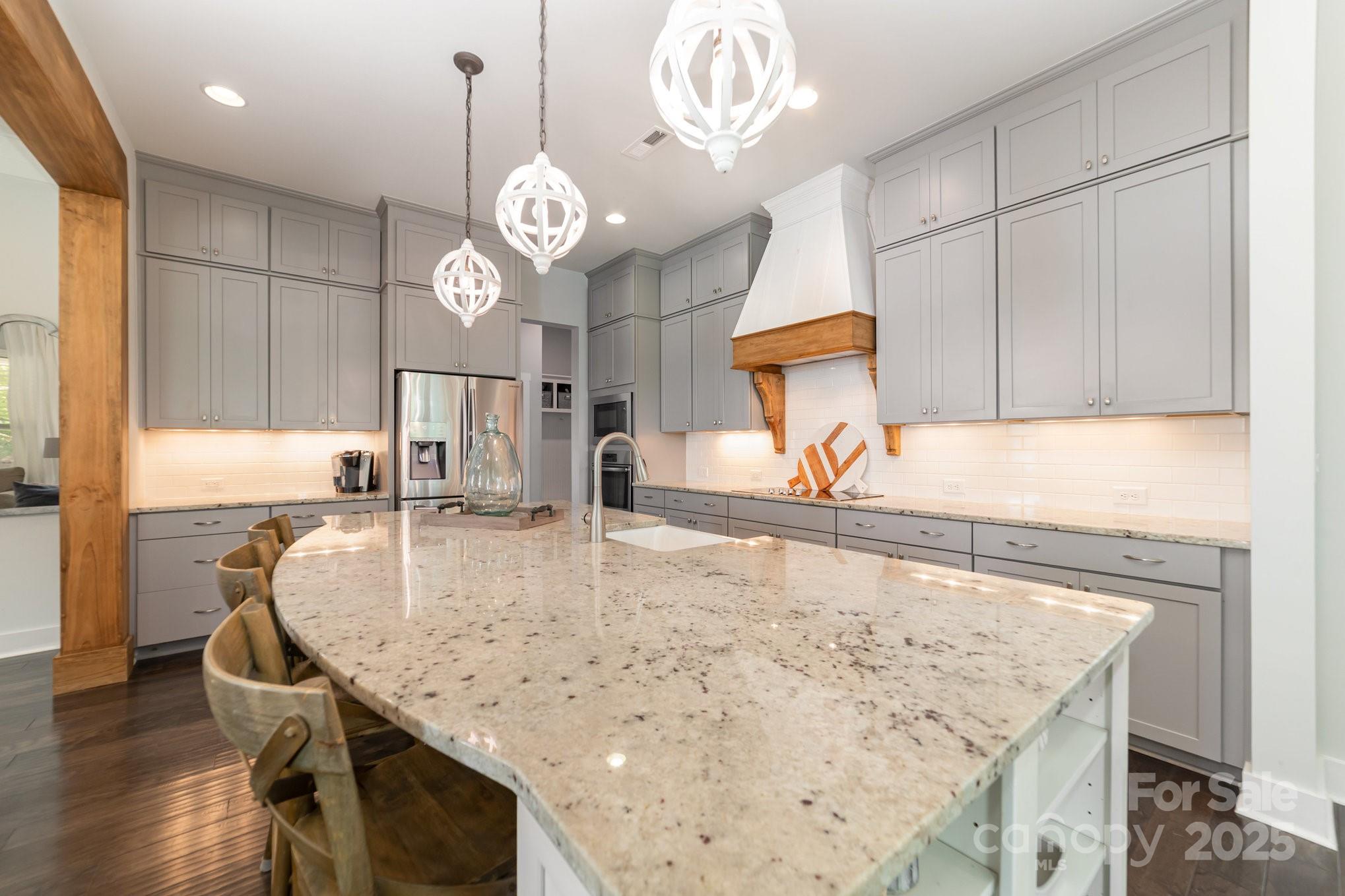 Discover your perfect sanctuary in this breathtaking 4-bedroom, 3.5-bathroom modern home, constructed in 2017, boasting 3,453 square feet of luxurious living space in a highly sought-after neighborhood. This move-in-ready masterpiece showcases an open-concept floor plan, seamlessly blending a gourmet kitchen with a large center island, stainless steel appliances, custom wood range hood, and expansive walk-in pantry with the bright, airy living and dining areas. The main-level primary suite offers a tranquil escape, featuring a spa-inspired en-suite bathroom with dual vanities, a soaking tub, and a walk-in shower. Elegant touches like stylish barn doors, sophisticated crown molding, and high ceilings elevate the home’s charm. Upstairs, a versatile bonus room is ideal as a playroom, media room, home office, or extra bedroom. Entertain effortlessly in the meticulously landscaped backyard, complete with an outdoor fireplace and Bluetooth ceiling speakers on the patio for the ultimate ambiance. The living room also includes built-in Bluetooth speakers for immersive sound. Additional highlights include an oversized garage for storage or a workshop, large windows flooding the home with natural light, and premium finishes throughout. Nestled in a vibrant community with parks, top-rated schools, and convenient access to shopping, dining, and entertainment, this energy-efficient, contemporary home is a rare gem. Schedule your private showing today to experience unparalleled luxury and comfort!