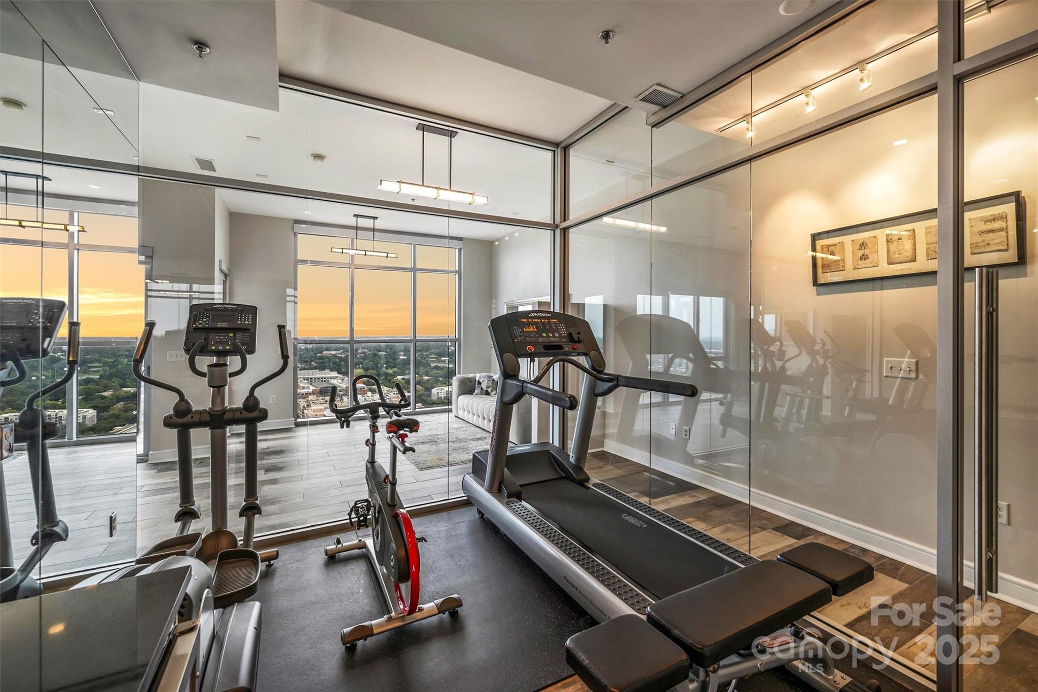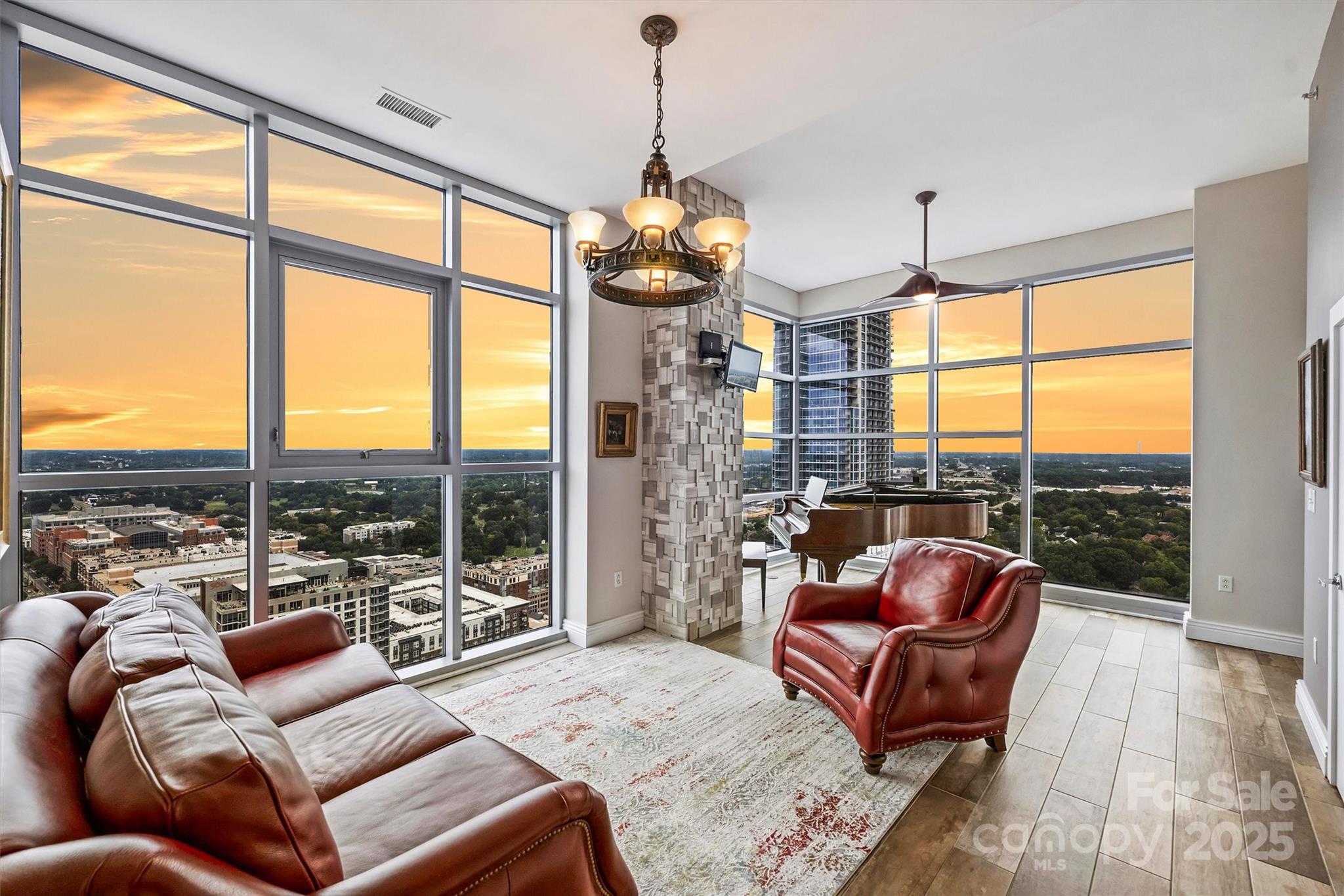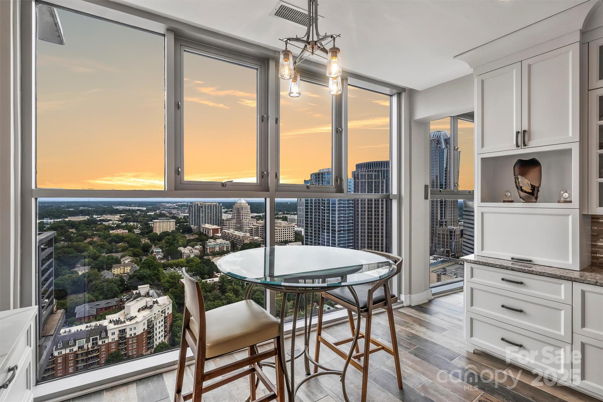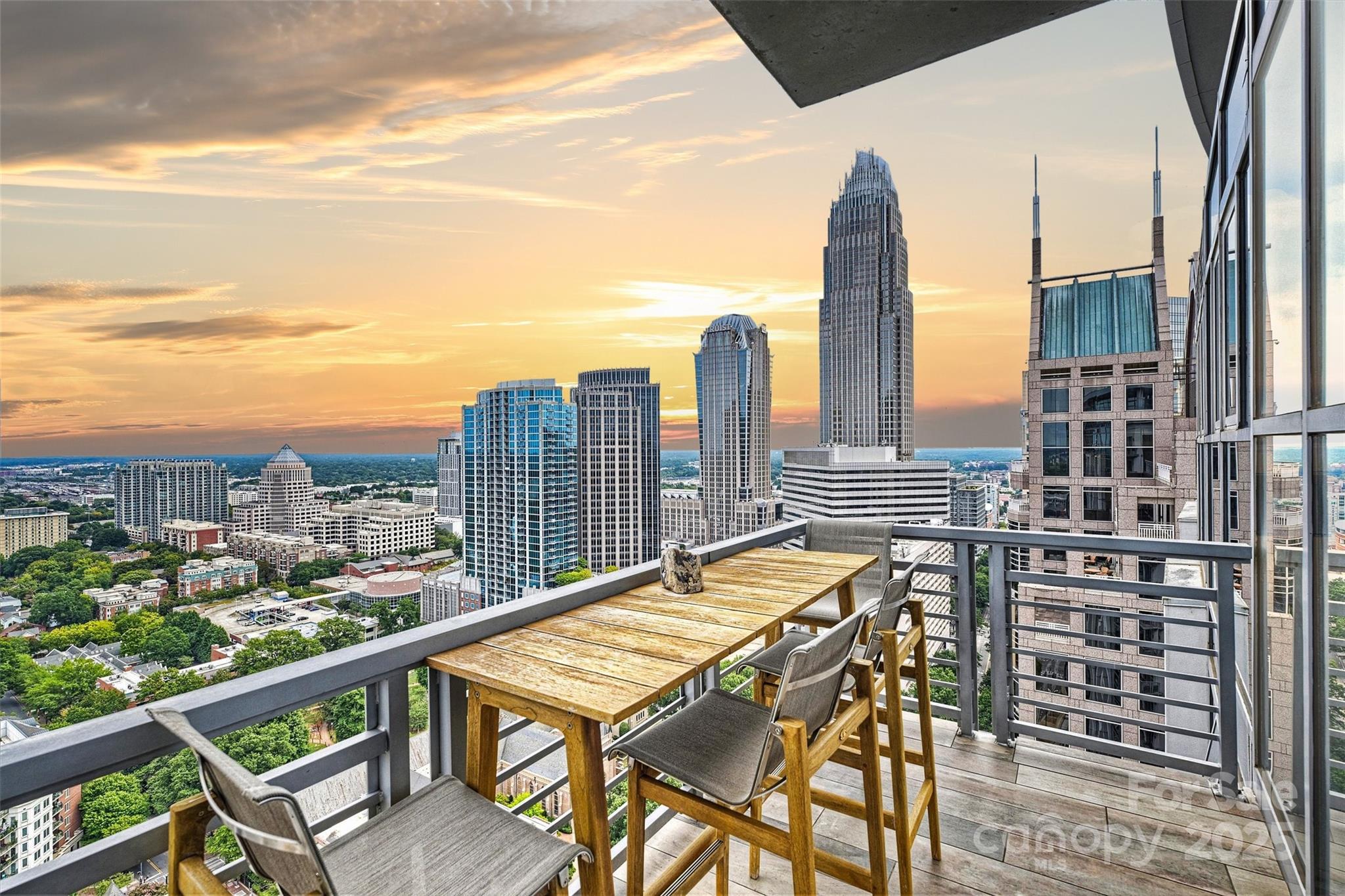Perched on the 27th floor, this condo offers a rare 270-degree panoramic view that captures the Charlotte skyline, the mountains to the north, and direct sightlines to Truist Field and Bank of America Stadium to the south. Featuring soaring ceilings and floor-to-ceiling windows, this 4-bedroom, 5 full-bath residence was designed for both everyday luxury living and elevated entertaining. With designer finishes and fixtures that were curated throughout with no detail overlooked this residence seamlessly blends modern luxury with architectural sophistication—an offering that is truly irreplaceable in Charlotte’s current market. There are two expansive balconies, a primary suite with marble-clad spa bathroom, custom personal gym, and a chef’s kitchen with dual islands, Wolf and Sub-Zero appliances, custom cabinetry, quartz and granite countertops. This condo also offers FIVE deeded, secure parking spaces and an additional private storage room.