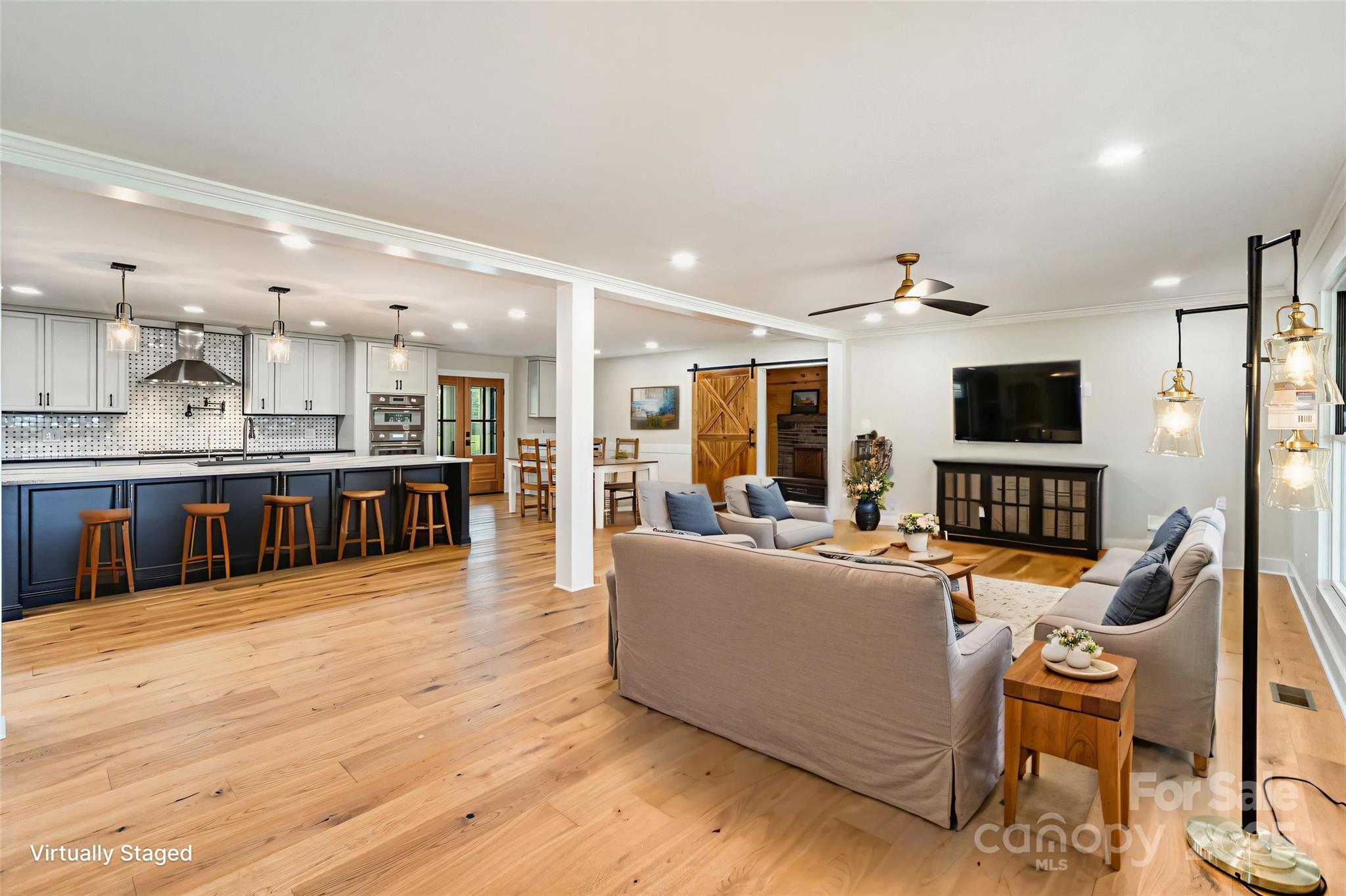 Modern Farmhouse Dream! This newly remodeled 3-bedroom, 3.5-bath modern farmhouse perfectly blends rustic charm with luxury finishes. Enjoy a spacious, open floor plan, ideal for entertaining and everyday living. The chef's kitchen features commercial-grade appliances and a large center island, designed for culinary enthusiasts. The sunken den is thoughtfully designed as a rustic bar and entertaining space, perfect for gatherings. A separate laundry room with a convenient drop zone and a dedicated office area provide exceptional functionality. Upstairs, discover a generous bonus room with an attached half bath. This home is meticulously curated and ready for its new owners.
