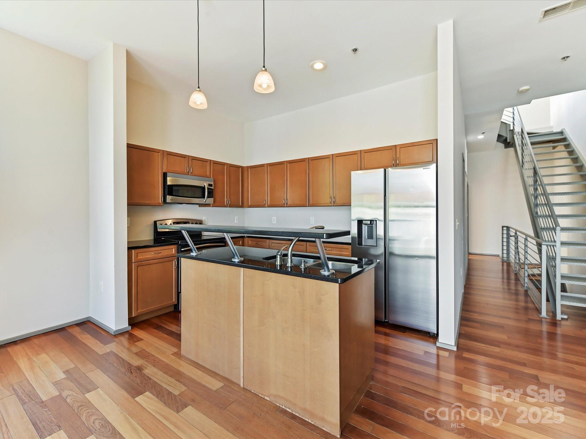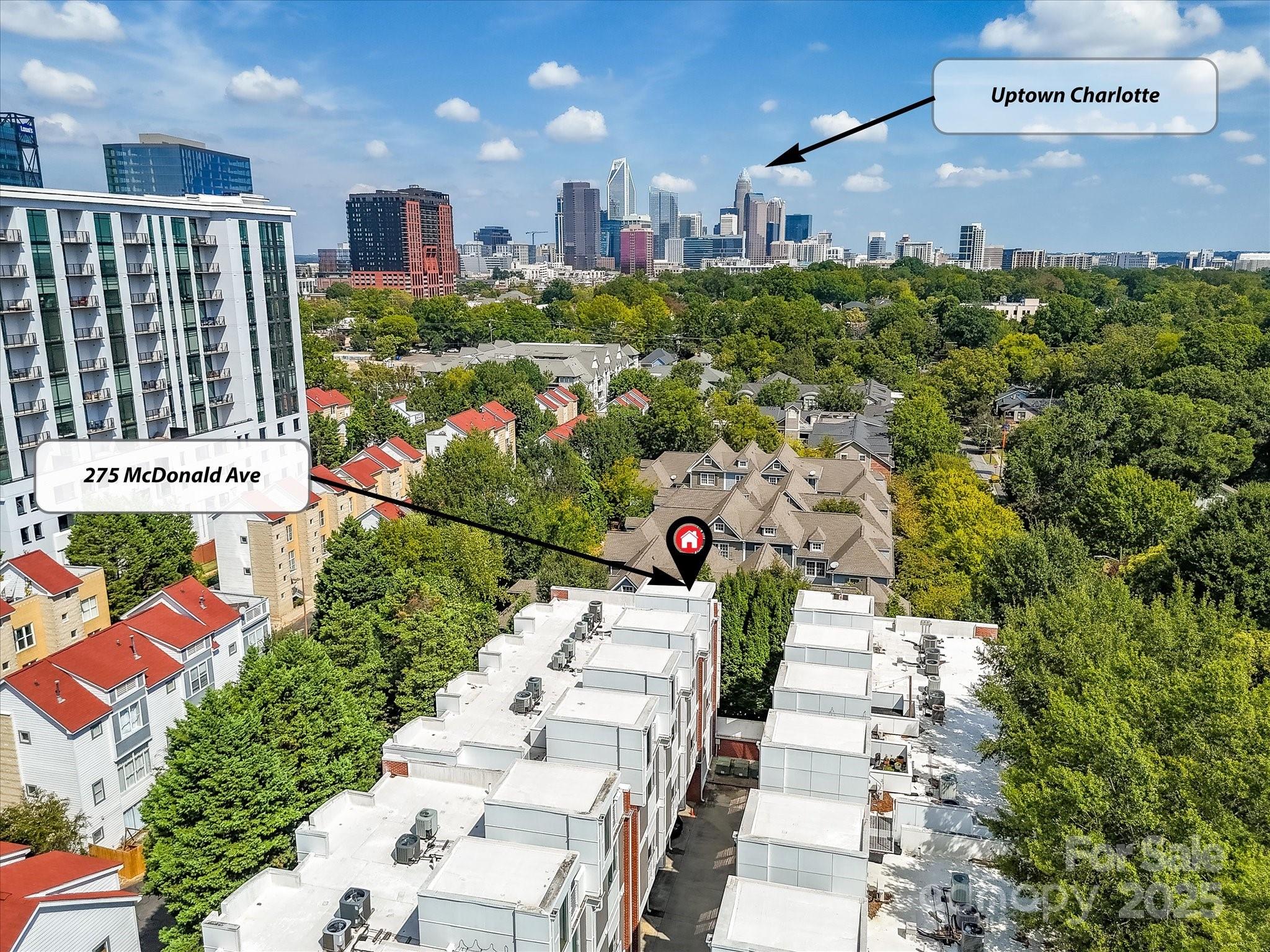 **The Seller is offering to prepay $20K, with an acceptable offer, toward temporarily elevated HOA dues related to a completed exterior community project**Welcome to Lofts Dilworth, a contemporary condo complex located in the heart of Dilworth and just minutes to Southend! Enjoy the wonderful walkability to some of Dilworth's best restaurants or enjoy the ease of shopping at the Atherton Mill in Southend. This 3 bedroom 3 FULL bath condo is a rare floorplan in this complex and with it being an end unit, located closest to the city, you cannot beat the Uptown Charlotte & Southend skyline views from your very own rooftop terrace! The main level consists of two spacious bedrooms, each with their own ensuite bath and a laundry room that features a stackable washer & dryer which convey with the unit. The upper level features a sleek and modern kitchen that is open to the main living room and breakfast nook and then a third bedroom with it's own ensuite third full bath. Enjoy the lovely exterior views from every level out the floor to ceiling windows that flood the property with natural light. Hard to find this price for this much square footage in the heart of Dilworth! This condo has been freshly painted throughout and had a new HVAC unit installed in 2024. The windows have treatments/shades that will convey.