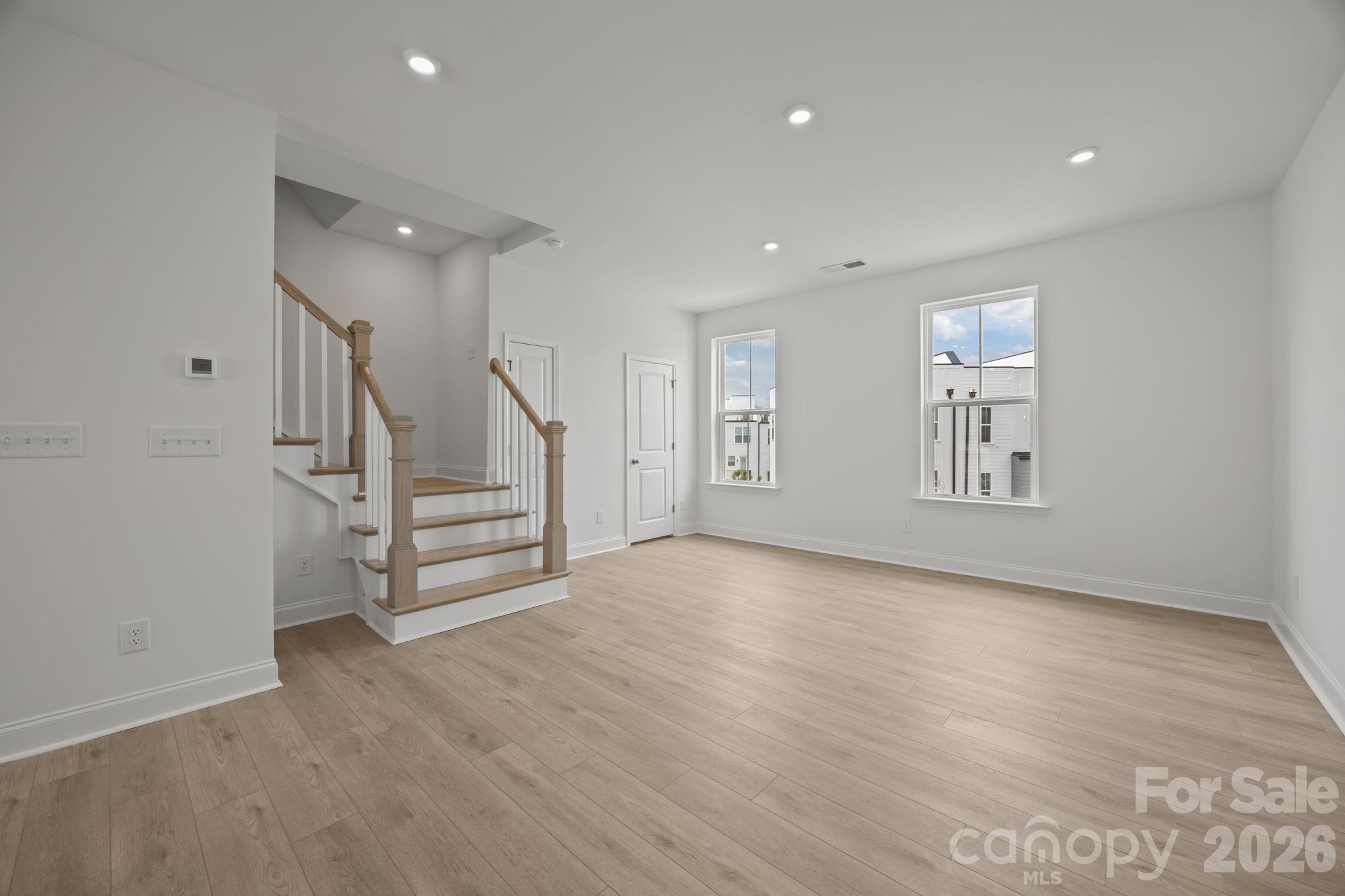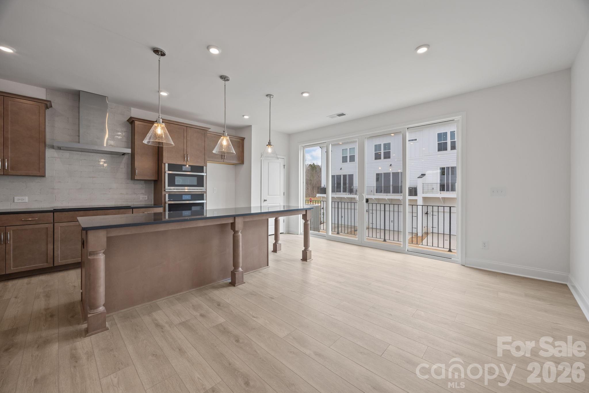 Welcome to The River District—a true master-planned community designed for the way you live, work, and play. This beautifully appointed Landon three-story townhome offers exceptional flexibility and style. The main level features a spacious flex room—perfect for a home office, game room, gym, or creative studio. Upstairs, the heart of the home shines with a gourmet kitchen showcasing quartz countertops, a built-in oven and microwave, electric cooktop, and soft-close cabinetry. The open-concept dining and living areas provide an inviting space for entertaining, with sliding glass doors leading to your private balcony—ideal for morning coffee or evening relaxation. The third level hosts a serene owner’s retreat, complete with a bright and airy bedroom and a spa-inspired bath designed for ultimate comfort. Two additional bedrooms, a full bath, and a conveniently located laundry area complete the upper floor. Every detail of this home has been thoughtfully curated, with interior design finishes individually hand-selected by our professional design team. Location truly sets this home apart. At The River District, you’re just minutes from everything you need. The community will feature resort-style amenities including a pool, clubhouse with fitness center, tennis and pickleball courts, parks, scenic trails, a working two-acre farm with an on-site farmer, and a stunning riverfront amphitheater. Experience elevated living in a vibrant community where convenience meets connection.